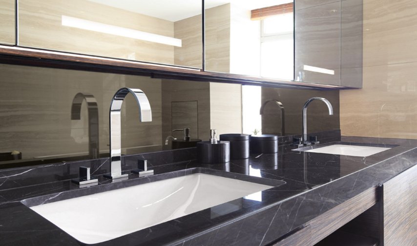 深色调的简洁表面和紧凑的外观是卫浴区域的主要特征。德国唯宝提供的斯卡罗系列浴缸将其与周边环境无缝整合到了一起。创新独有材质圭力能够实现精准清晰的线条感。隐藏式喷嘴完美地嵌入浴缸表面,提升美感和舒适度。洛普之友系列的台下盆流畅地整合到整体的概念之中。对于设计师梁志天而言,革新就是现代风格设计的一个特征,革新可能是他进行工作的唯一目的。