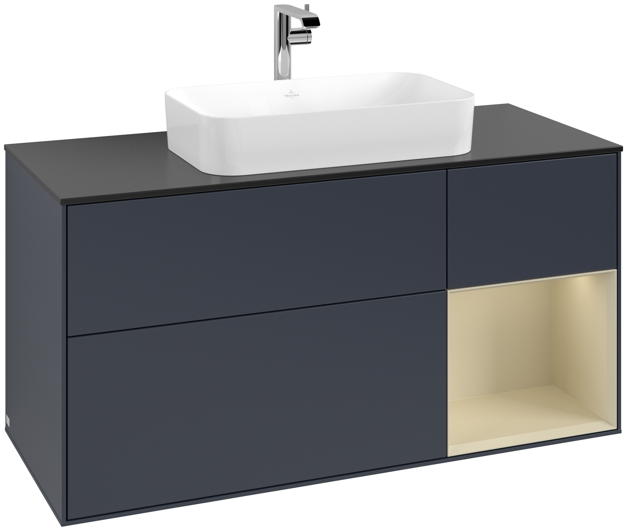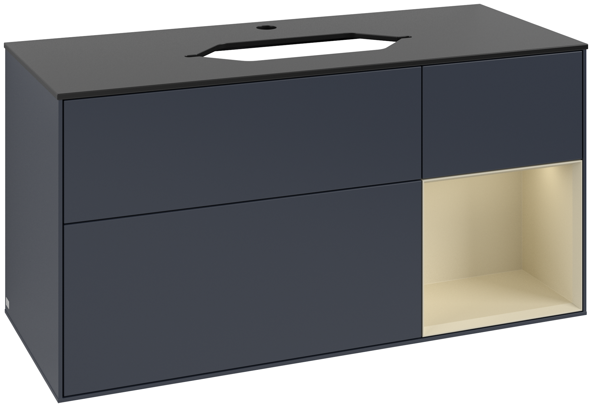 福朗 梳洗柜, 含照明, 3 个拉出式抽屉, 1200x603x501mm, 主体: 子夜蓝哑光烤漆, 正面: 子夜蓝哑光烤漆, 置物架: 丝灰哑光烤漆, 顶部: 玻璃哑光黑色