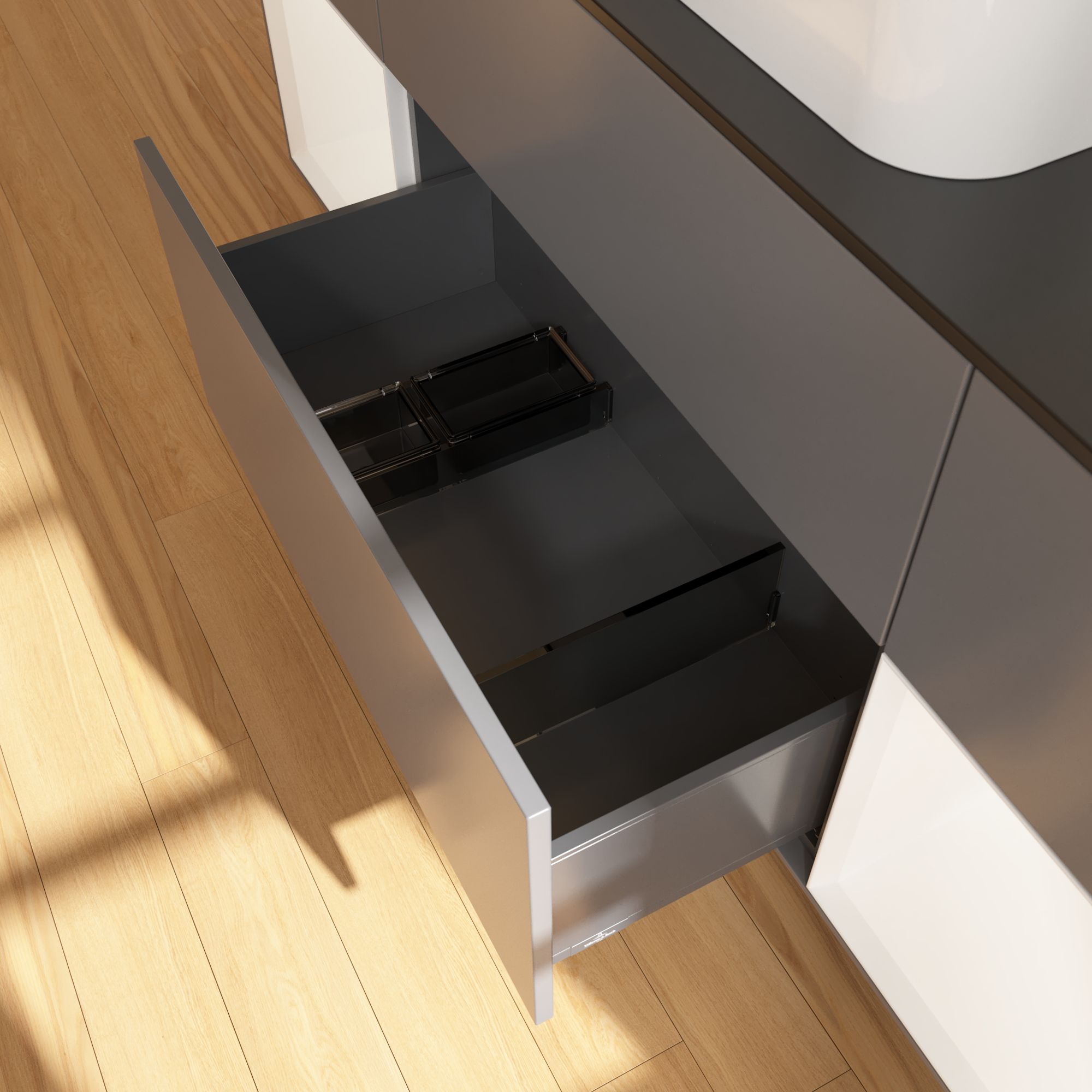 三个窄玻璃抽屉隔板