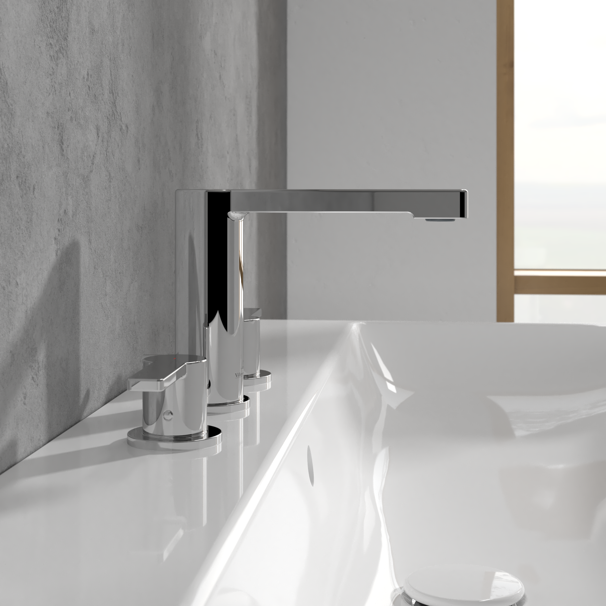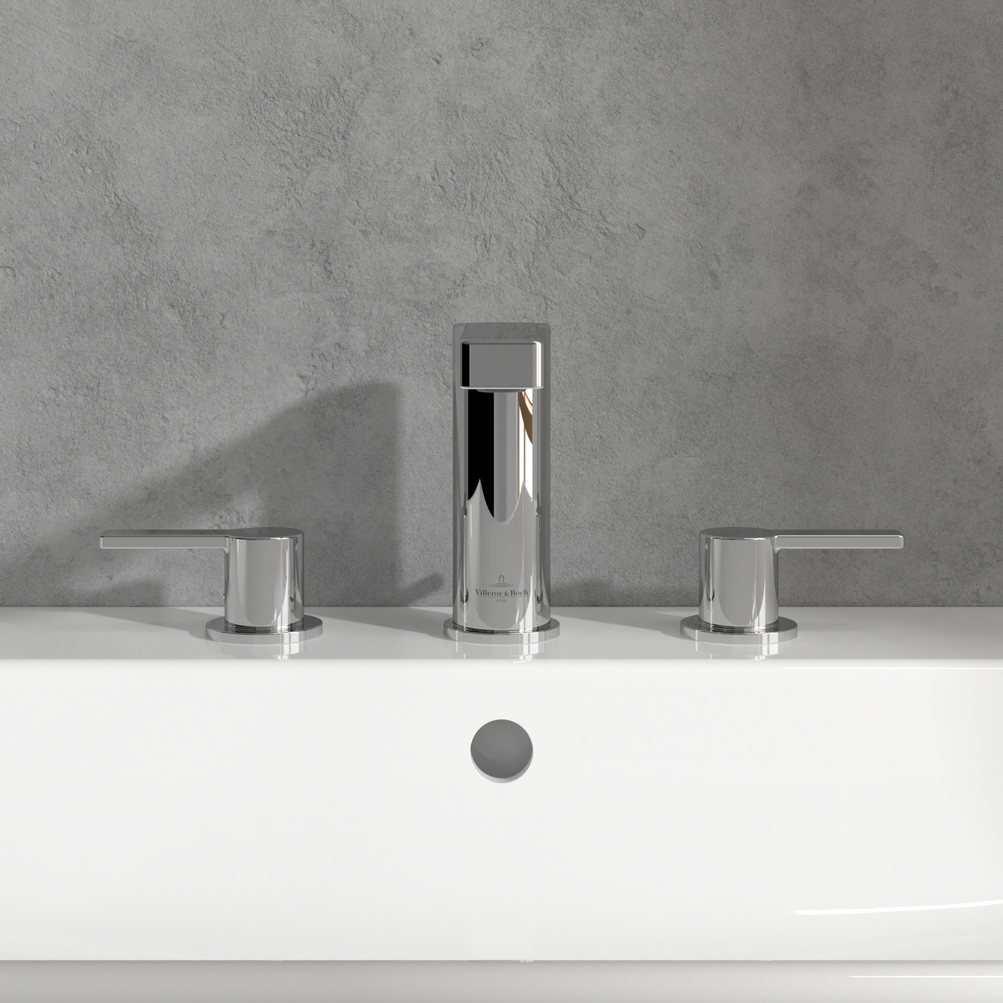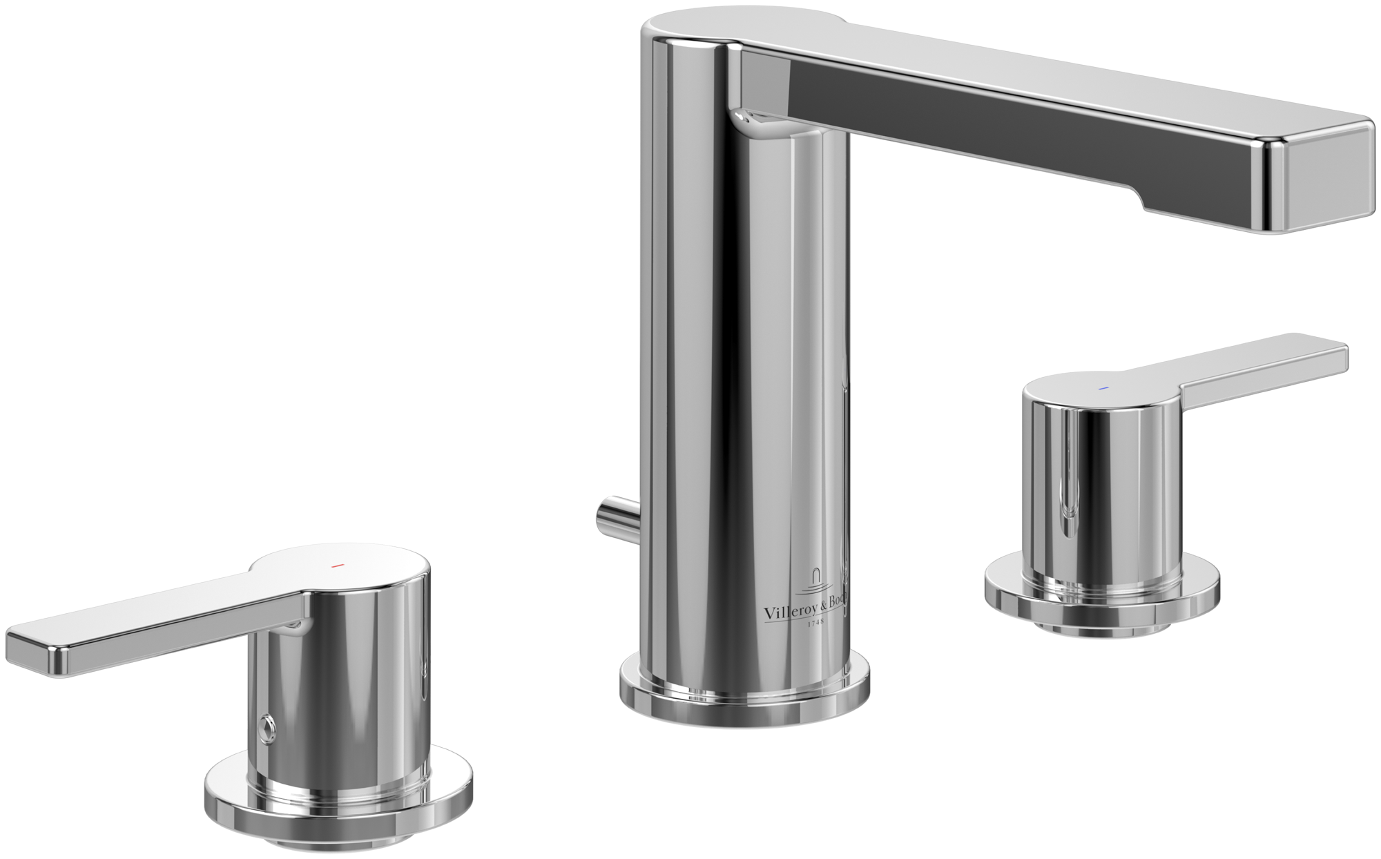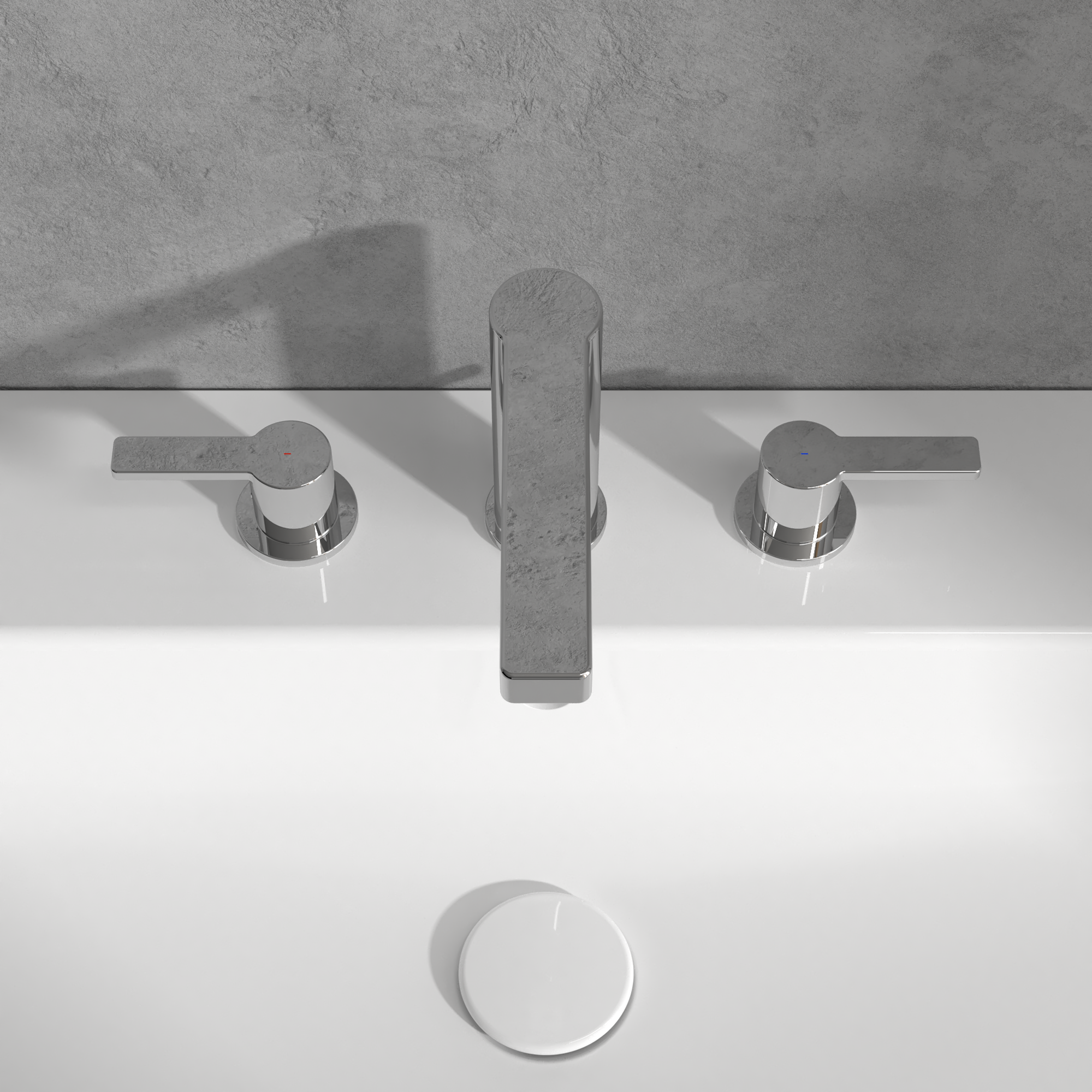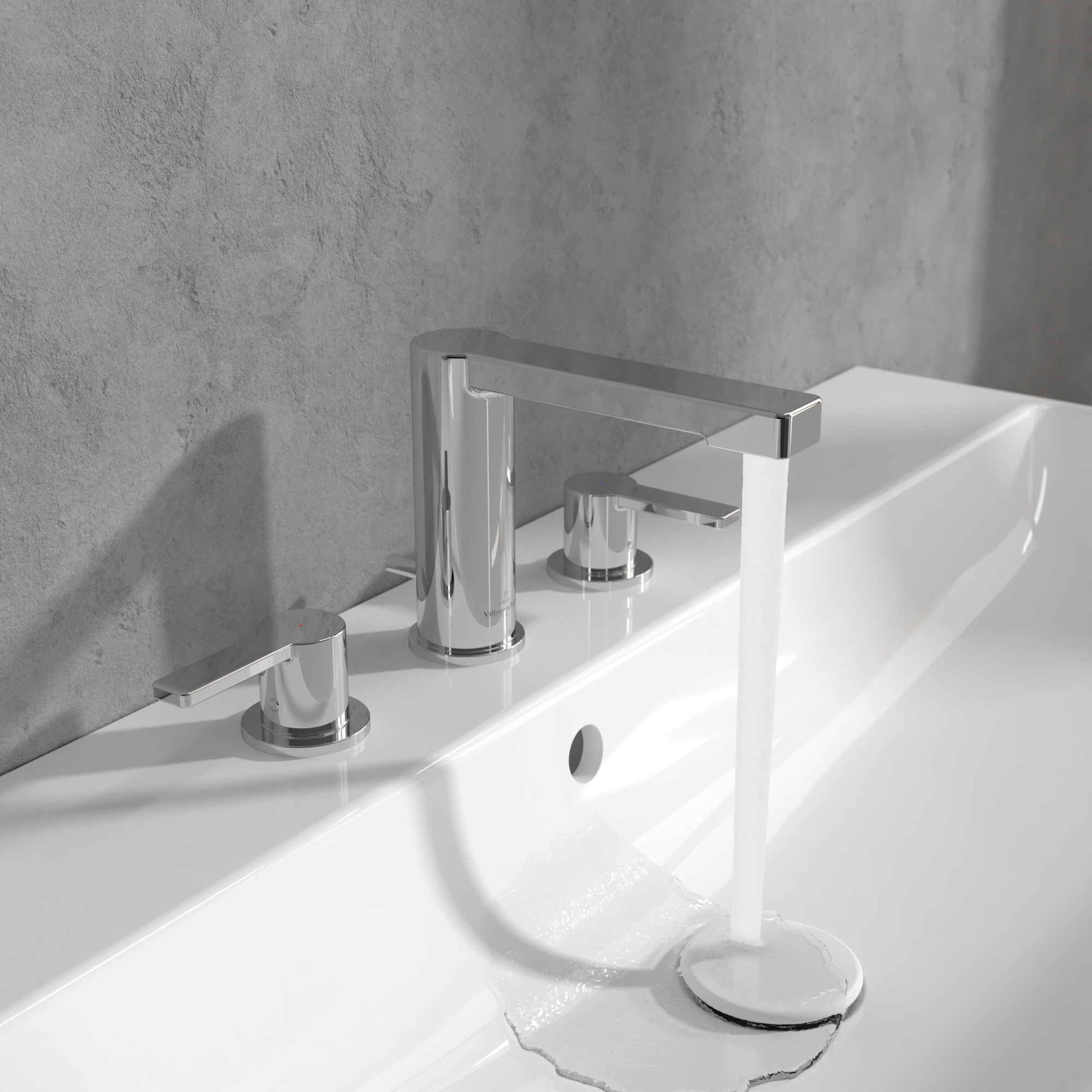 雅图 三孔台面式面盆龙头, 带提拉式去水配件, 镀铬