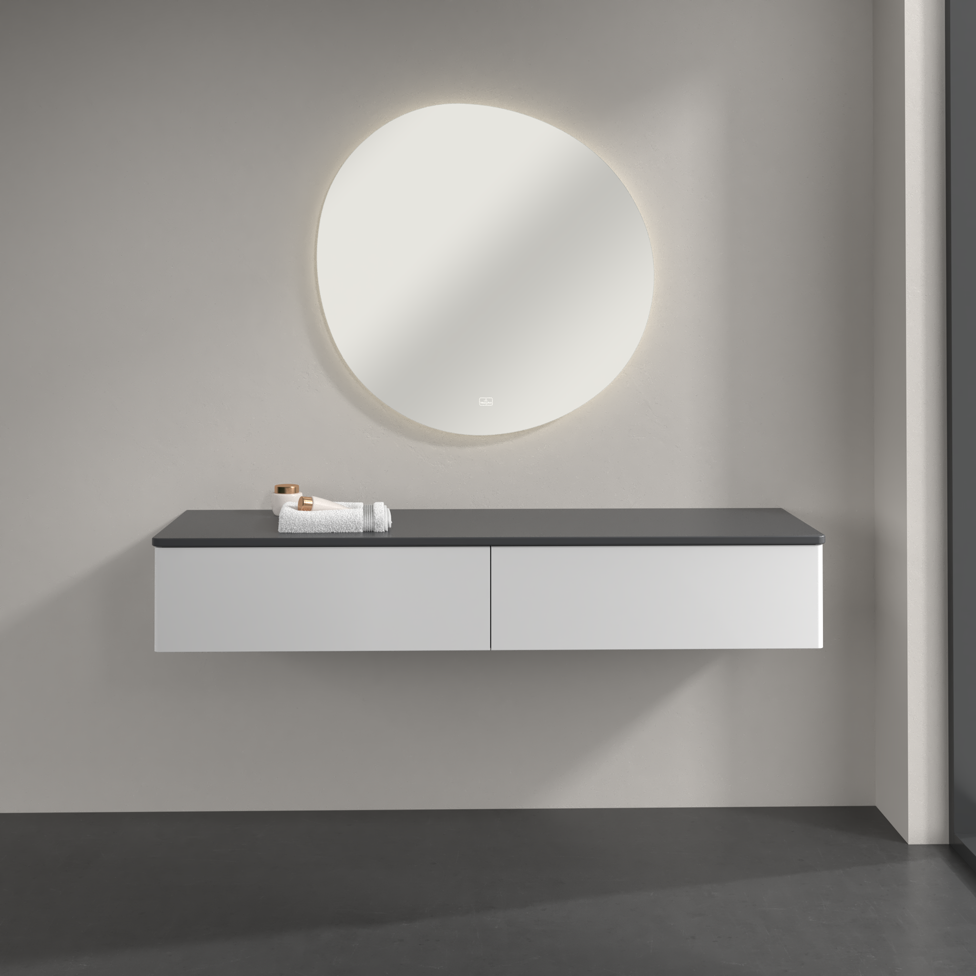 Antao Sideskab, 2 udtræk, 1600x268x500mm, Forside uden årestruktur, Korpus: Glossy White Lacquer, Front: Glossy White Lacquer, Afdækningsplade: Warm Walnut