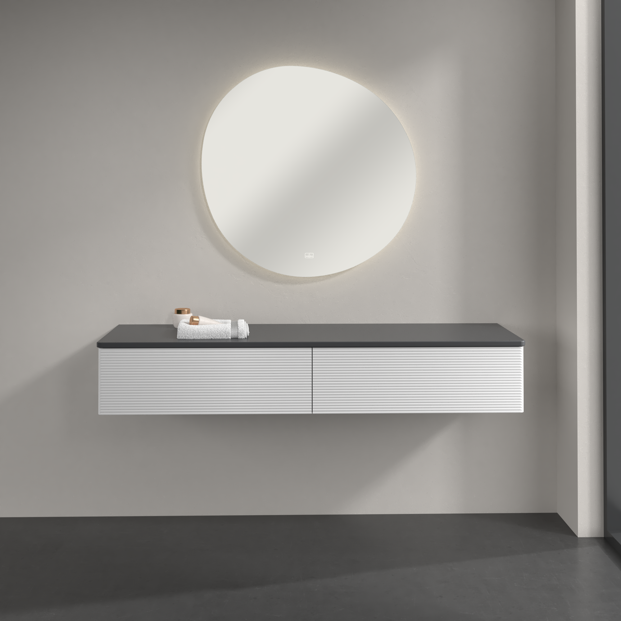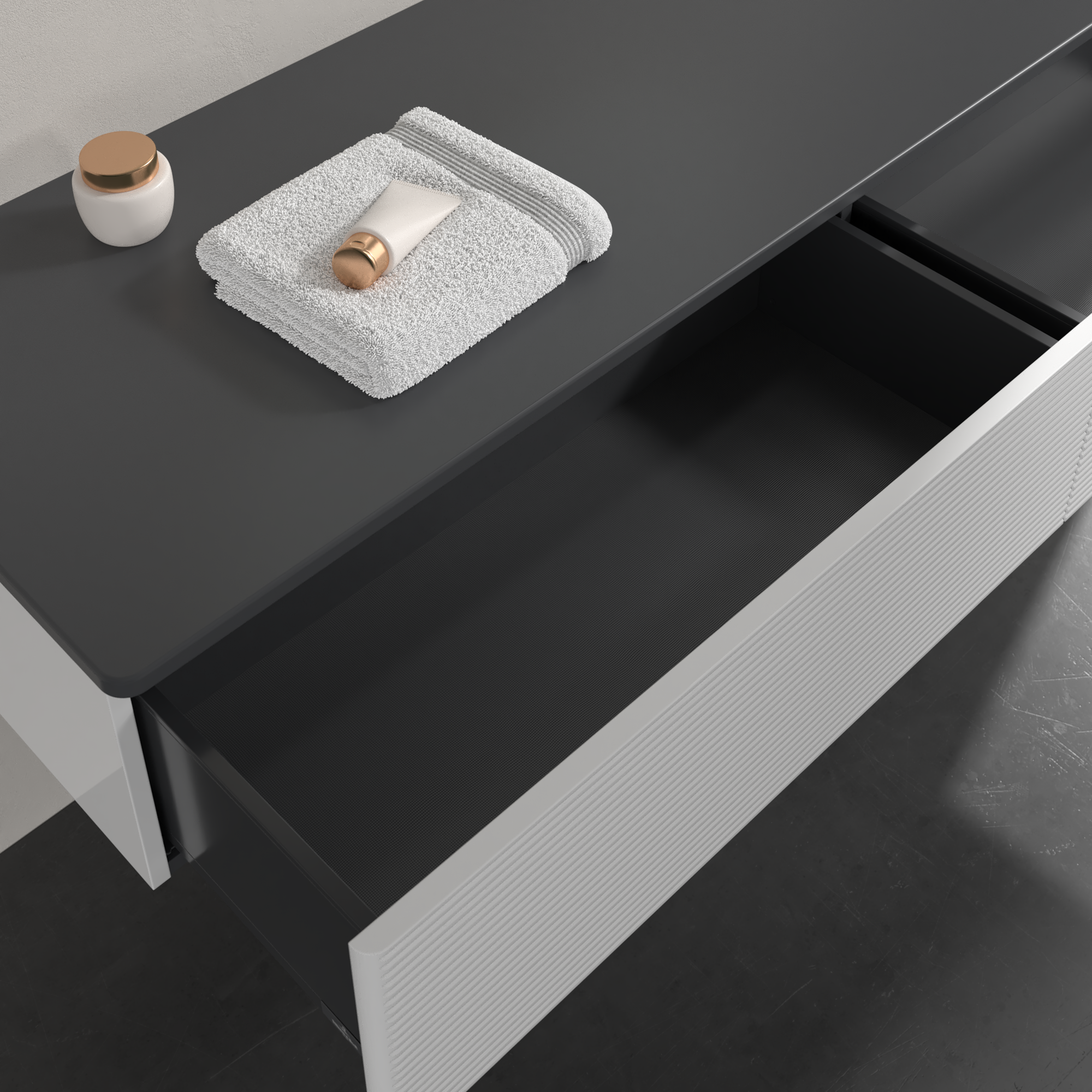Antao Sideskab, 2 udtræk, 1600x268x500mm, Forside med årestruktur, Korpus: Glossy White Lacquer, Front: Glossy White Lacquer, Afdækningsplade: Glossy White Lacquer