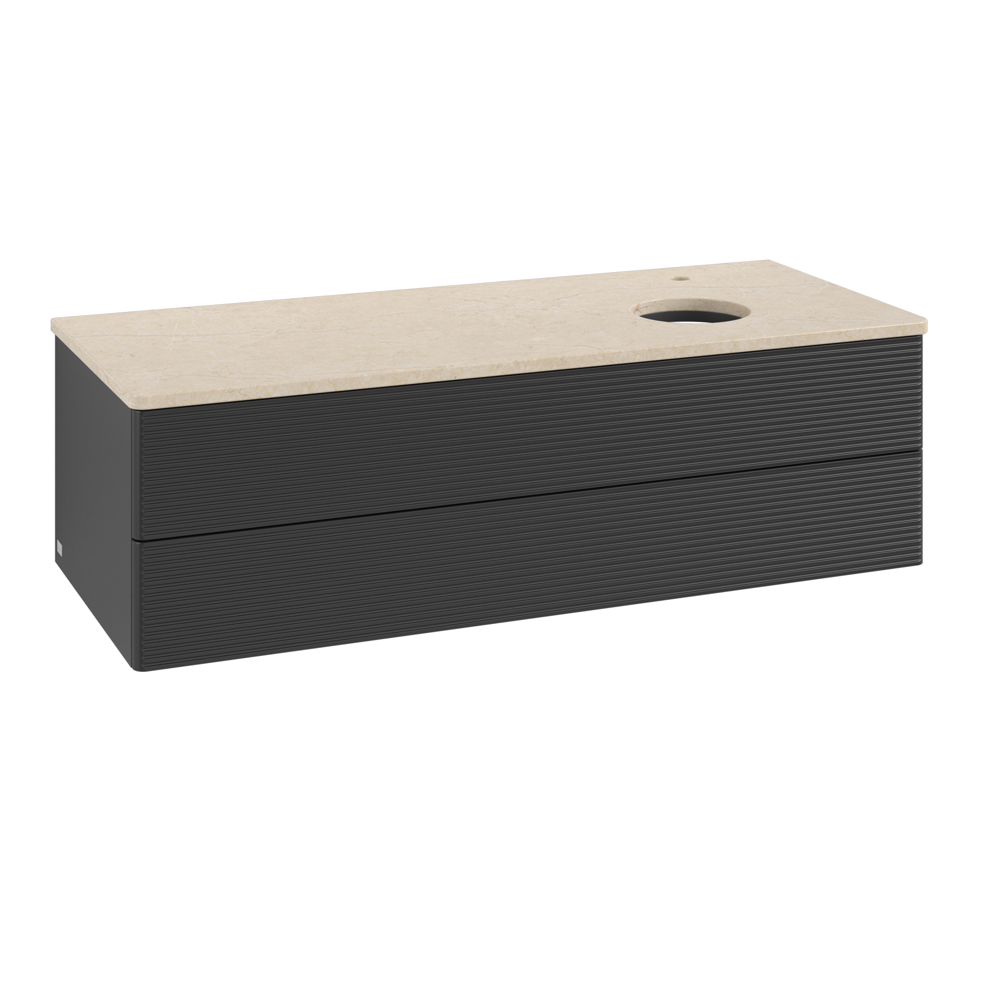 Antao Skab, 2 udtræk, 1200x360x500mm, Forside med årestruktur, Korpus: Black Matt Lacquer, Front: Black Matt Lacquer, Afdækningsplade: Botticino