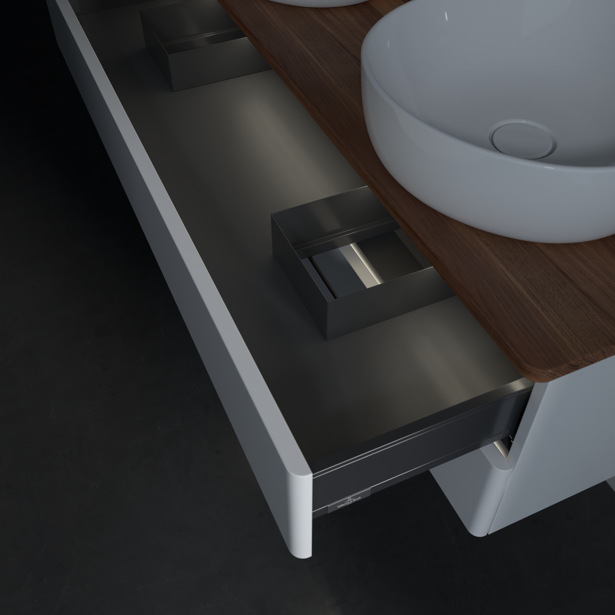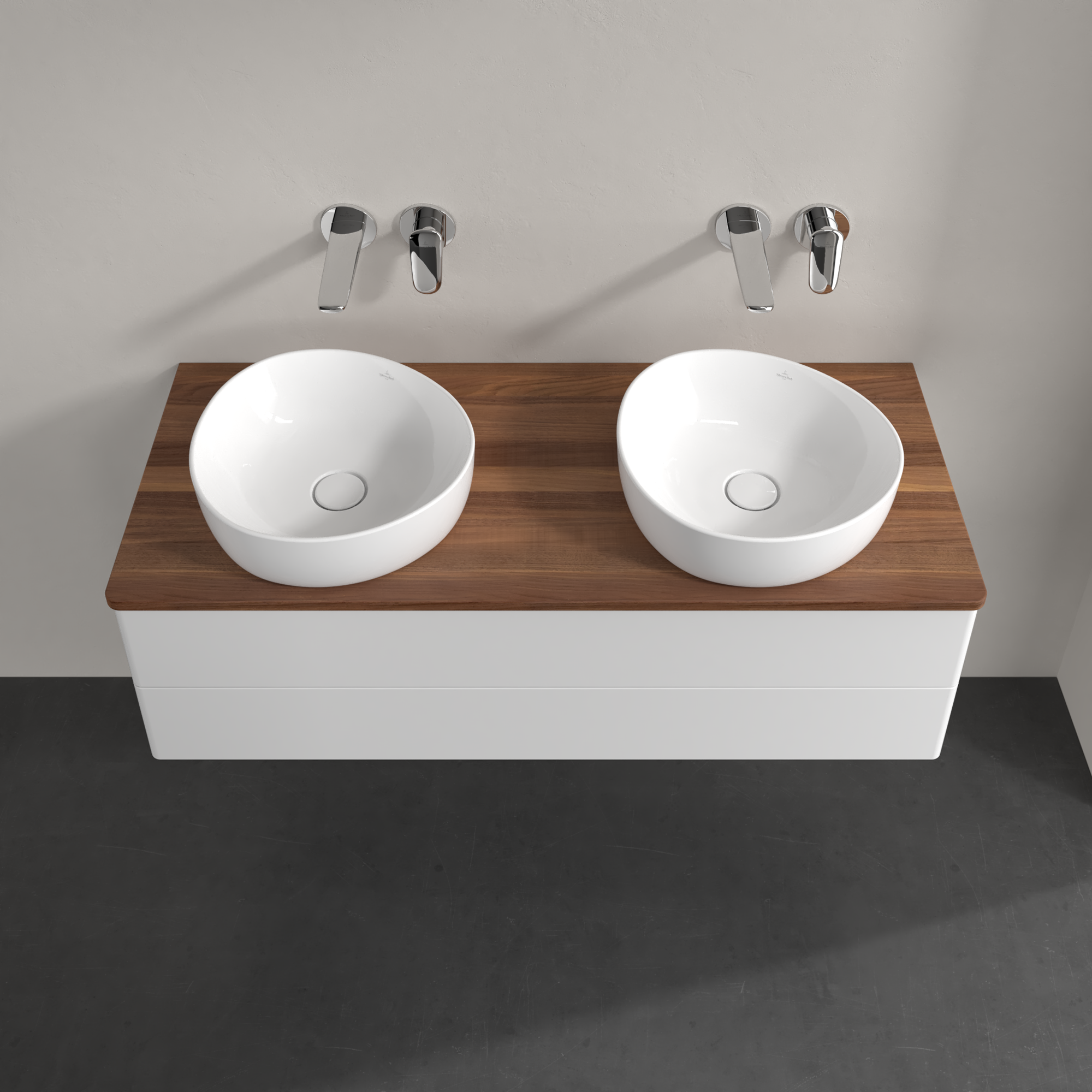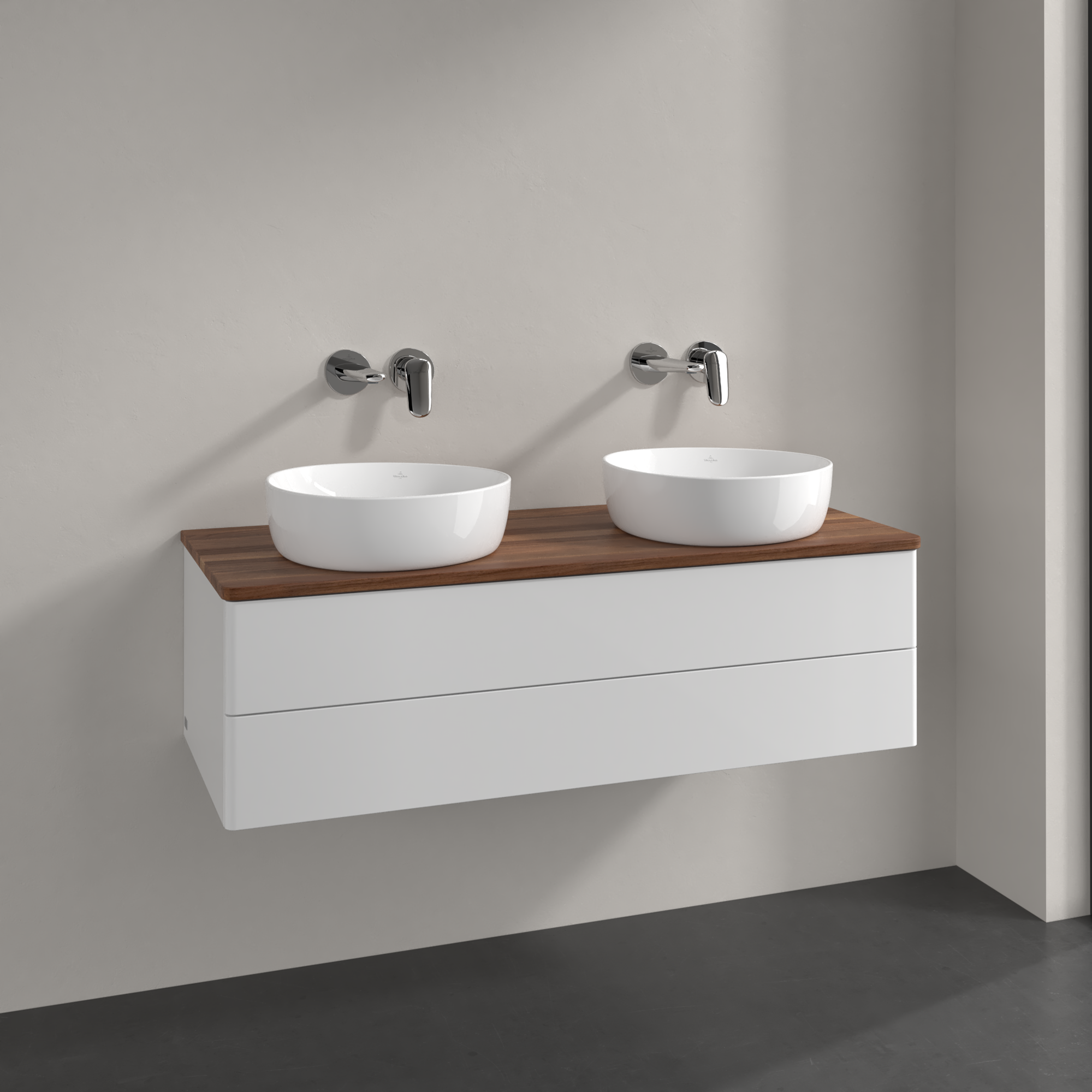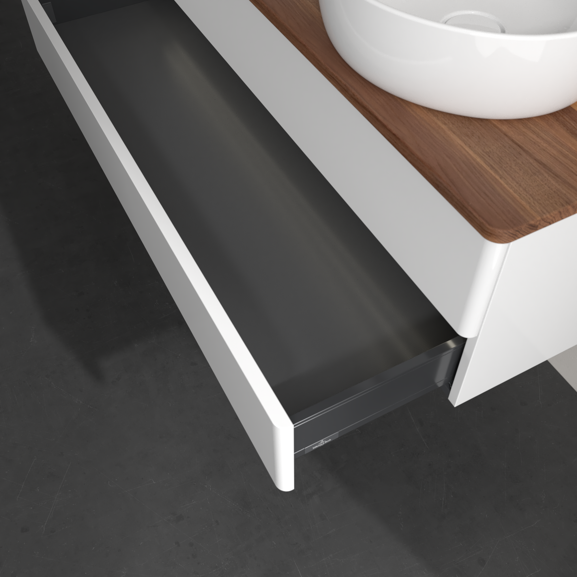 Antao Skab, med belysning, 2 udtræk, 1200x360x500mm, Forside uden årestruktur, Korpus: Glossy White Lacquer, Front: Glossy White Lacquer, Afdækningsplade: Warm Walnut