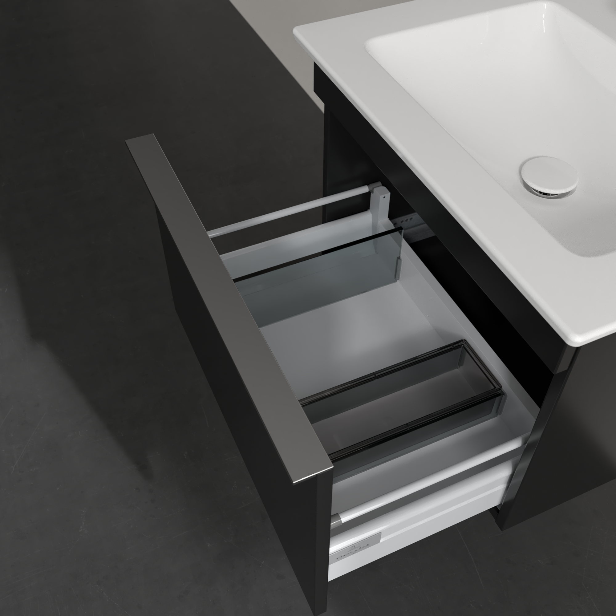Venticello Skab, 1 udtræk, 553x420x477mm, Korpus: Volcano Black, Front: Volcano Black