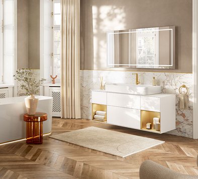 - Erhältlich in Alpin Weiß (glänzend) und Pure Black (matt) für edle Badkonzepte.