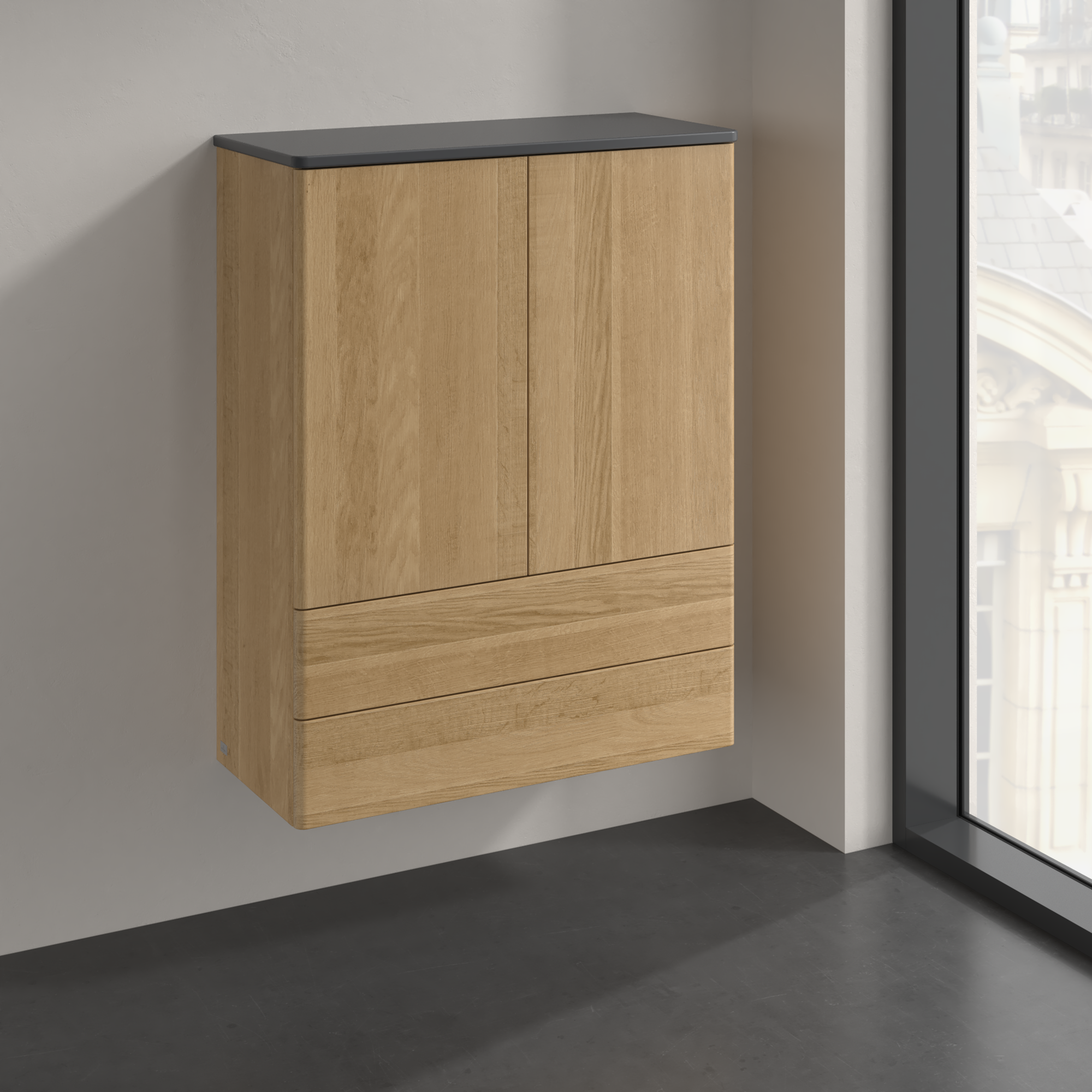 Antao Highboard, 2 Türen, 814x1039x356mm, Front ohne Struktur, Korpus: Honey Oak, Front: Honey Oak, Abdeckplatte: Honey Oak