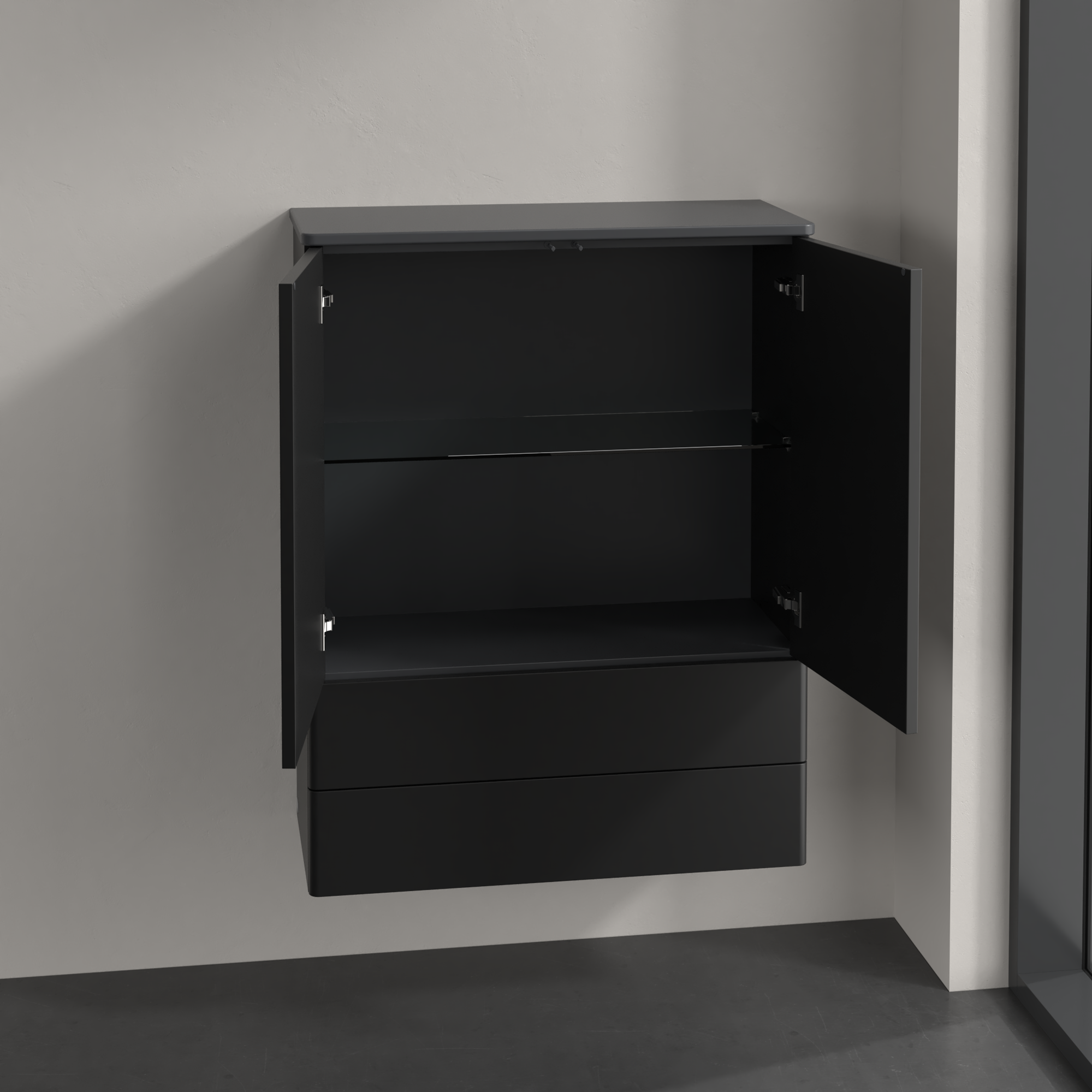 Antao Highboard, 2 Türen, 814x1039x356mm, Front ohne Struktur, Korpus: Black Matt Lacquer, Front: Black Matt Lacquer, Abdeckplatte: Black Matt Lacquer