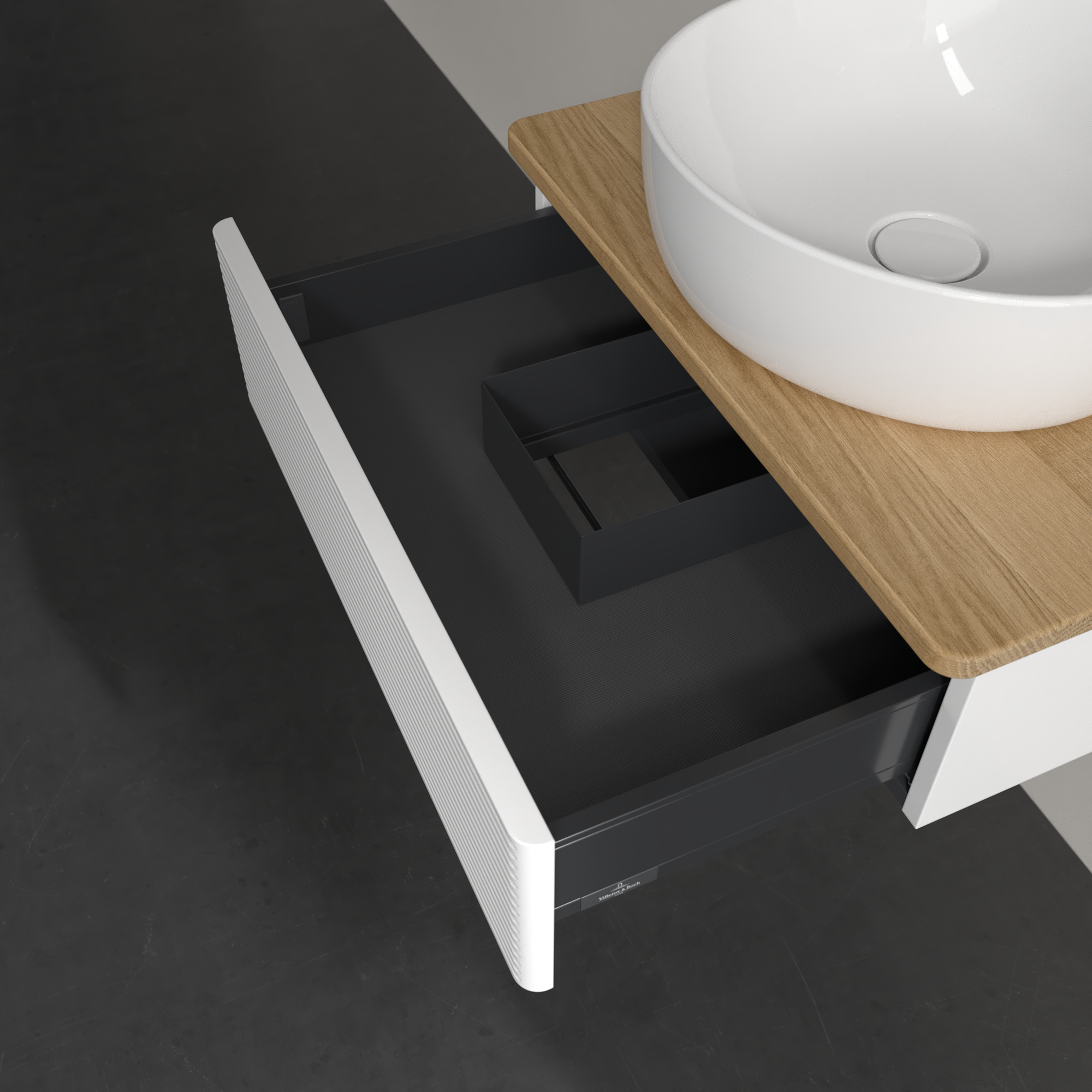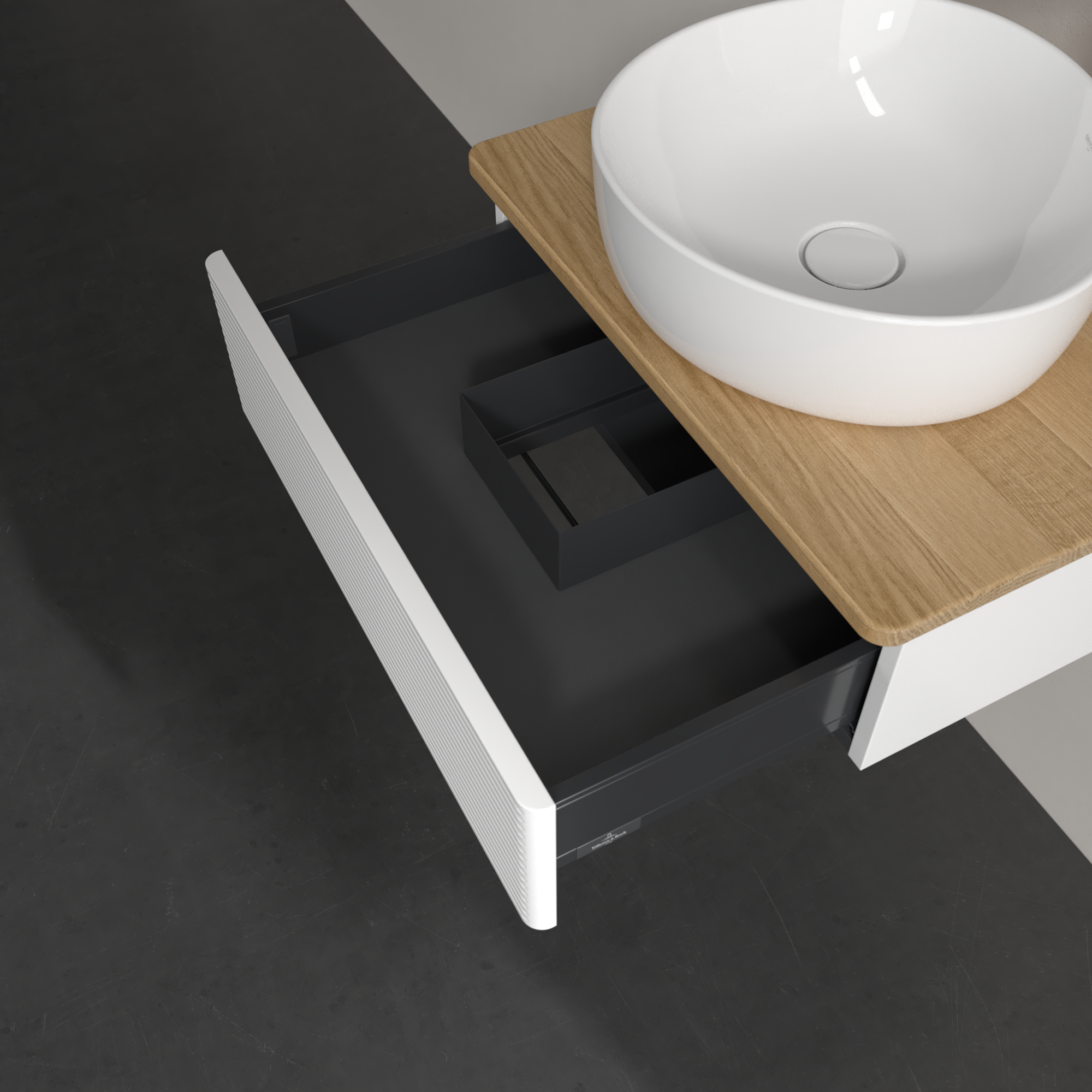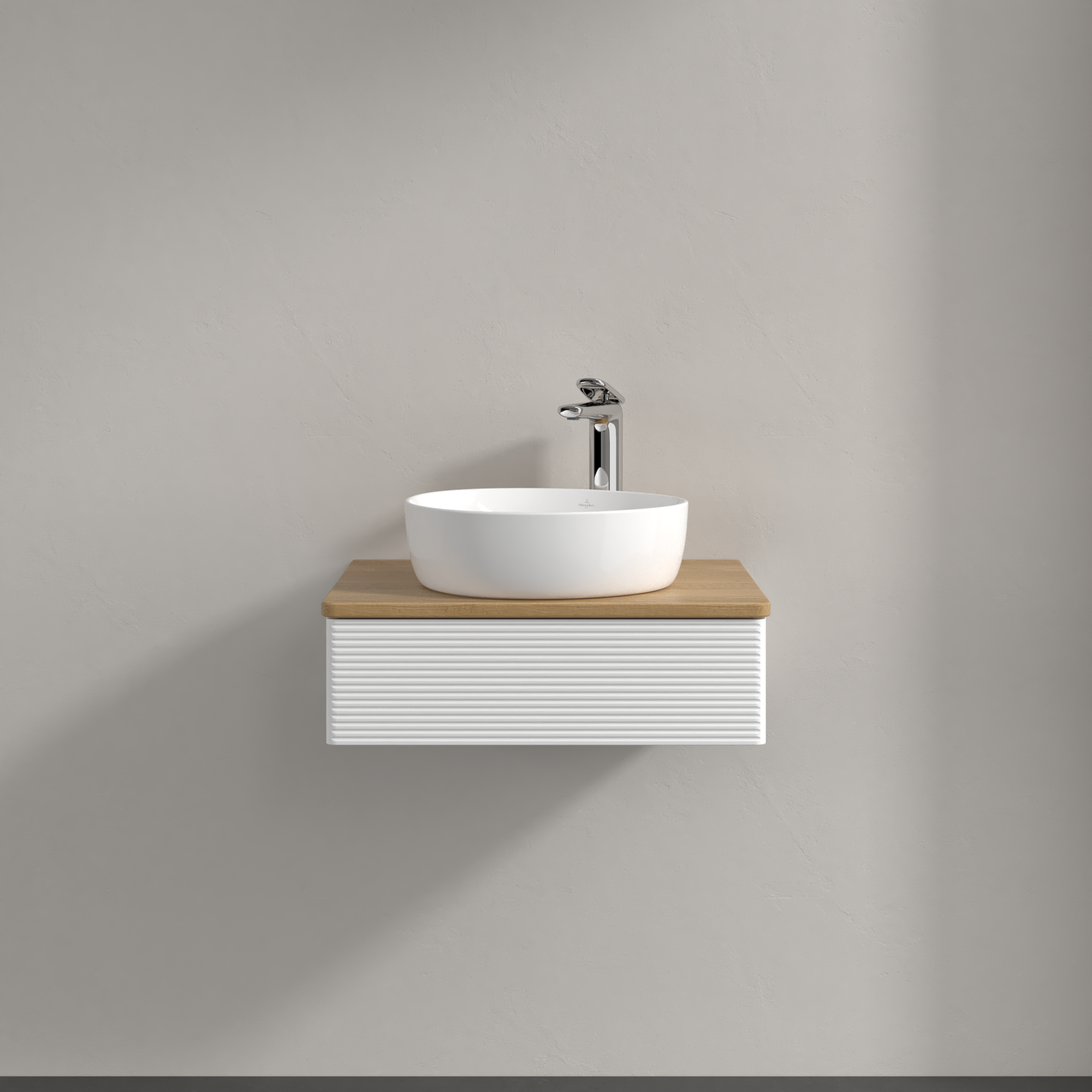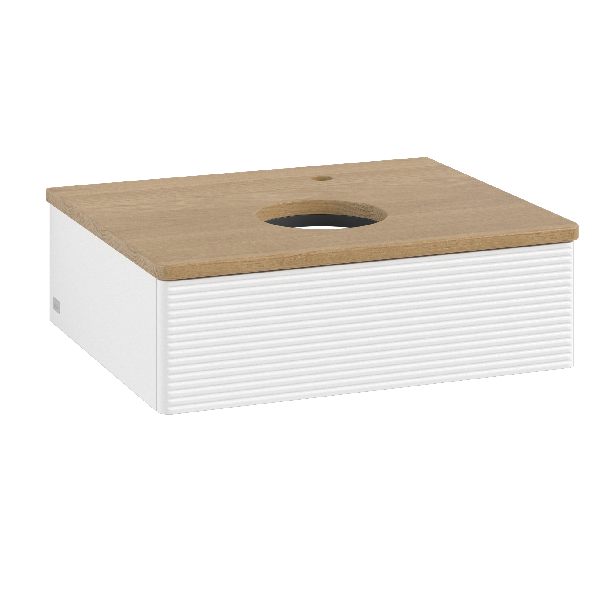 Antao Waschbeckenunterschrank, 1 Auszug, 600x190x500mm, Front mit Struktur, Korpus: White Matt Lacquer, Front: White Matt Lacquer, Abdeckplatte: Honey Oak