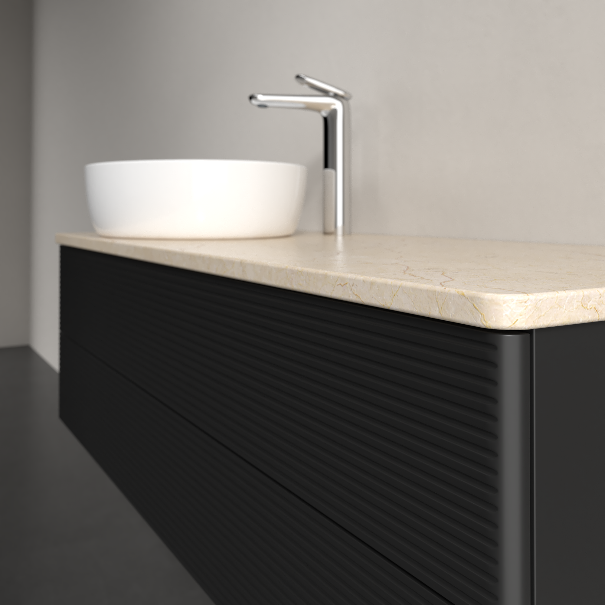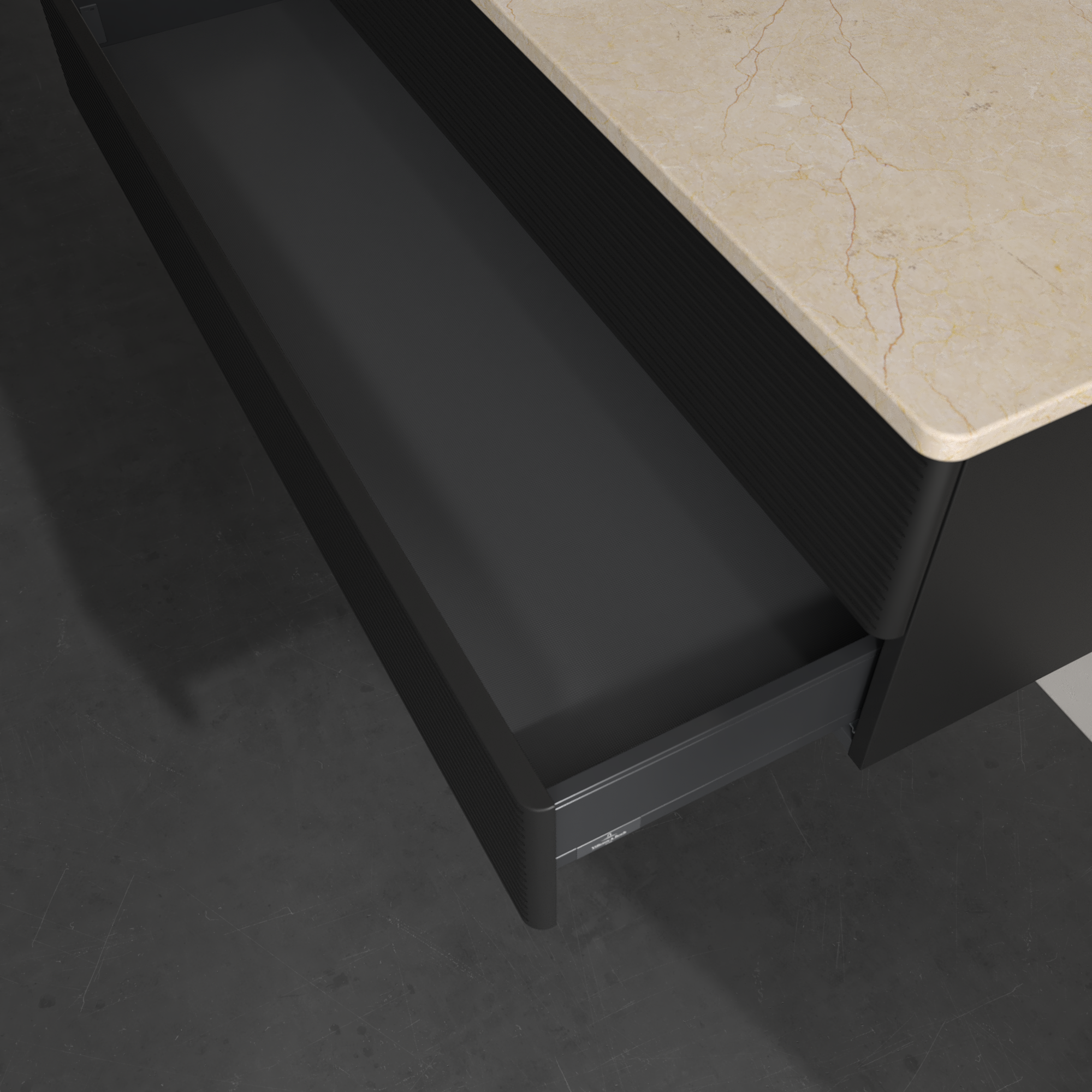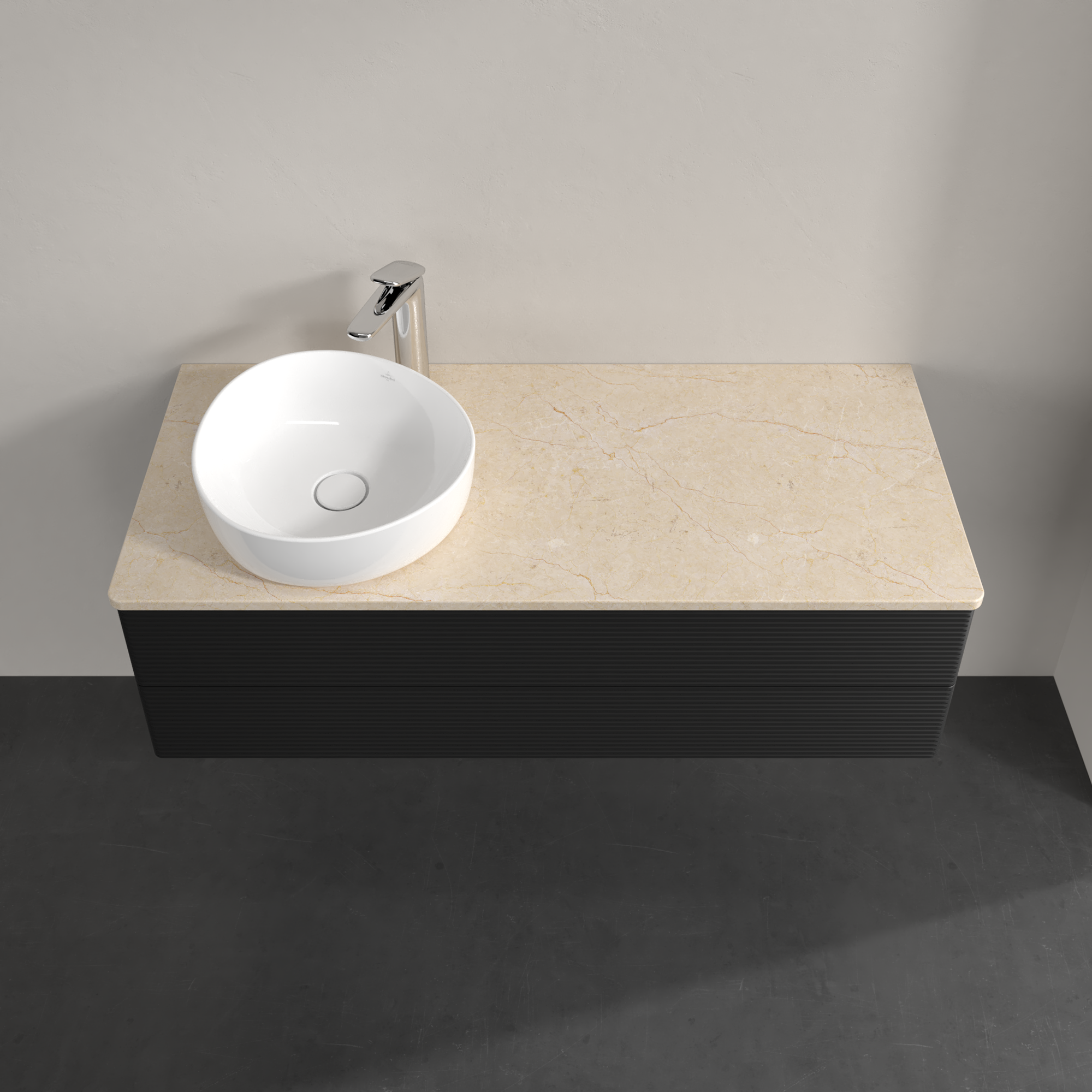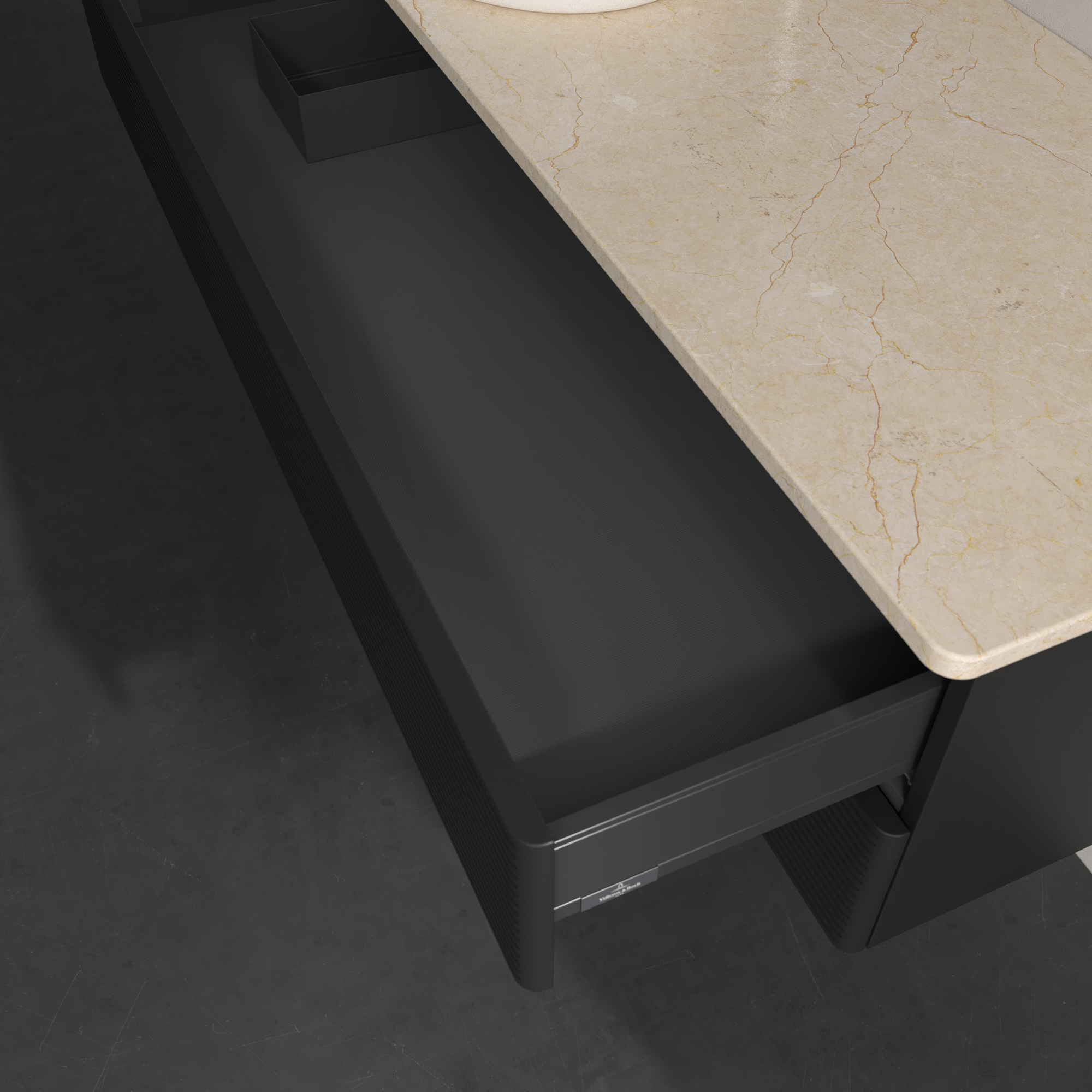 Antao Waschbeckenunterschrank, 2 Auszüge, 1200x360x500mm, Front mit Struktur, Korpus: Black Matt Lacquer, Front: Black Matt Lacquer, Abdeckplatte: Botticino