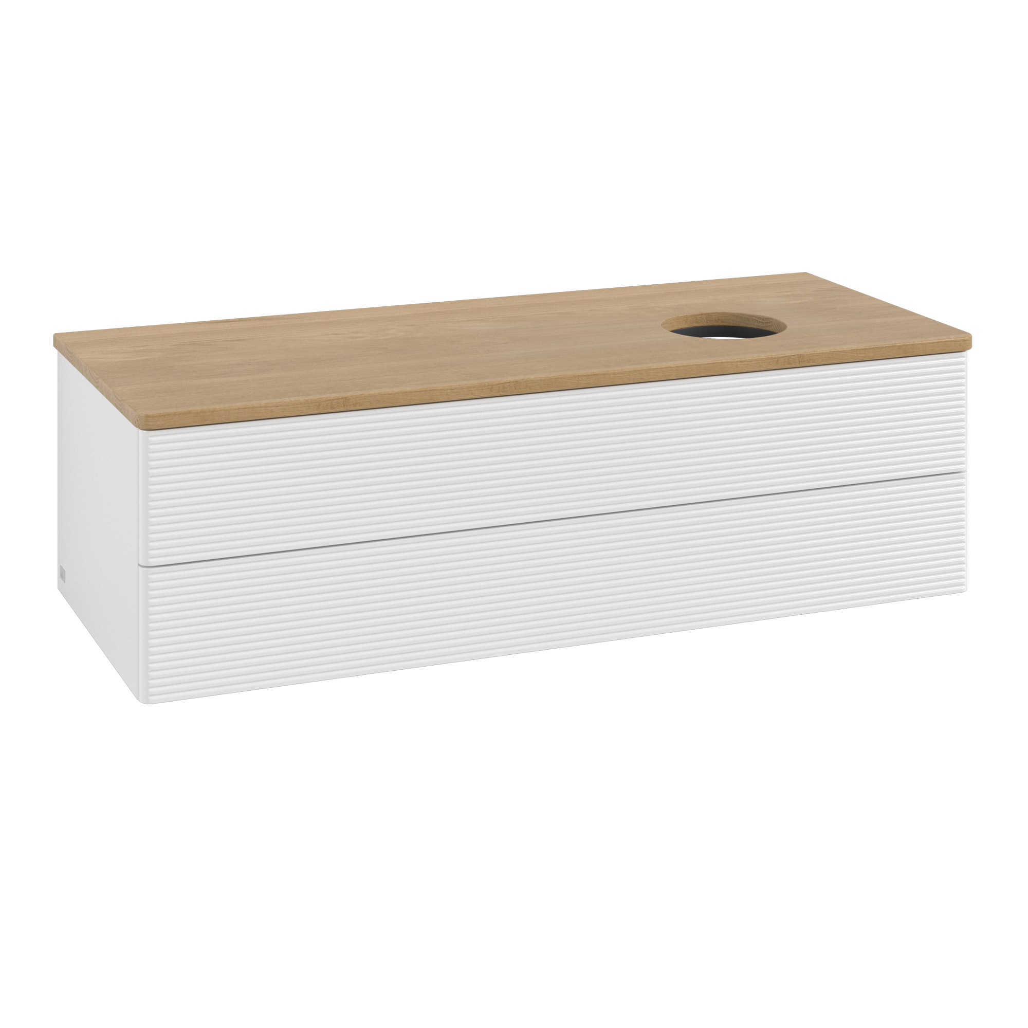 Antao Waschbeckenunterschrank, 2 Auszüge, 1200x360x500mm, Front mit Struktur, Korpus: Glossy White Lacquer, Front: Glossy White Lacquer, Abdeckplatte: Honey Oak