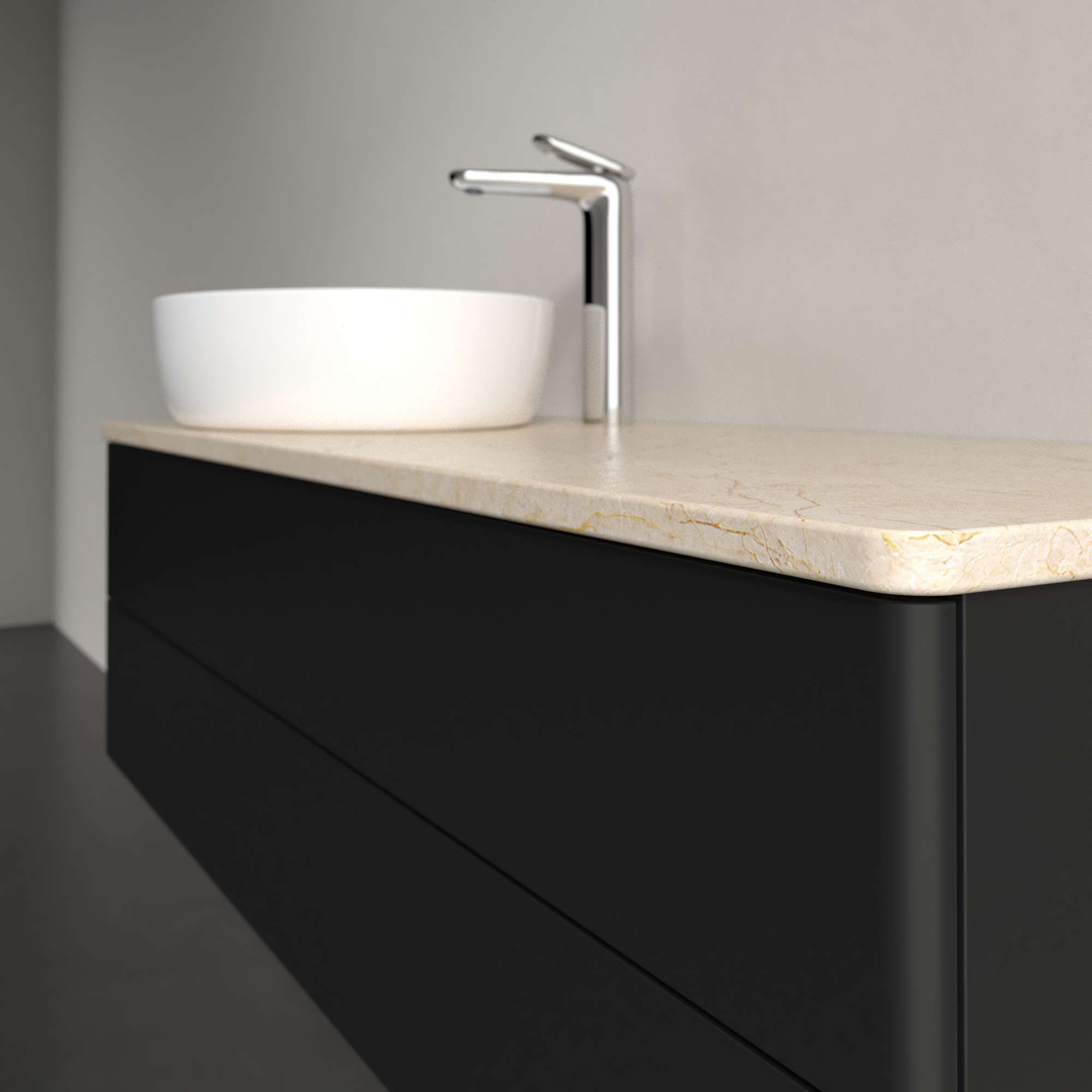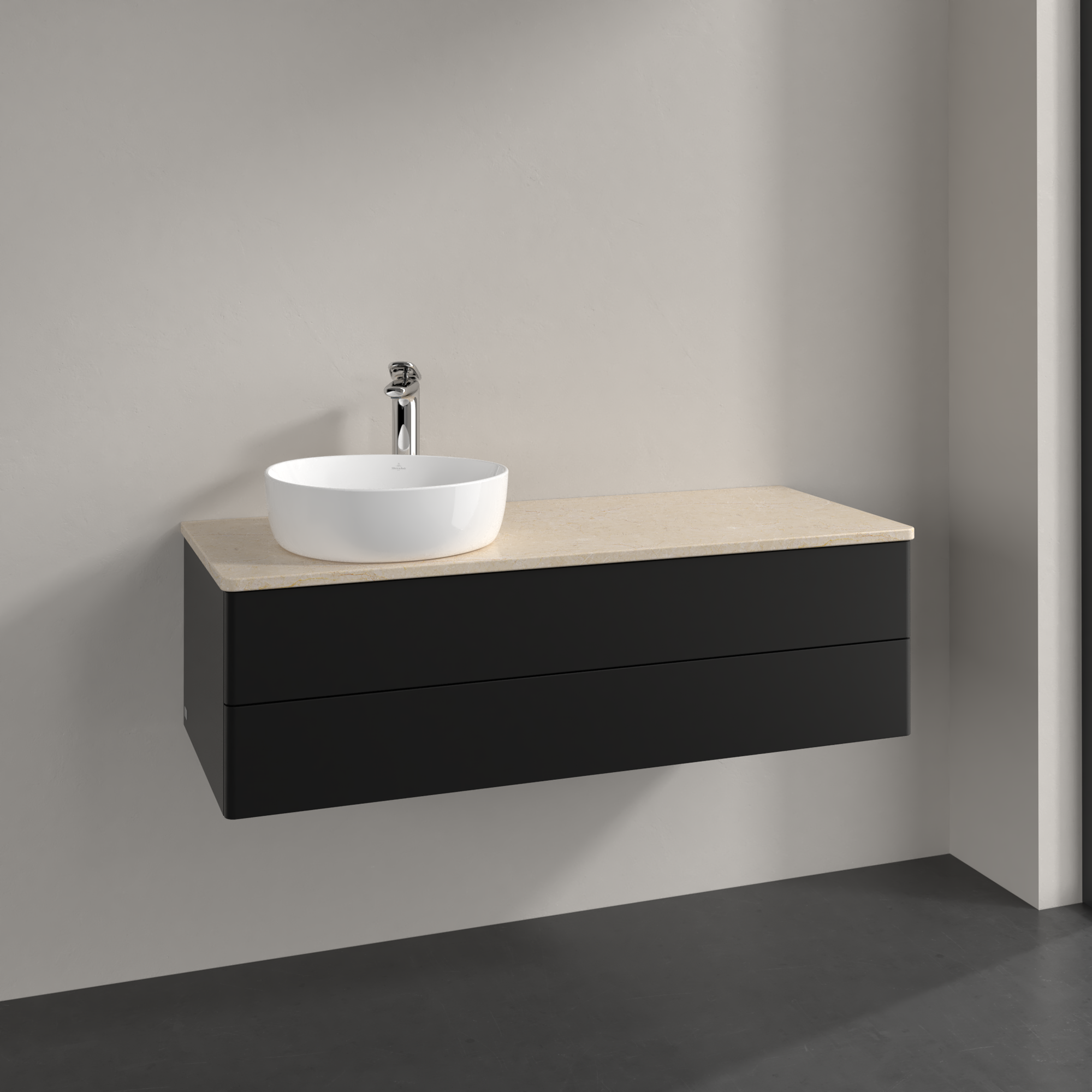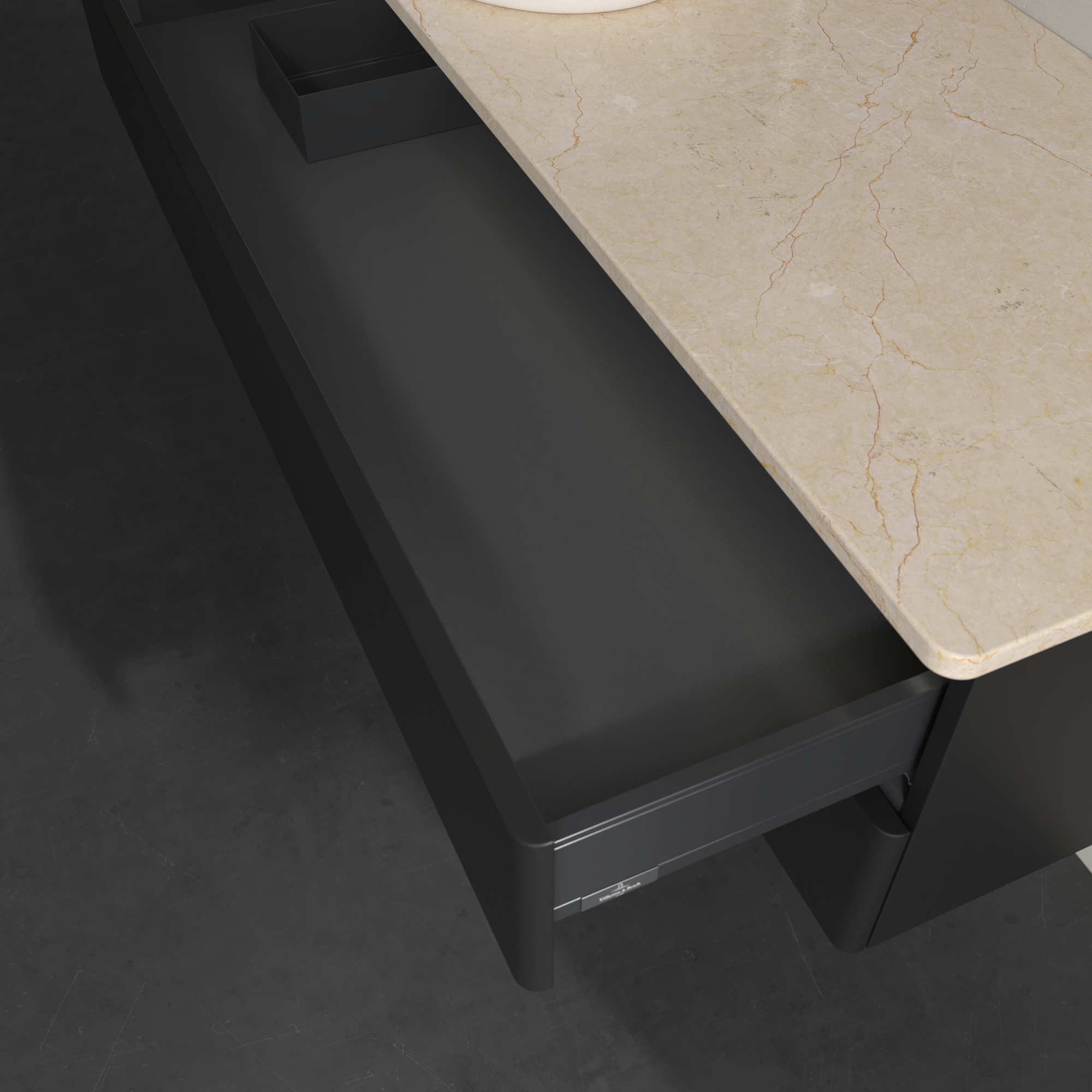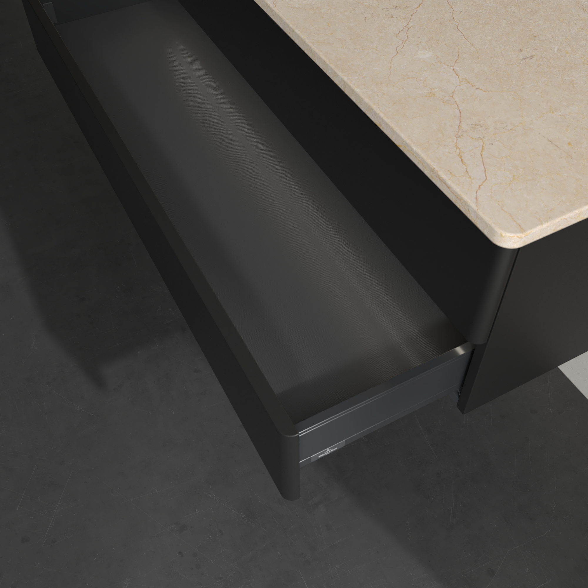 Antao Waschbeckenunterschrank, mit Beleuchtung, 2 Auszüge, 1200x360x500mm, Front ohne Struktur, Korpus: Black Matt Lacquer, Front: Black Matt Lacquer, Abdeckplatte: Botticino