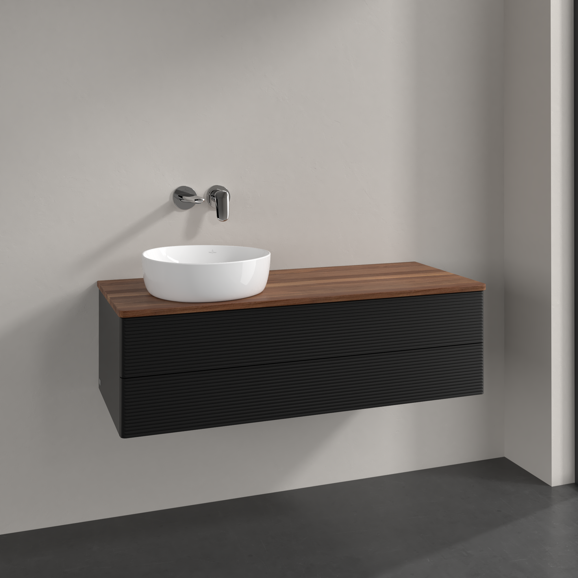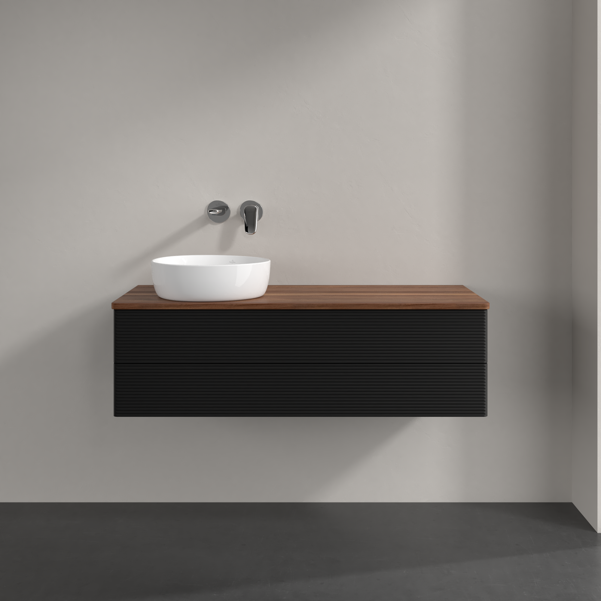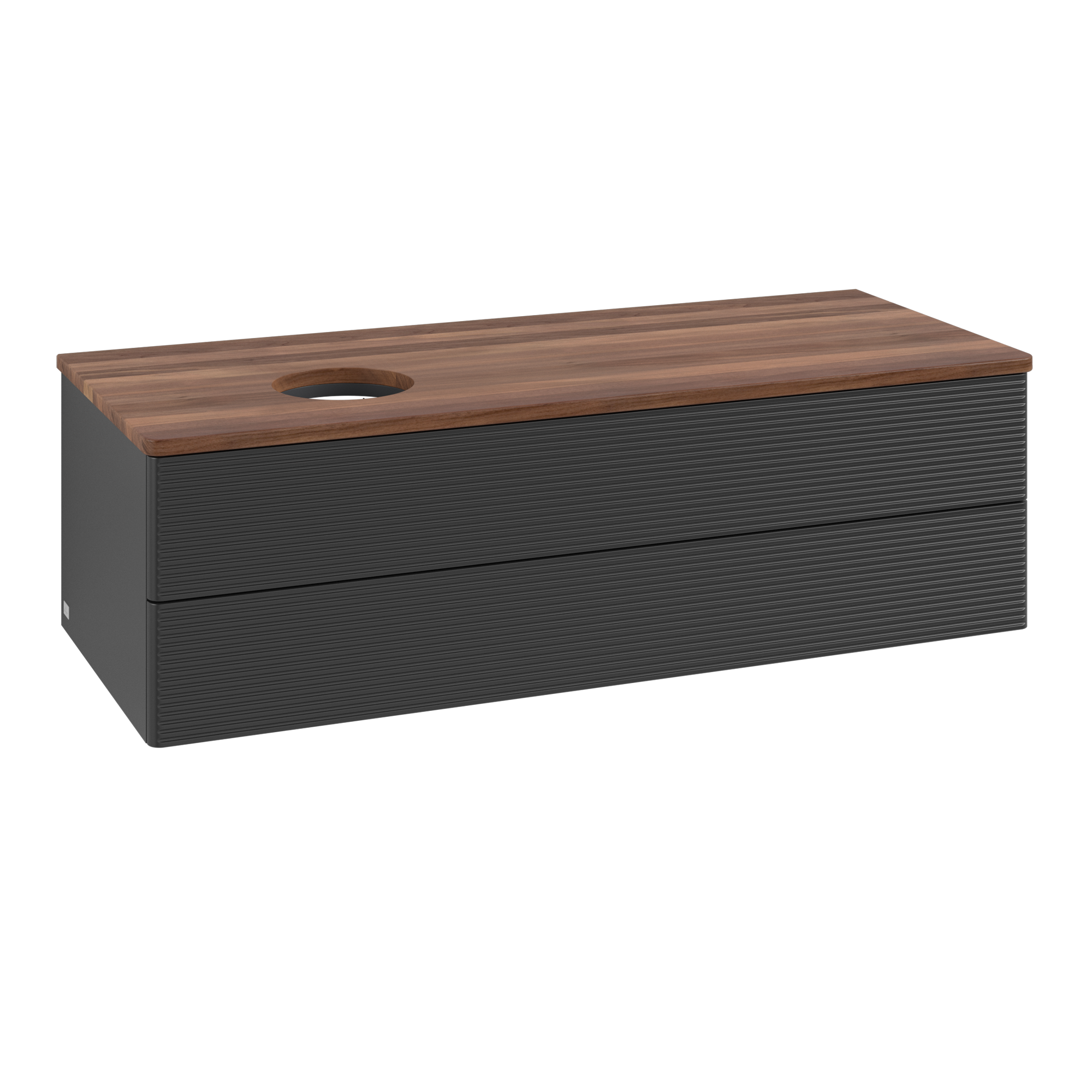 Antao Waschbeckenunterschrank, mit Beleuchtung, 2 Auszüge, 1200x360x500mm, Front mit Struktur, Korpus: Black Matt Lacquer, Front: Black Matt Lacquer, Abdeckplatte: Warm Walnut