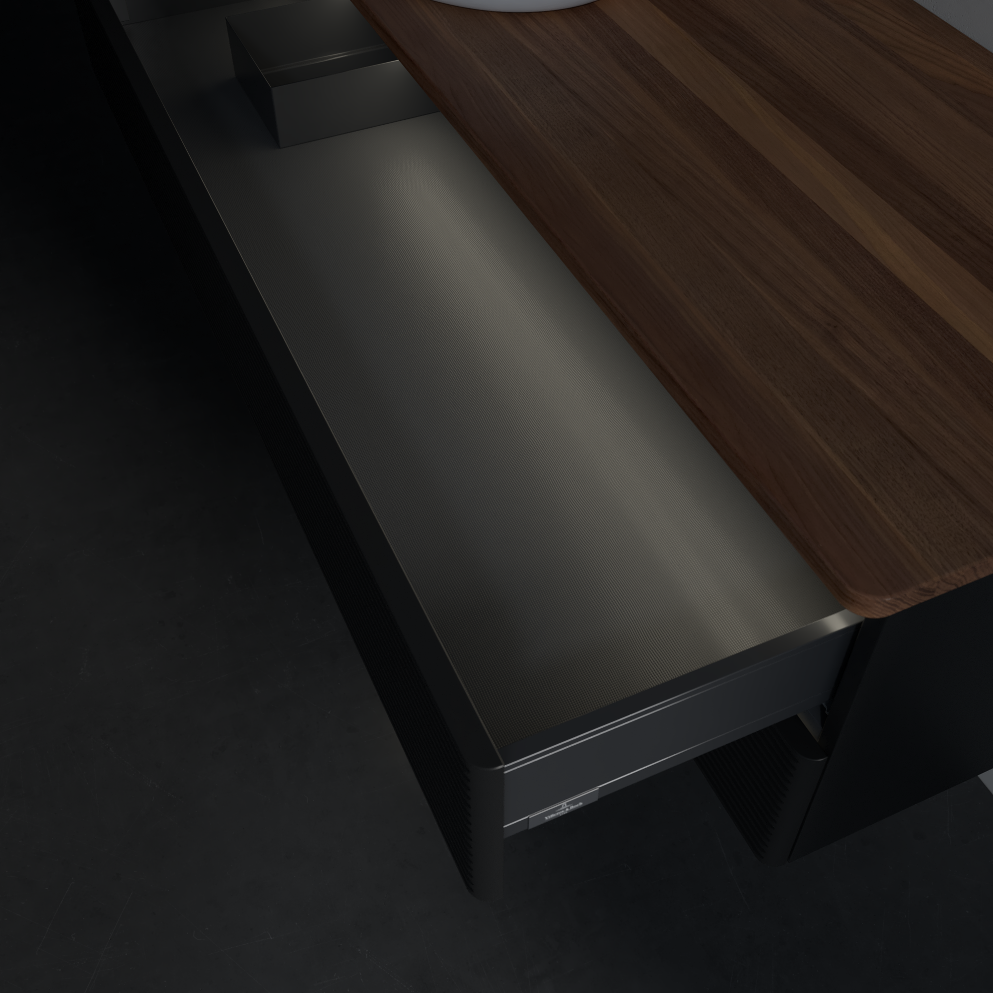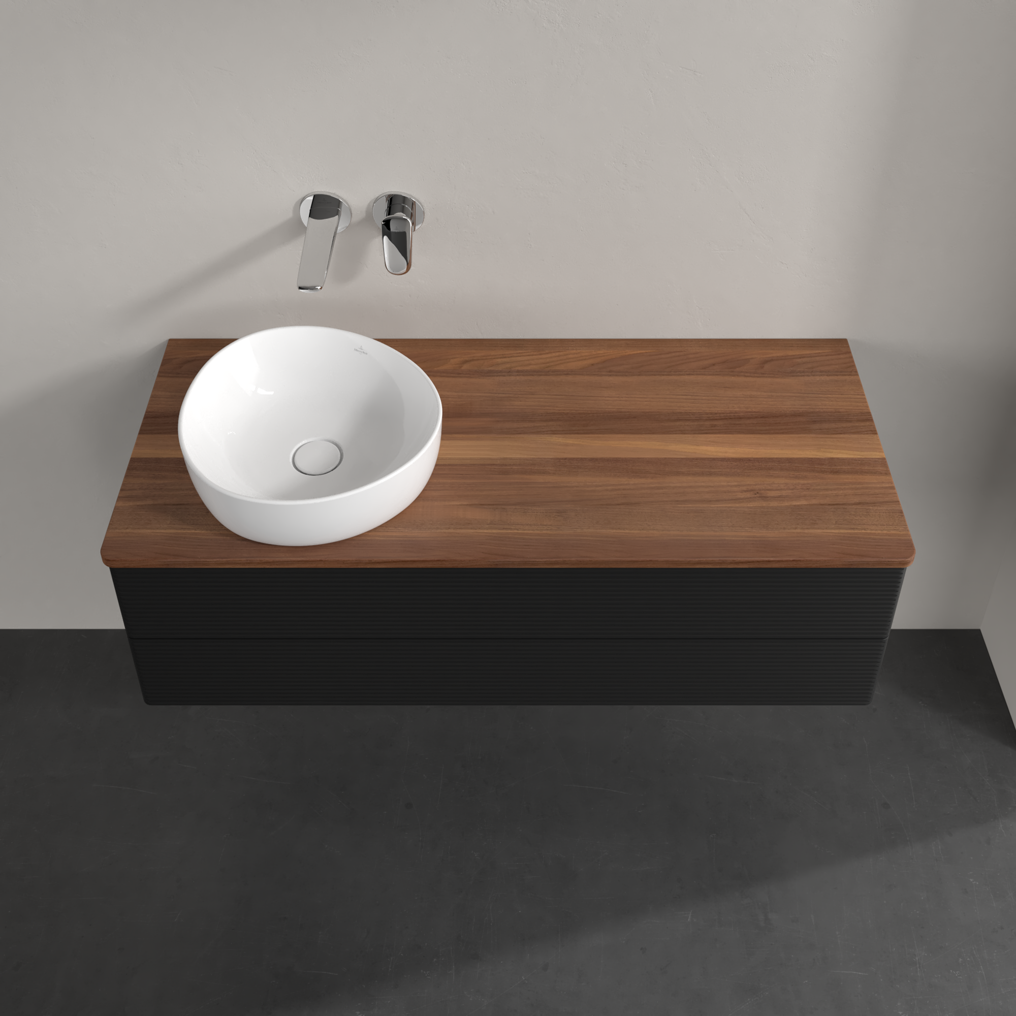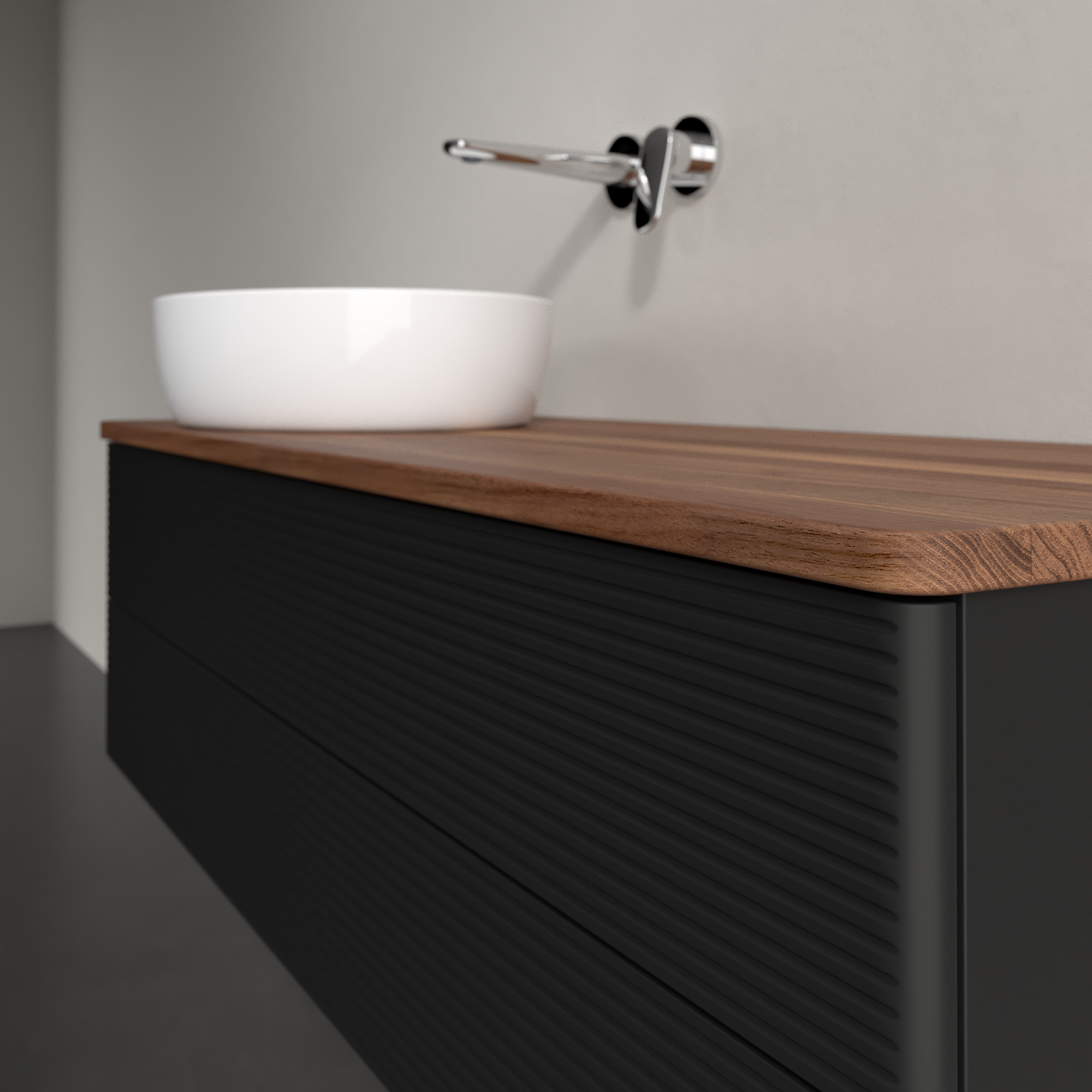 Antao Waschbeckenunterschrank, mit Beleuchtung, 2 Auszüge, 1200x360x500mm, Front mit Struktur, Korpus: Black Matt Lacquer, Front: Black Matt Lacquer, Abdeckplatte: Warm Walnut