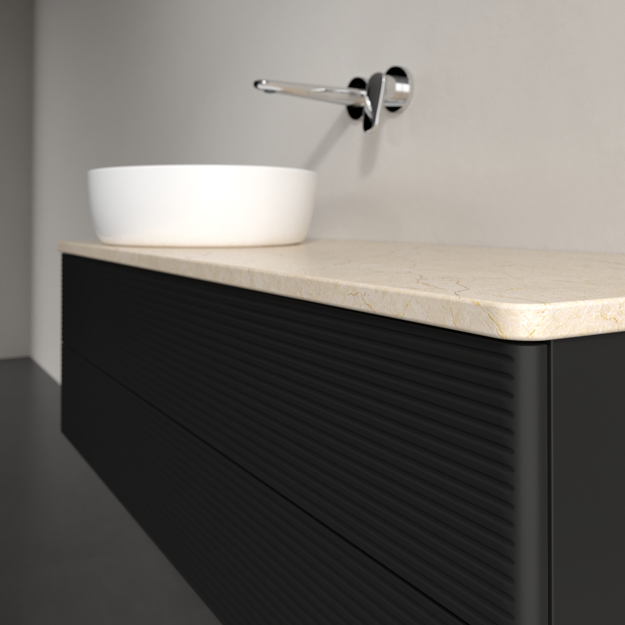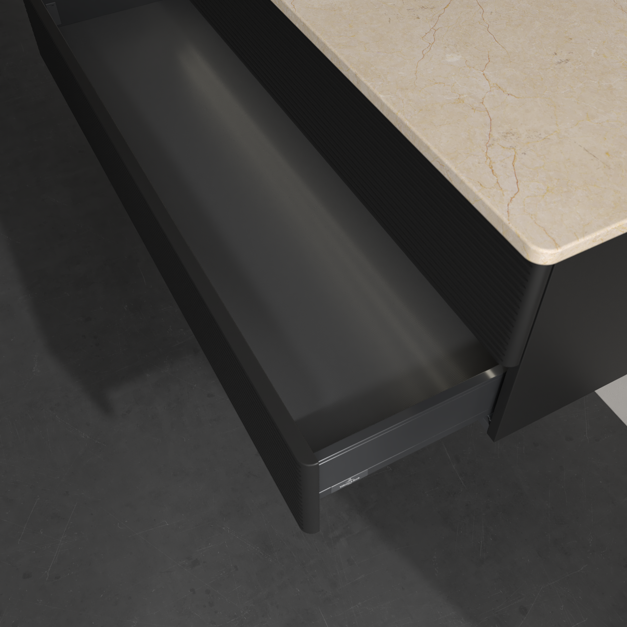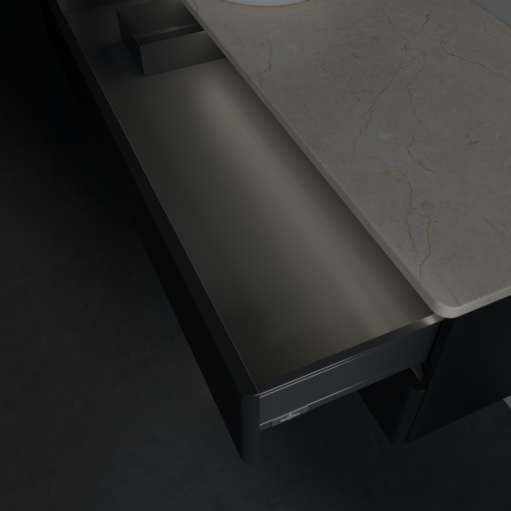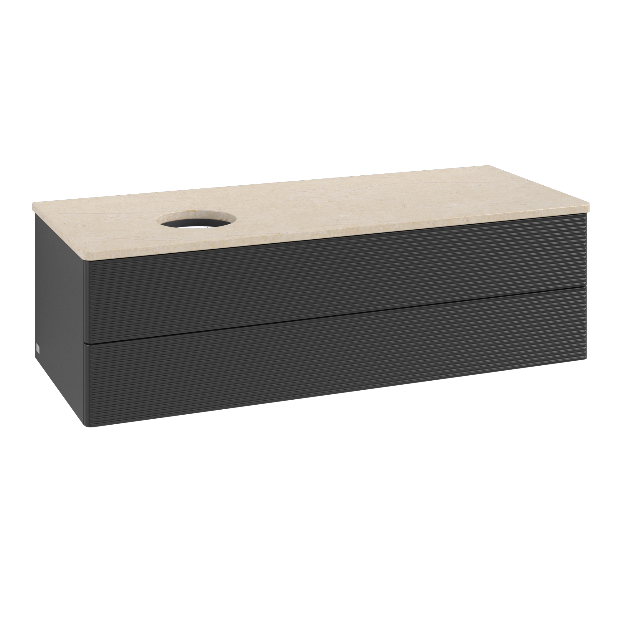Antao Waschbeckenunterschrank, mit Beleuchtung, 2 Auszüge, 1200x360x500mm, Front mit Struktur, Korpus: Black Matt Lacquer, Front: Black Matt Lacquer, Abdeckplatte: Botticino