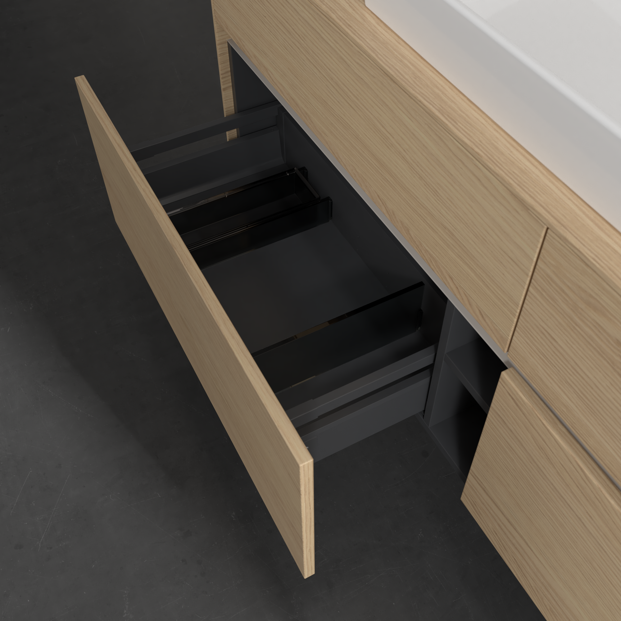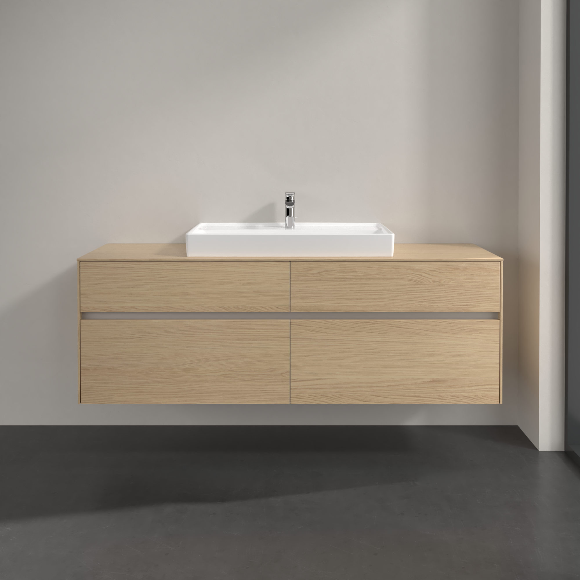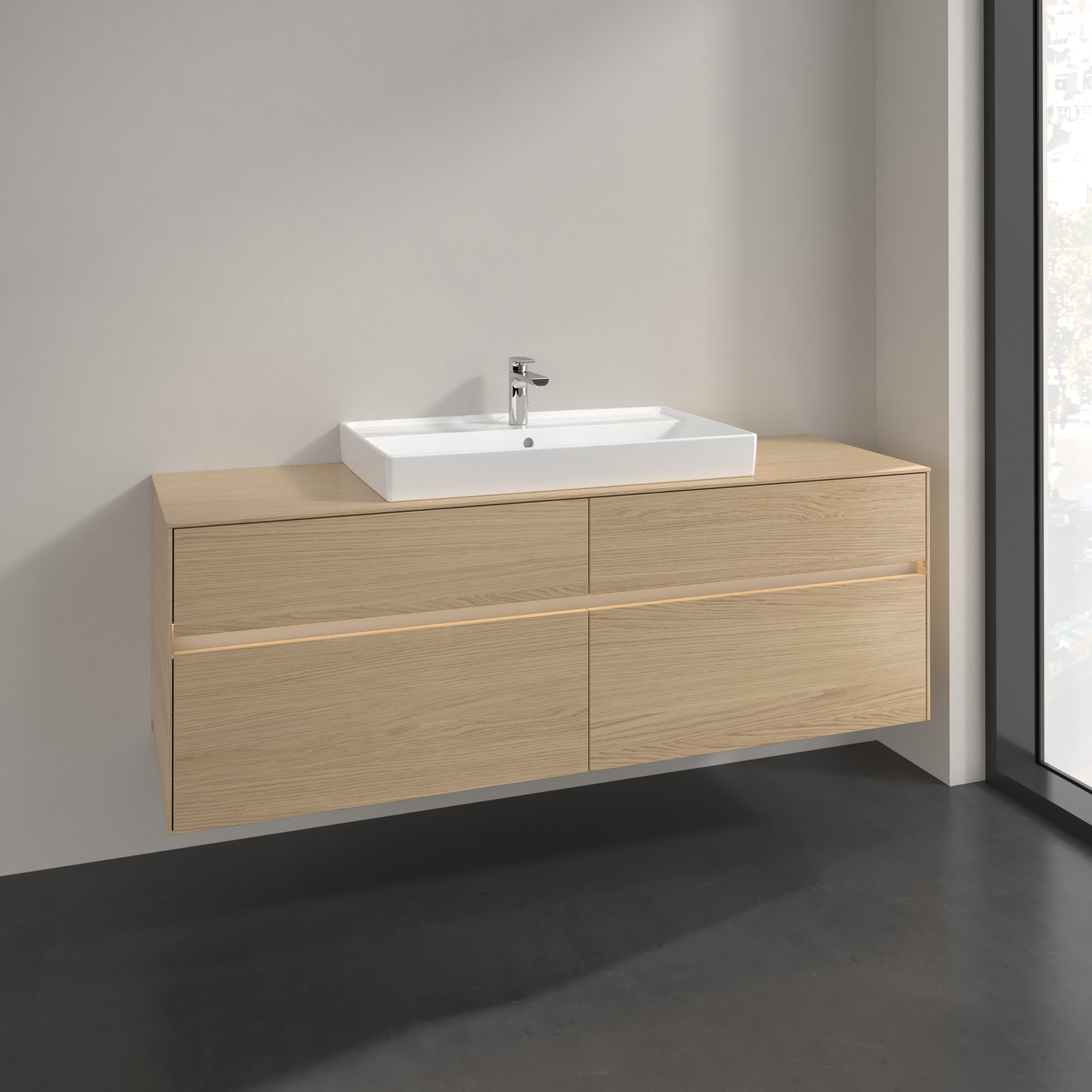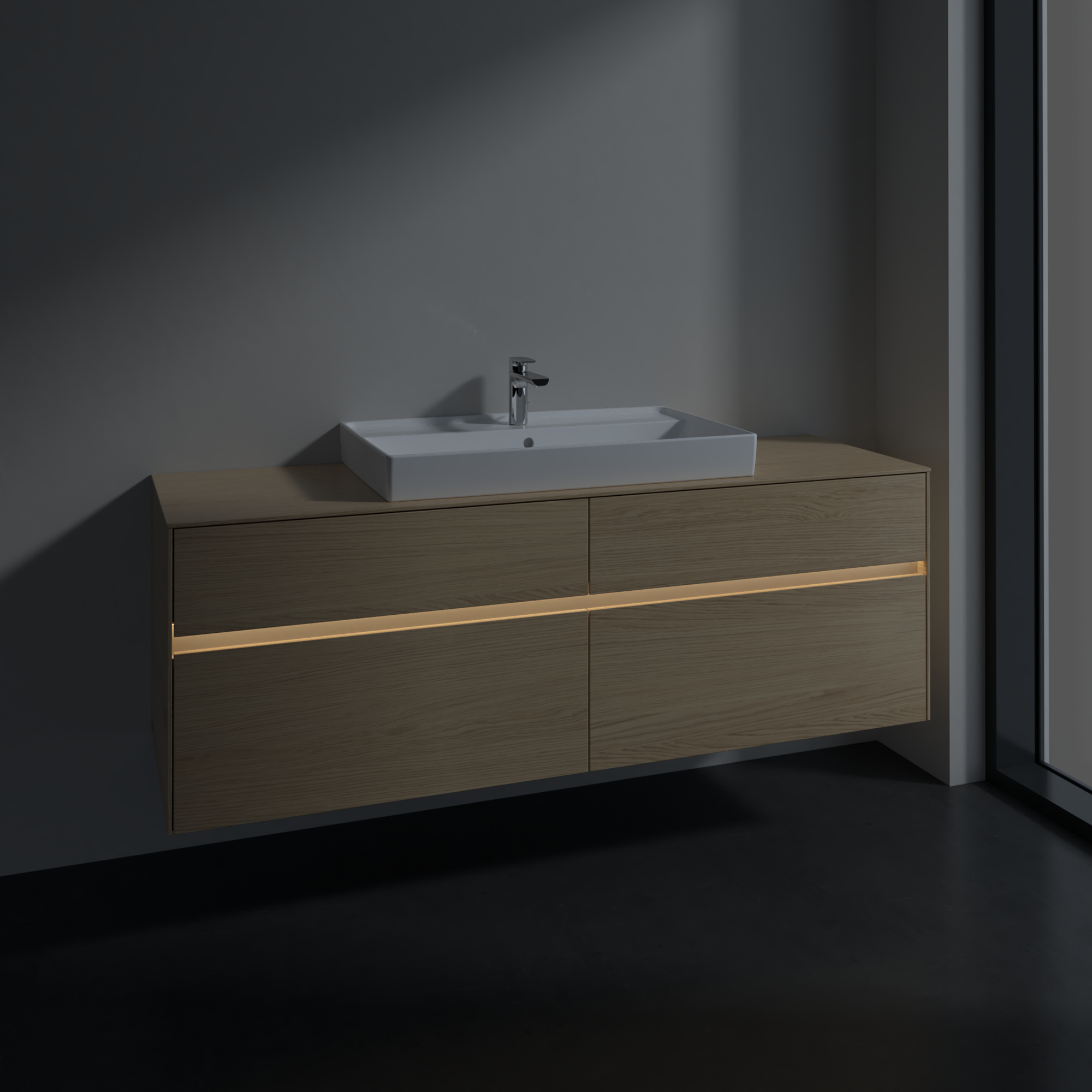 Collaro Waschbeckenunterschrank, mit Beleuchtung, 4 Auszüge, 1600x548x500mm, Korpus: Nordic Oak, Front: Nordic Oak