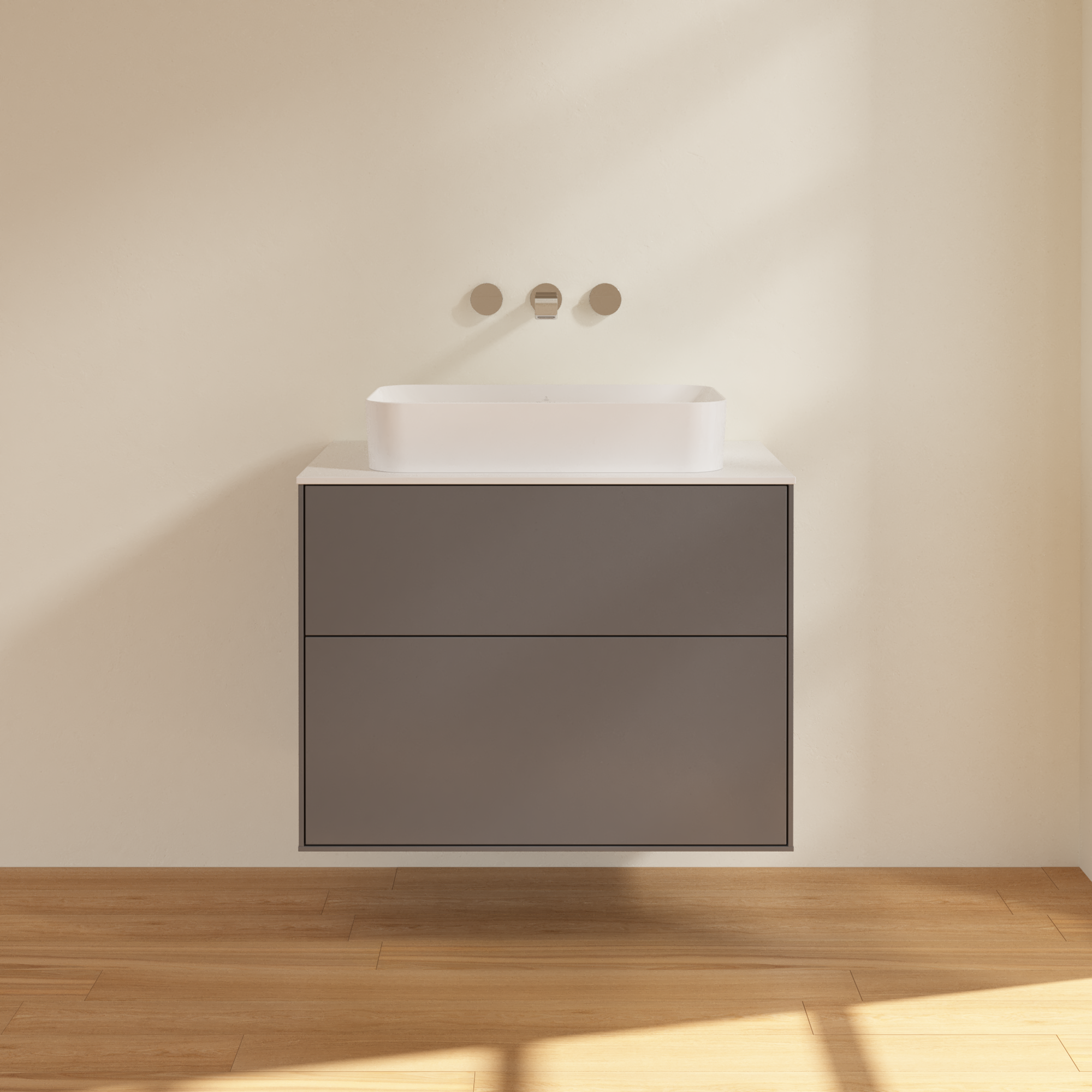 Finion Waschbeckenunterschrank, 2 Auszüge, 800x603x501mm, Korpus: Anthracite Matt Lacquer, Front: Anthracite Matt Lacquer, Abdeckplatte: Glass White Matt