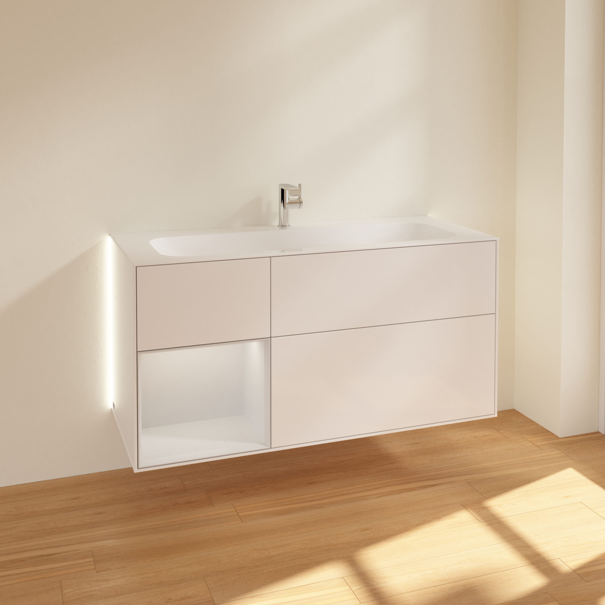 Finion Waschbeckenunterschrank, mit Beleuchtung, 3 Auszüge, 1196x591x498mm, Korpus: Glossy White Lacquer, Front: Glossy White Lacquer, Regalelement: Glossy White Lacquer