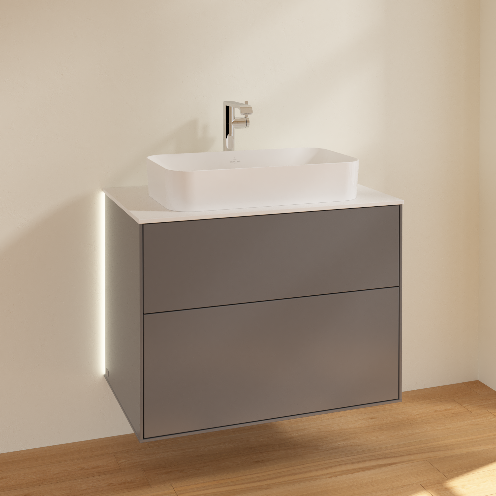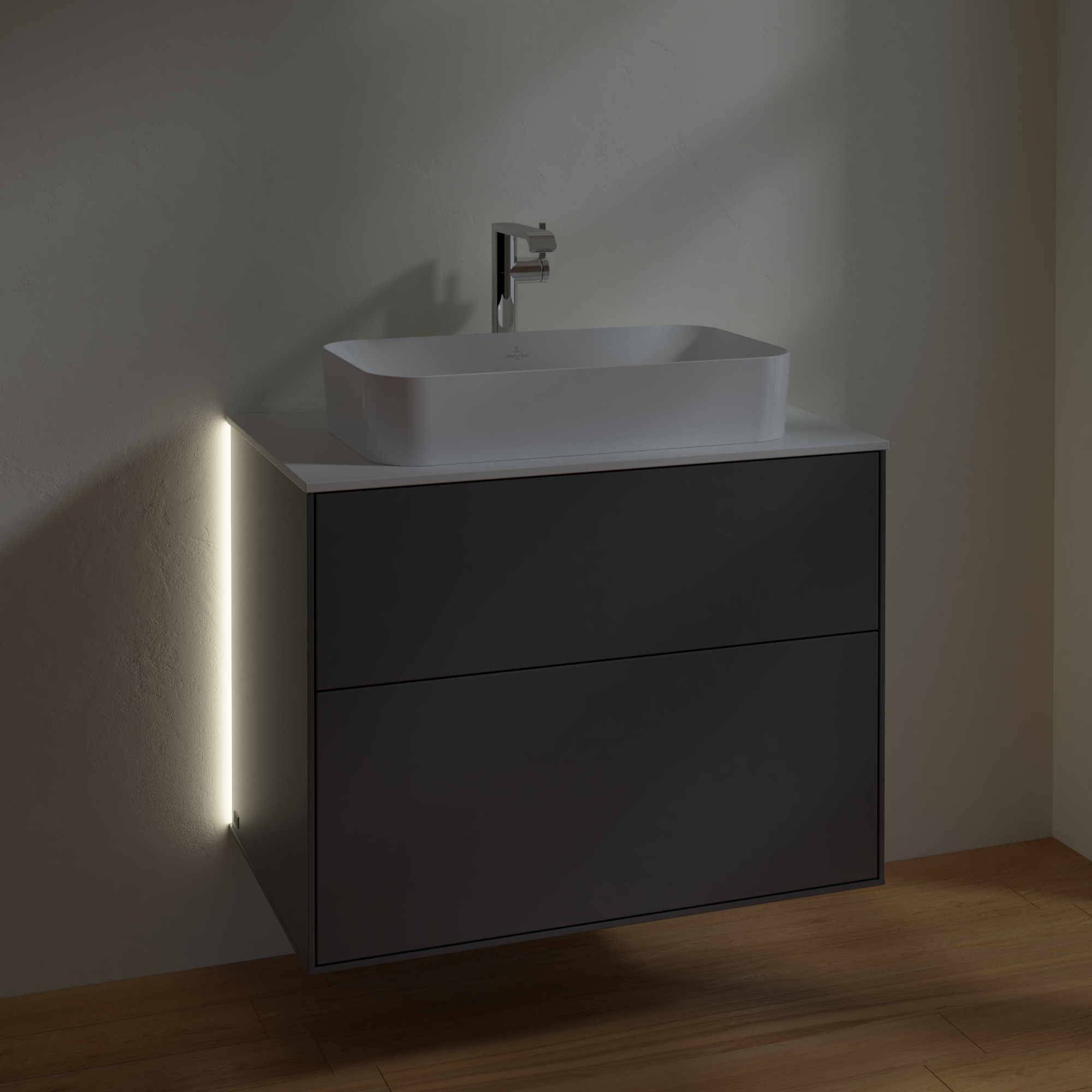 Finion Waschbeckenunterschrank, mit Beleuchtung, 2 Auszüge, 800x603x501mm, Korpus: Anthracite Matt Lacquer, Front: Anthracite Matt Lacquer, Abdeckplatte: Glass White Matt