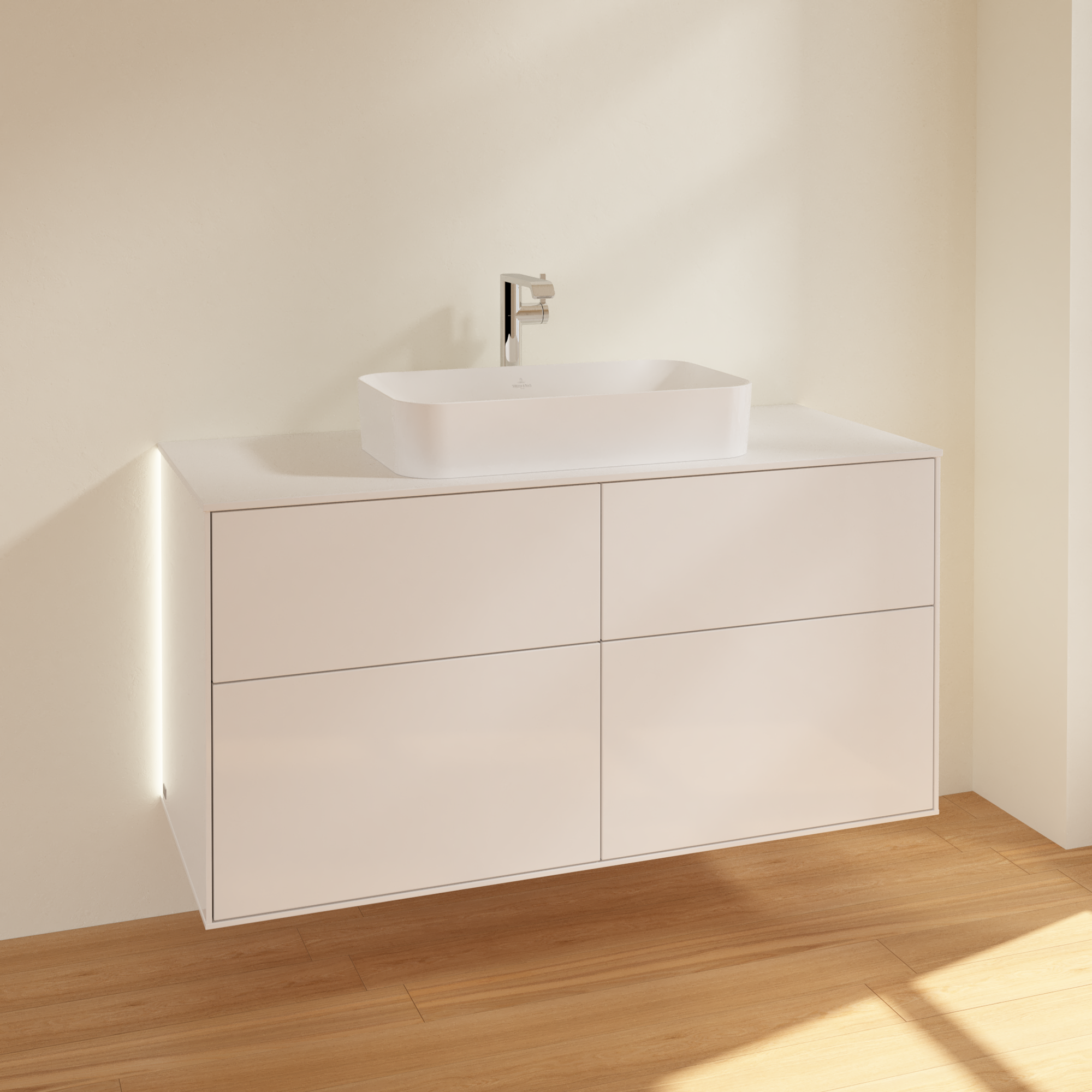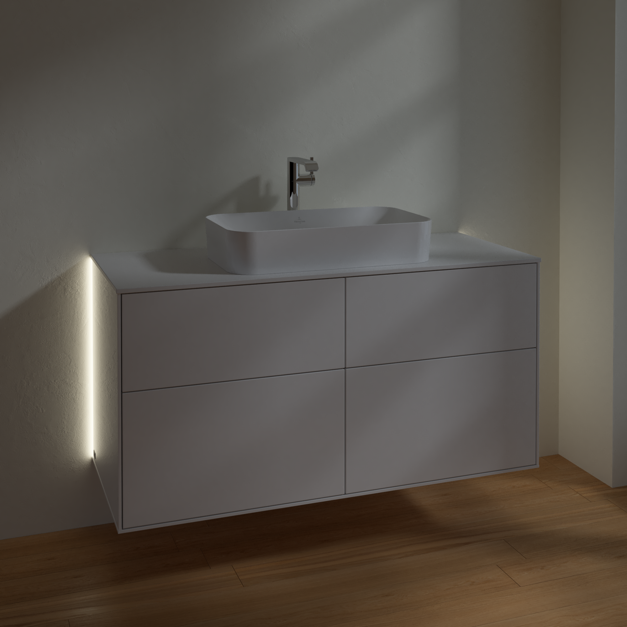 Finion Waschbeckenunterschrank, mit Beleuchtung, 4 Auszüge, 1200x603x501mm, Korpus: Glossy White Lacquer, Front: Glossy White Lacquer, Abdeckplatte: Glass White Matt