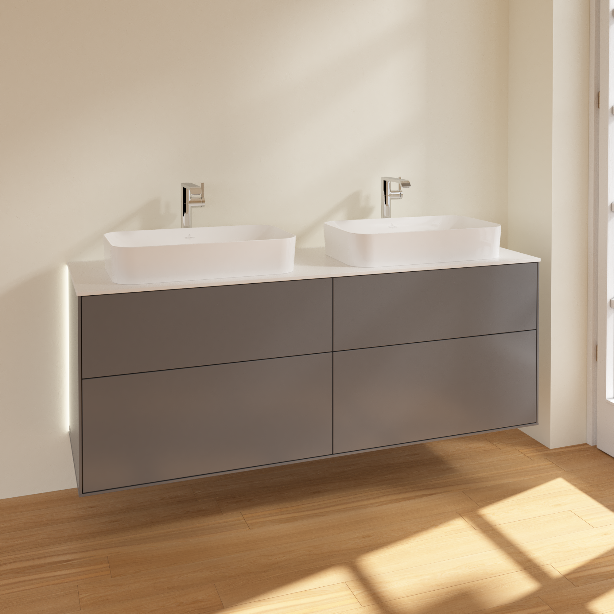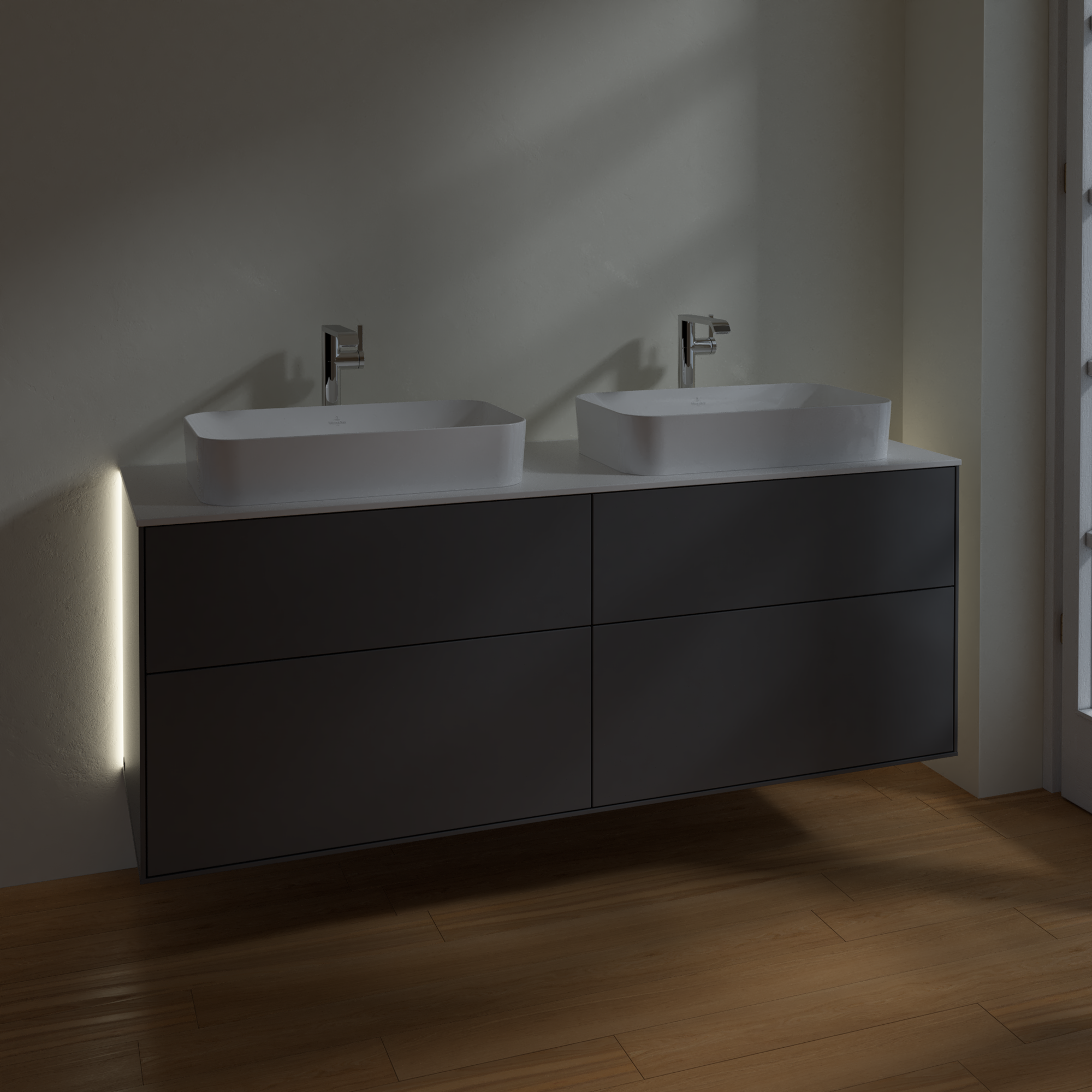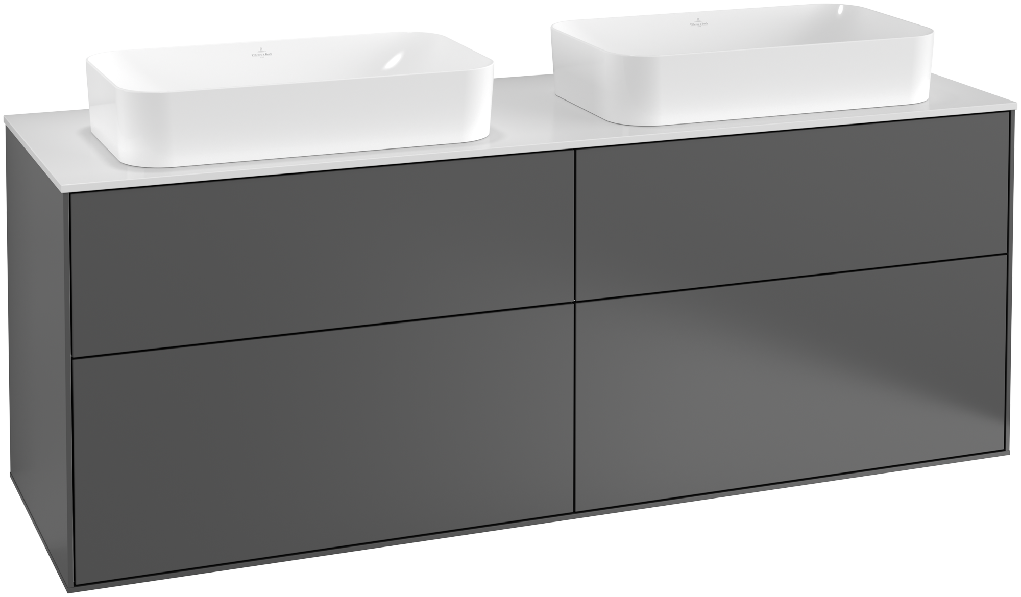 Finion Waschbeckenunterschrank, mit Beleuchtung, 4 Auszüge, 1600x603x501mm, Korpus: Anthracite Matt Lacquer, Front: Anthracite Matt Lacquer, Abdeckplatte: Glass White Matt