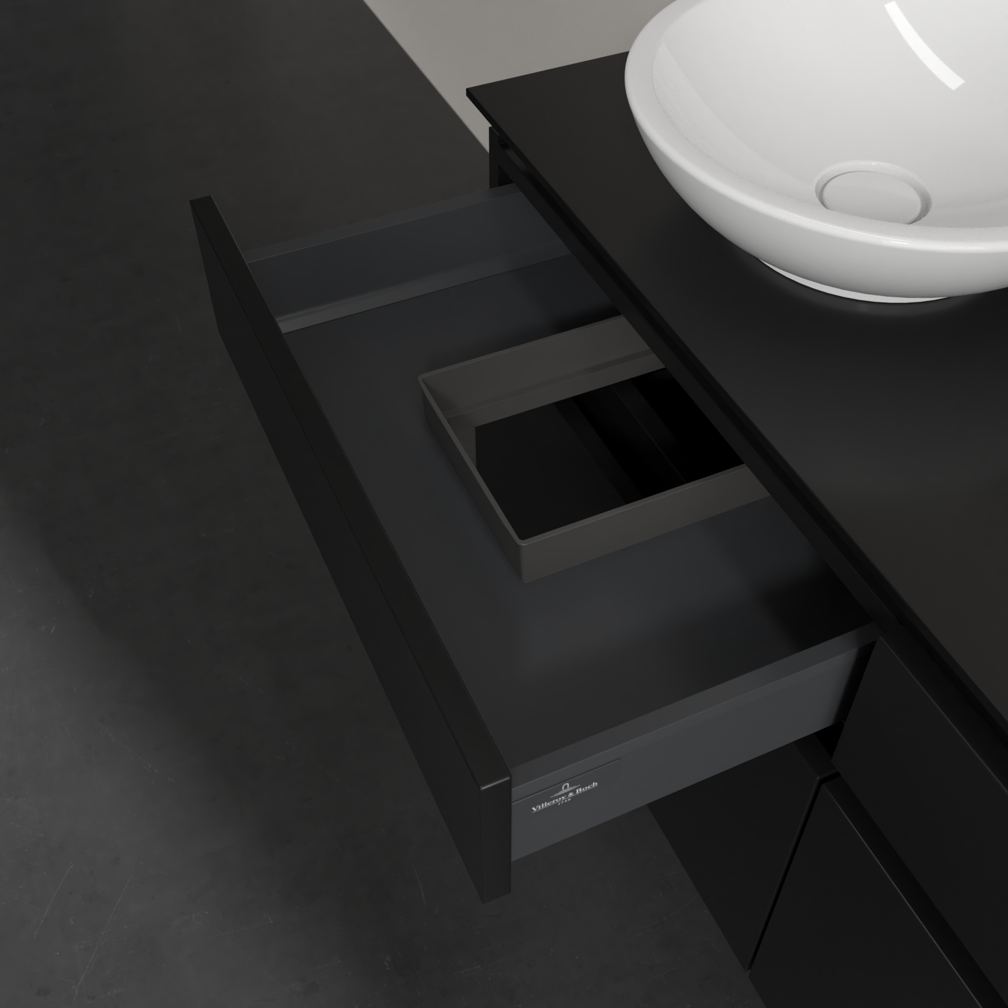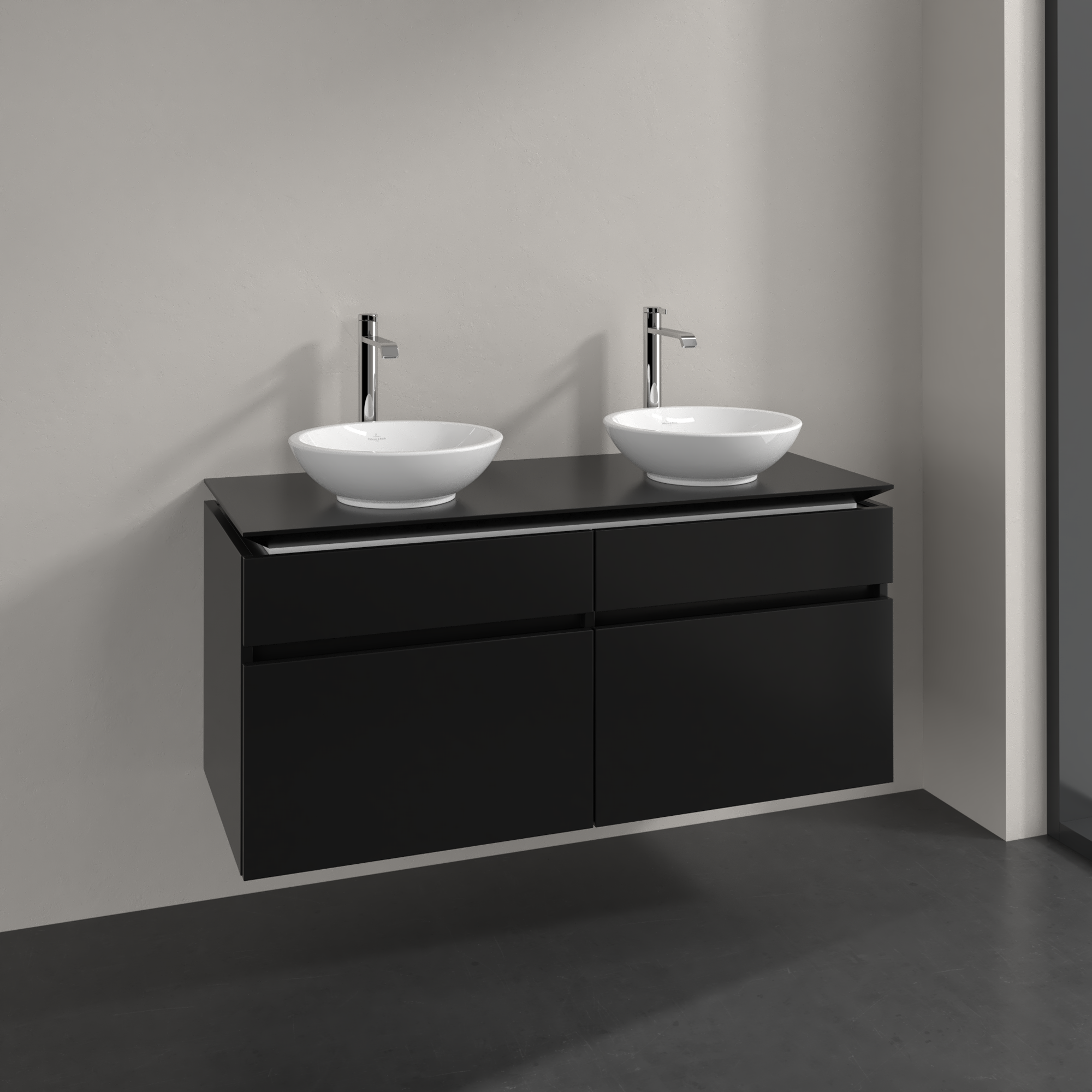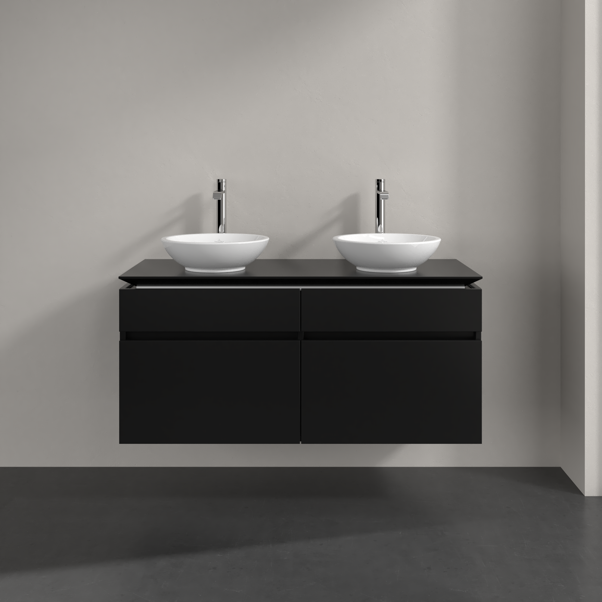 Legato Waschbeckenunterschrank, 4 Auszüge, 1200x550x500mm, Korpus: Black Matt Lacquer, Front: Black Matt Lacquer