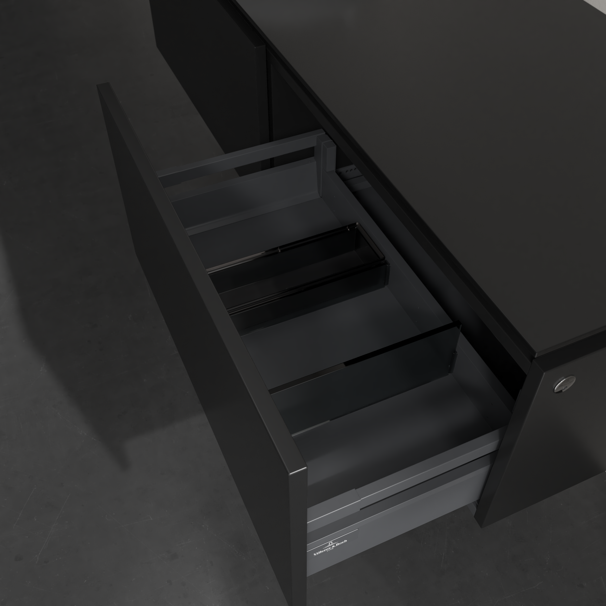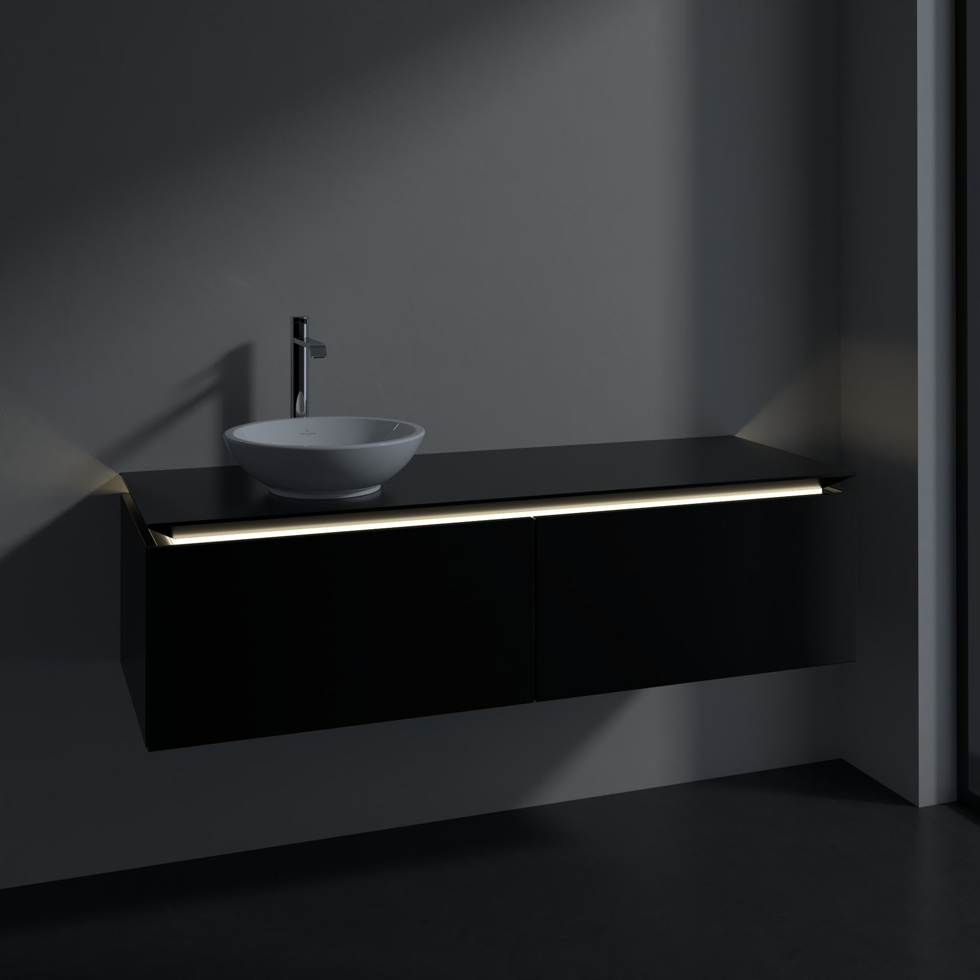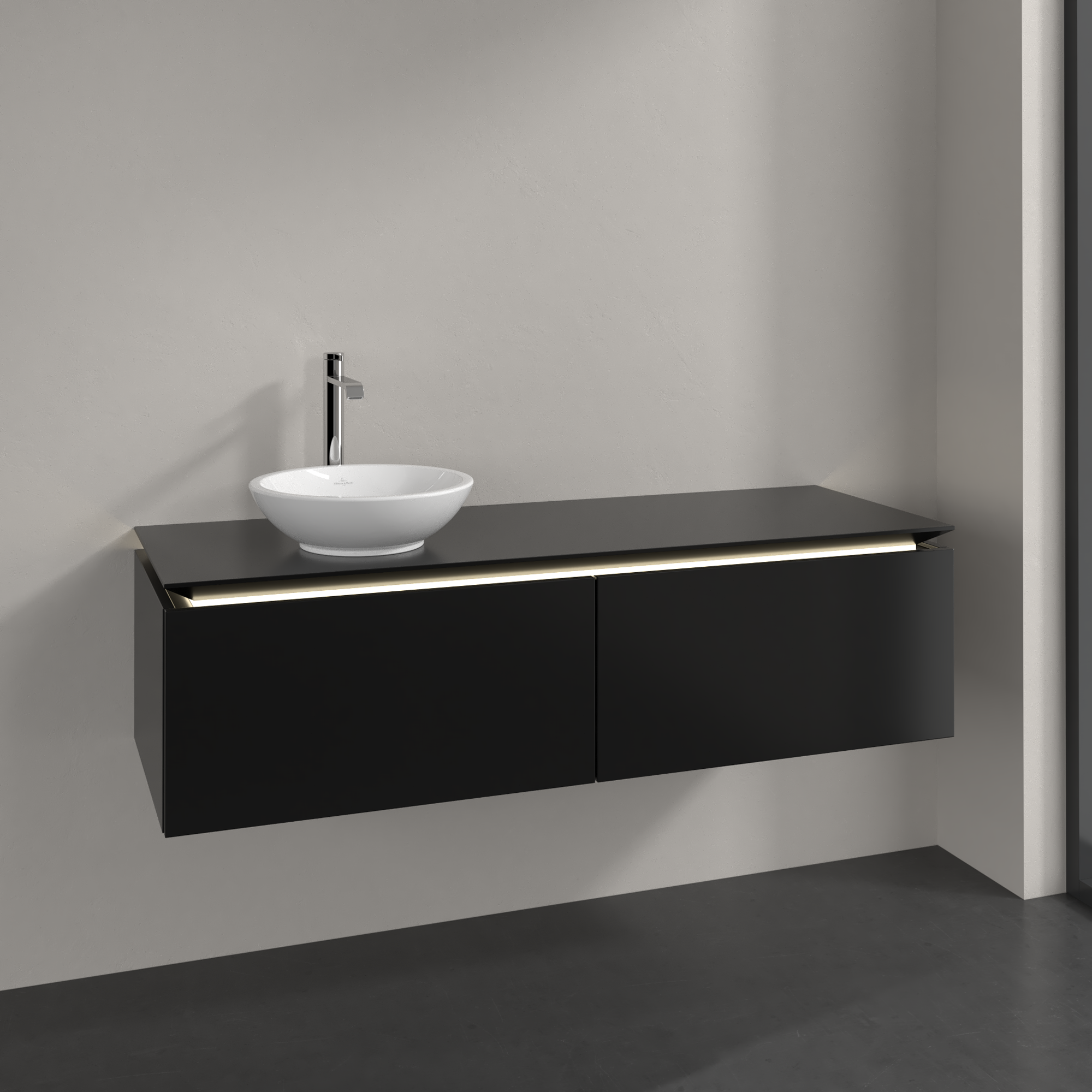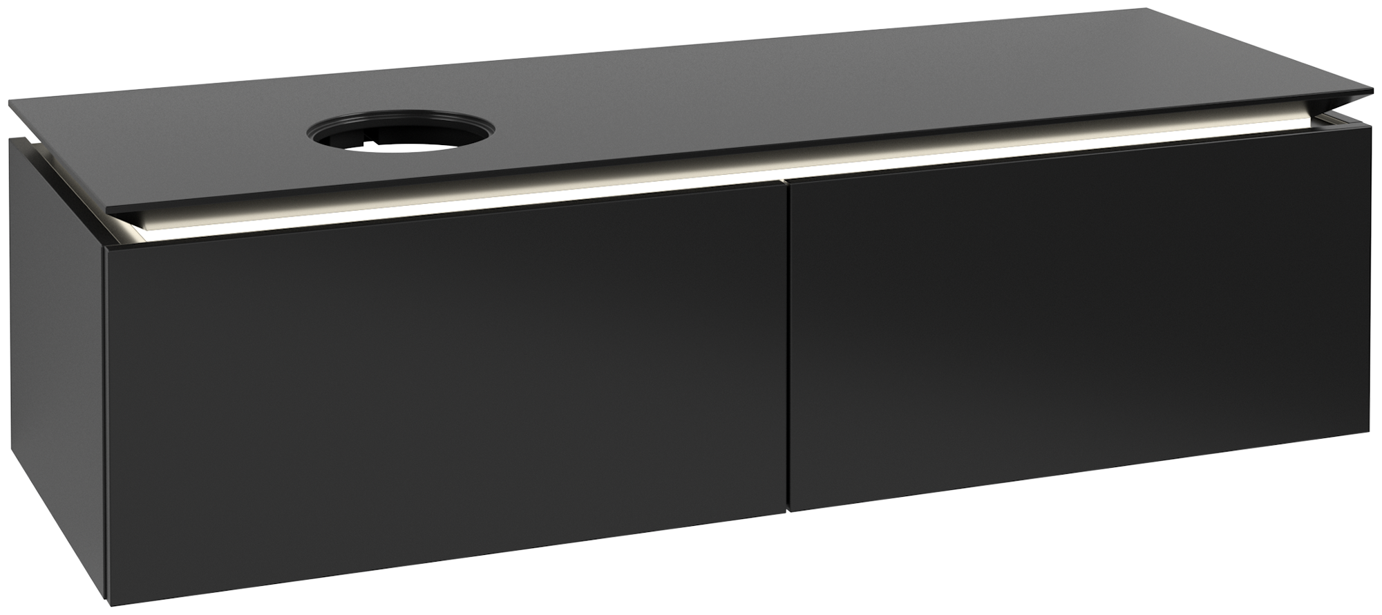 Legato Waschbeckenunterschrank, mit Beleuchtung, 2 Auszüge, 1400x380x500mm, Korpus: Black Matt Lacquer, Front: Black Matt Lacquer