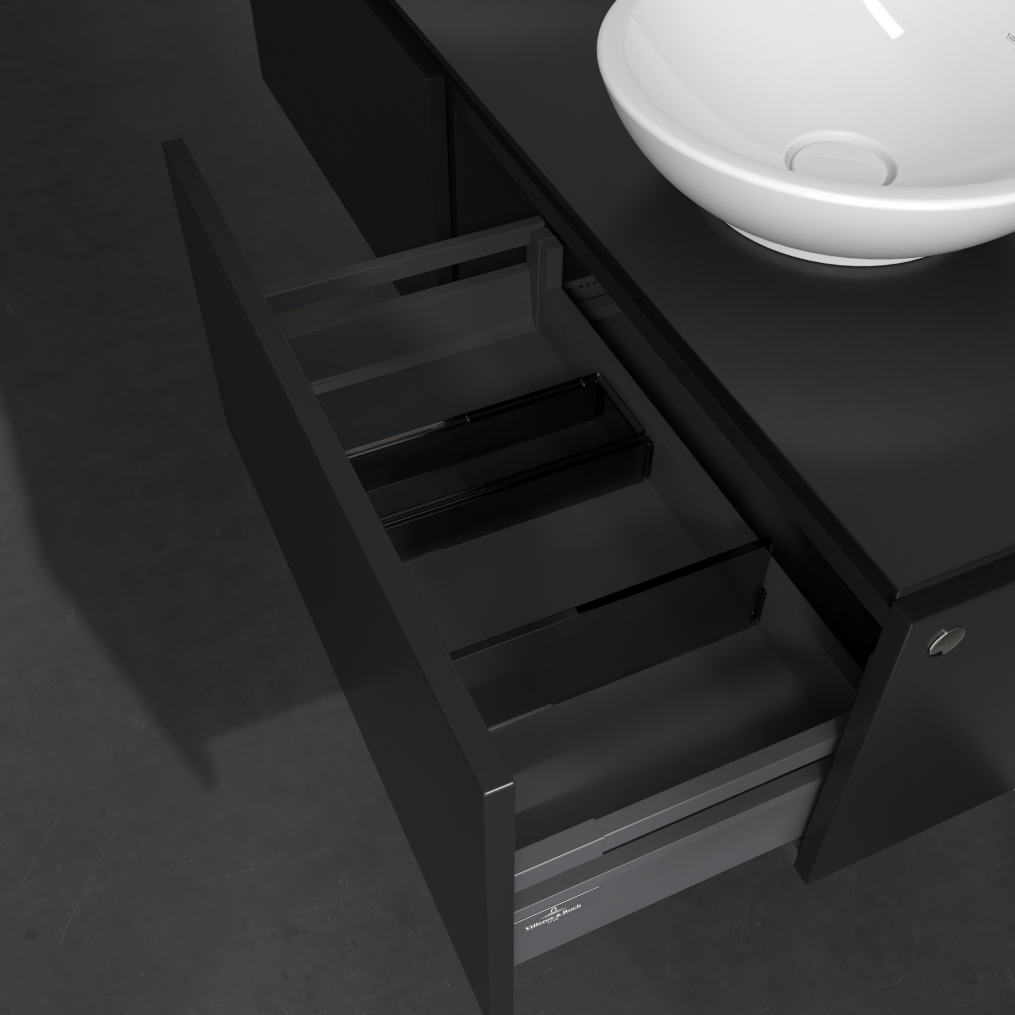 Legato Waschbeckenunterschrank, 2 Auszüge, 1400x380x500mm, Korpus: Black Matt Lacquer, Front: Black Matt Lacquer