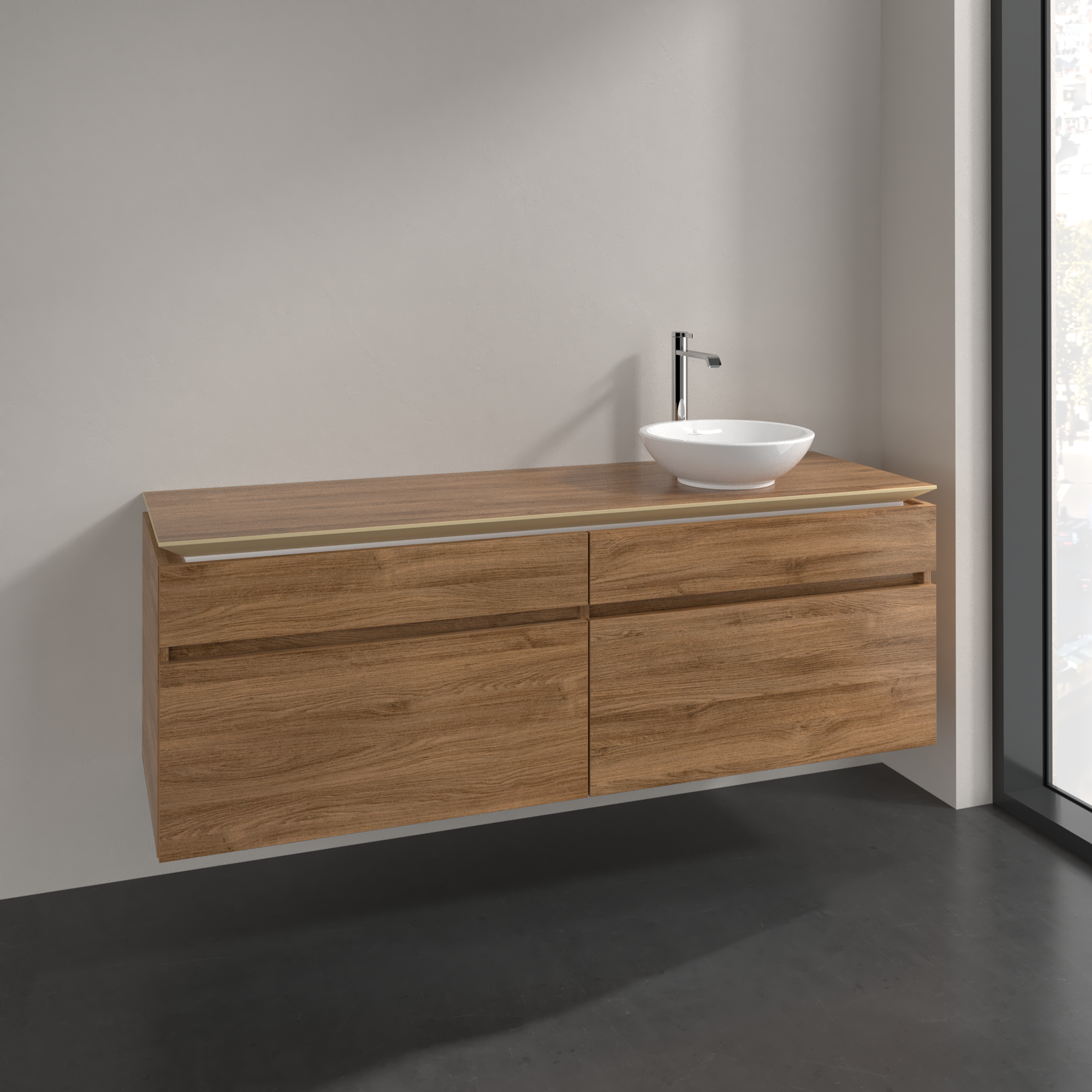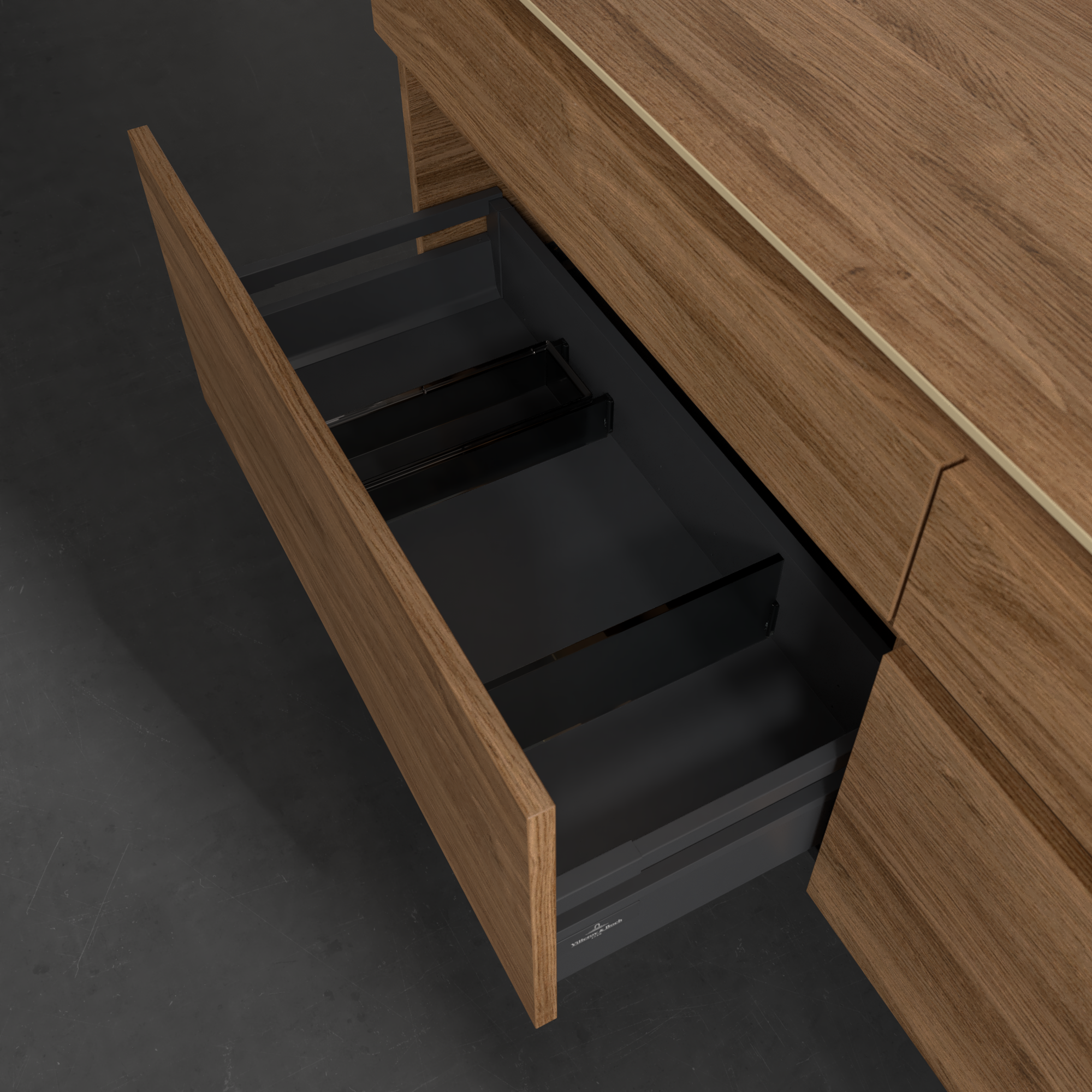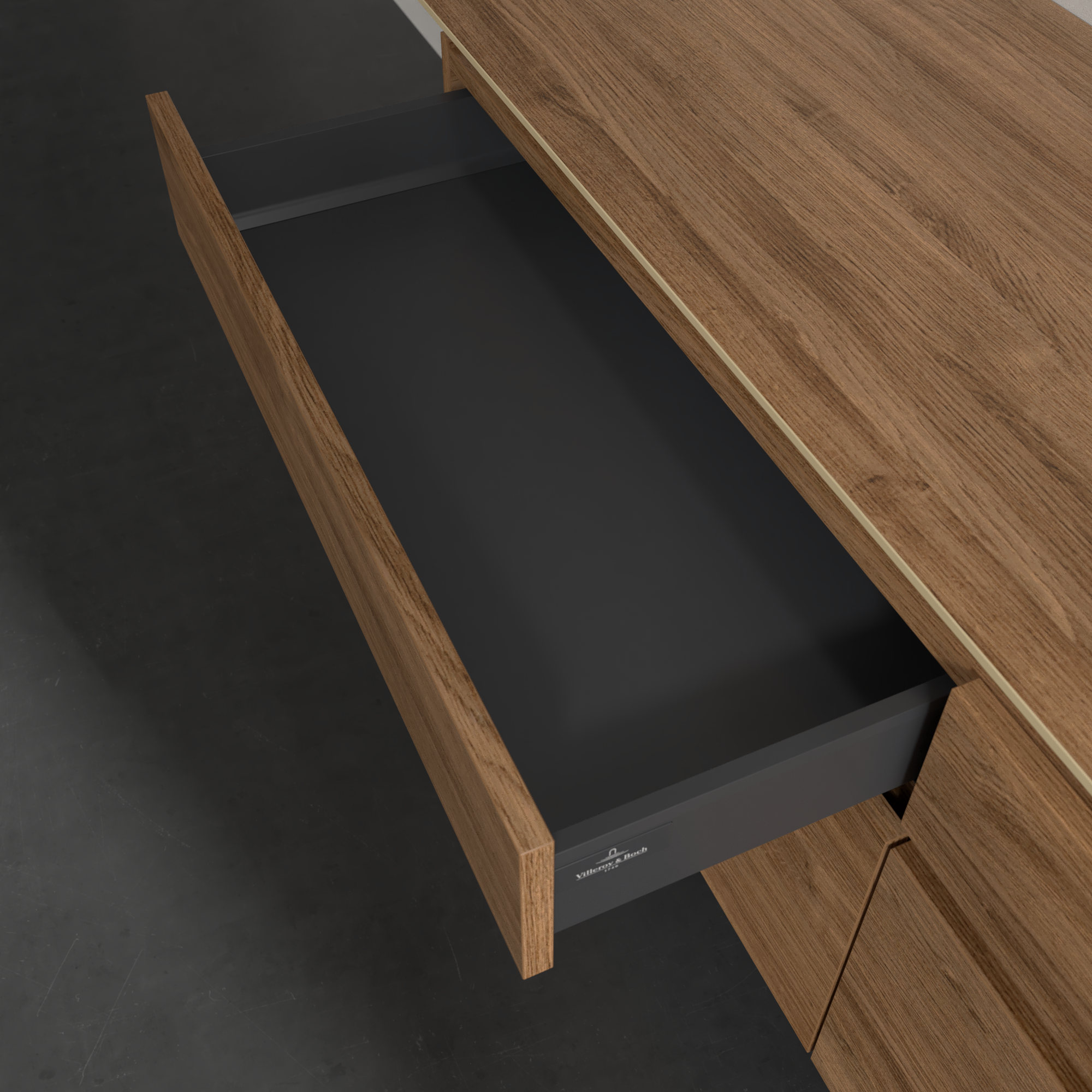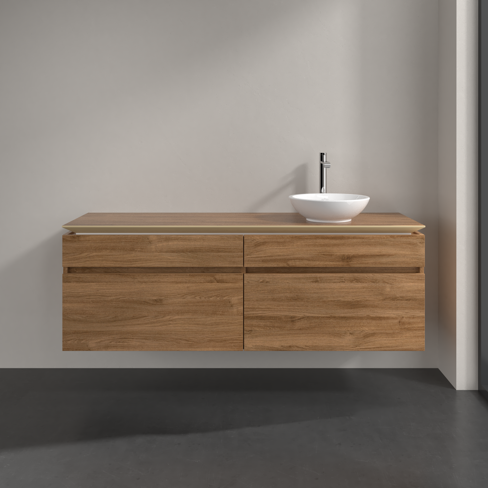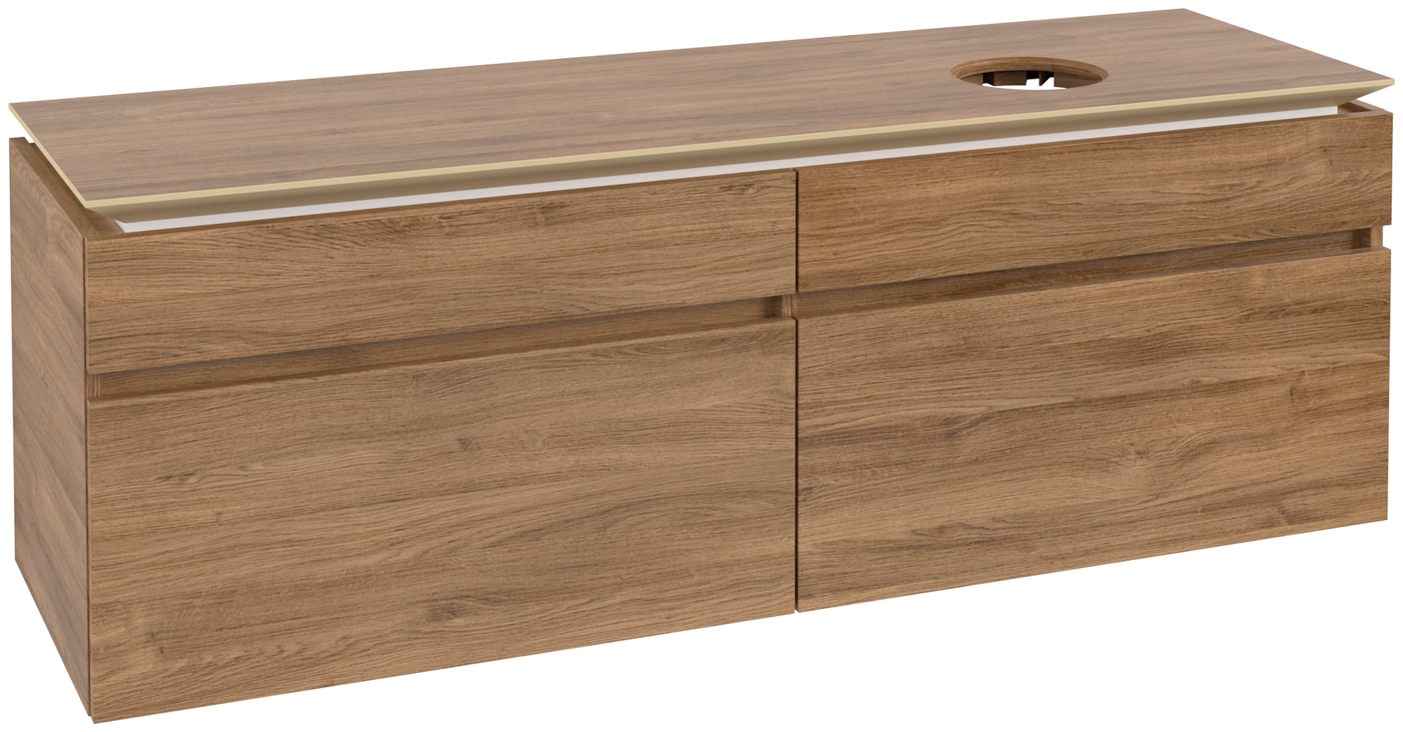Legato Waschbeckenunterschrank, 4 Auszüge, 1600x550x500mm, Korpus: Kansas Oak, Front: Kansas Oak
