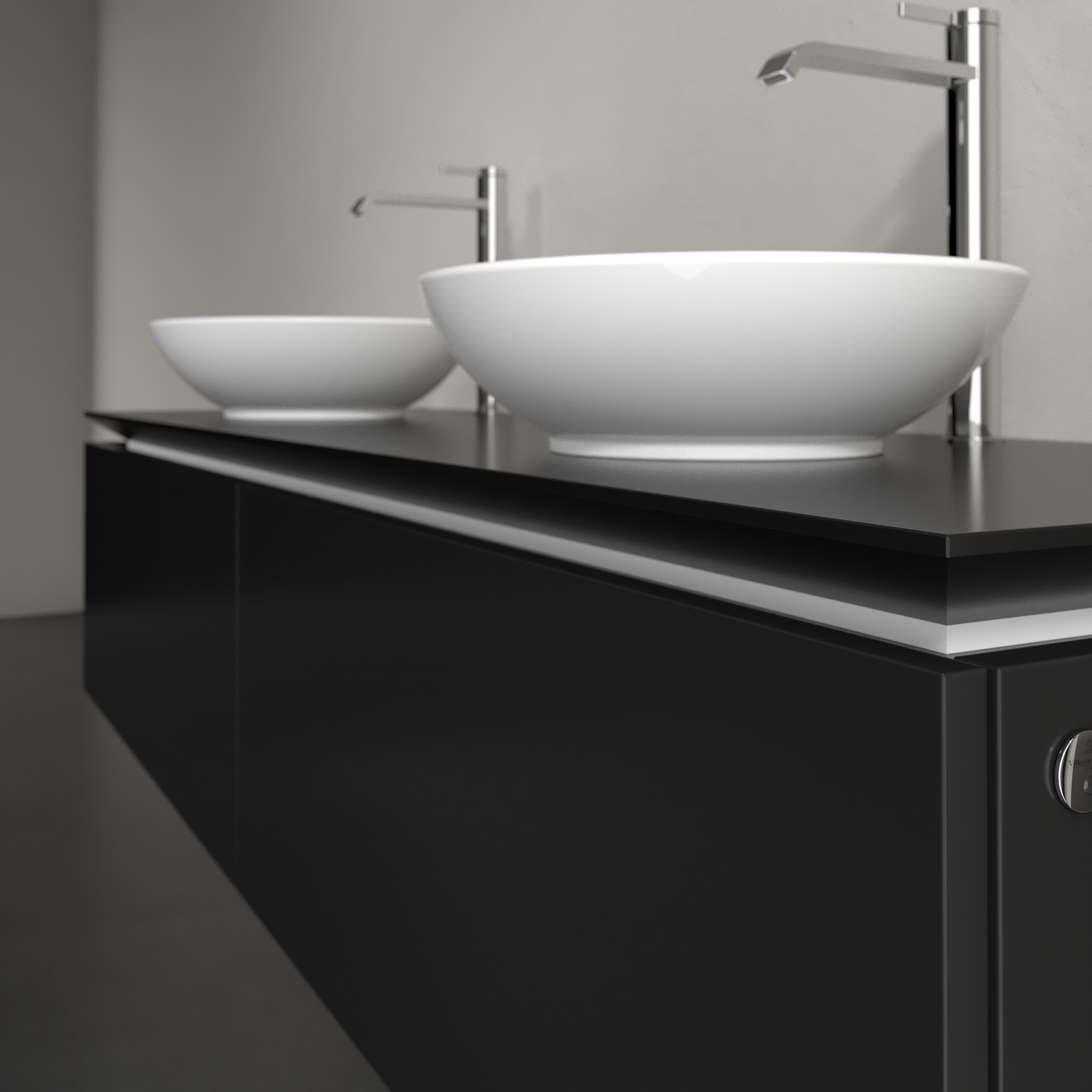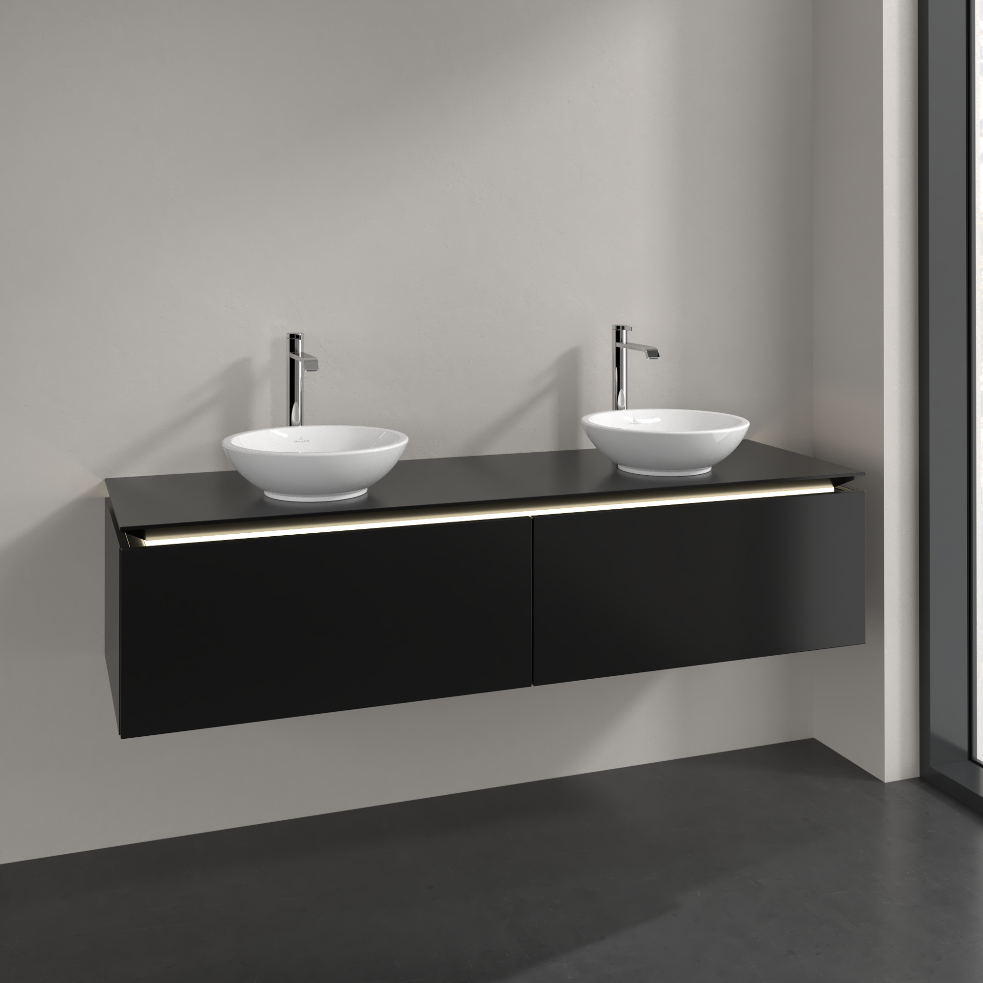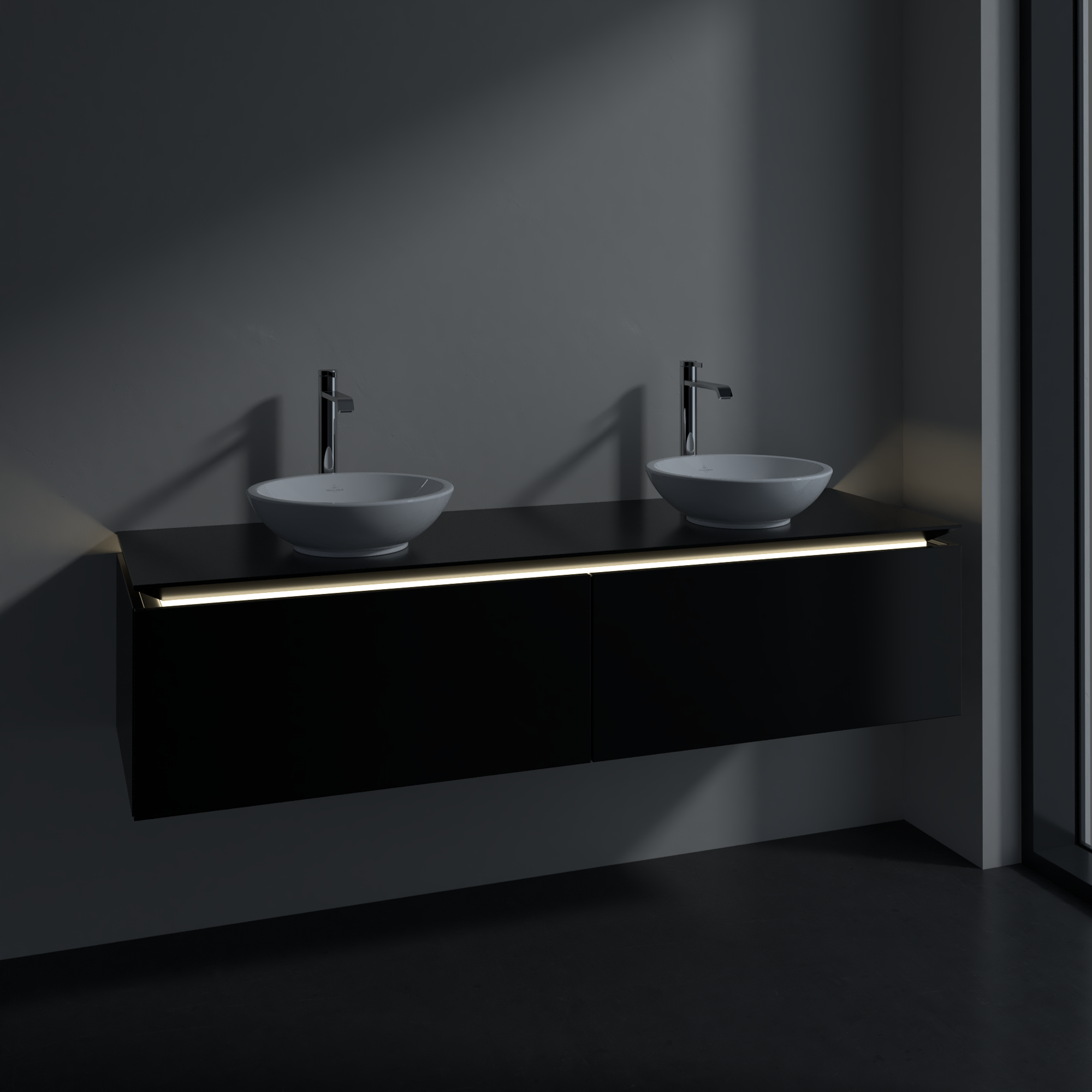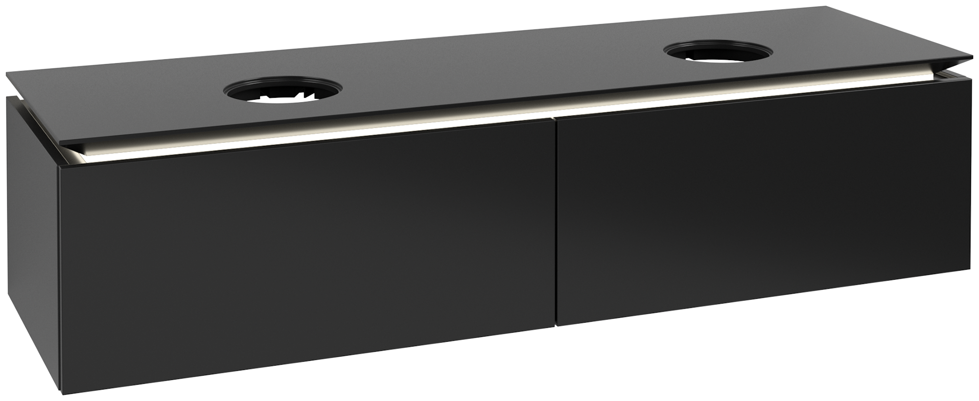 Legato Waschbeckenunterschrank, mit Beleuchtung, 2 Auszüge, 1600x380x500mm, Korpus: Black Matt Lacquer, Front: Black Matt Lacquer
