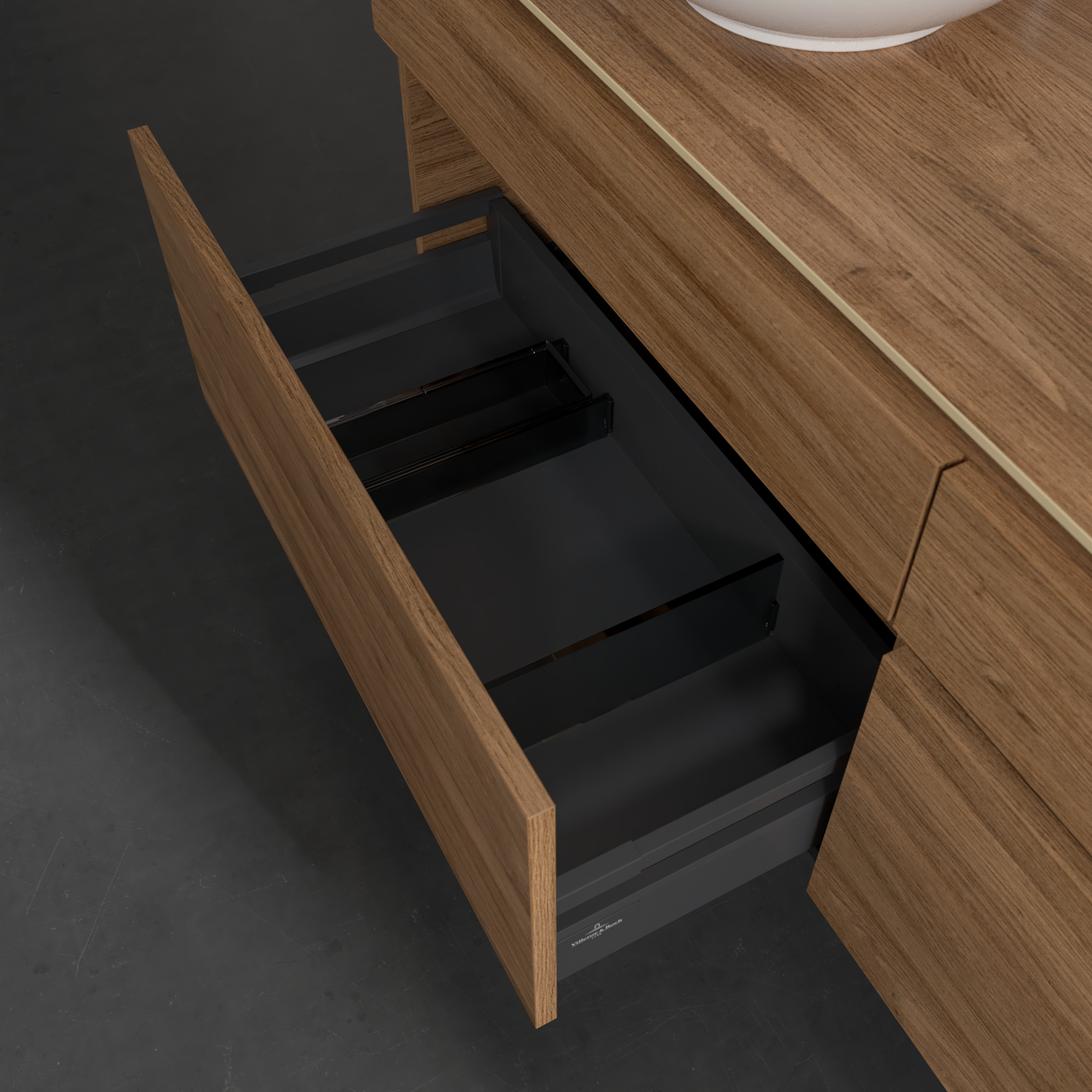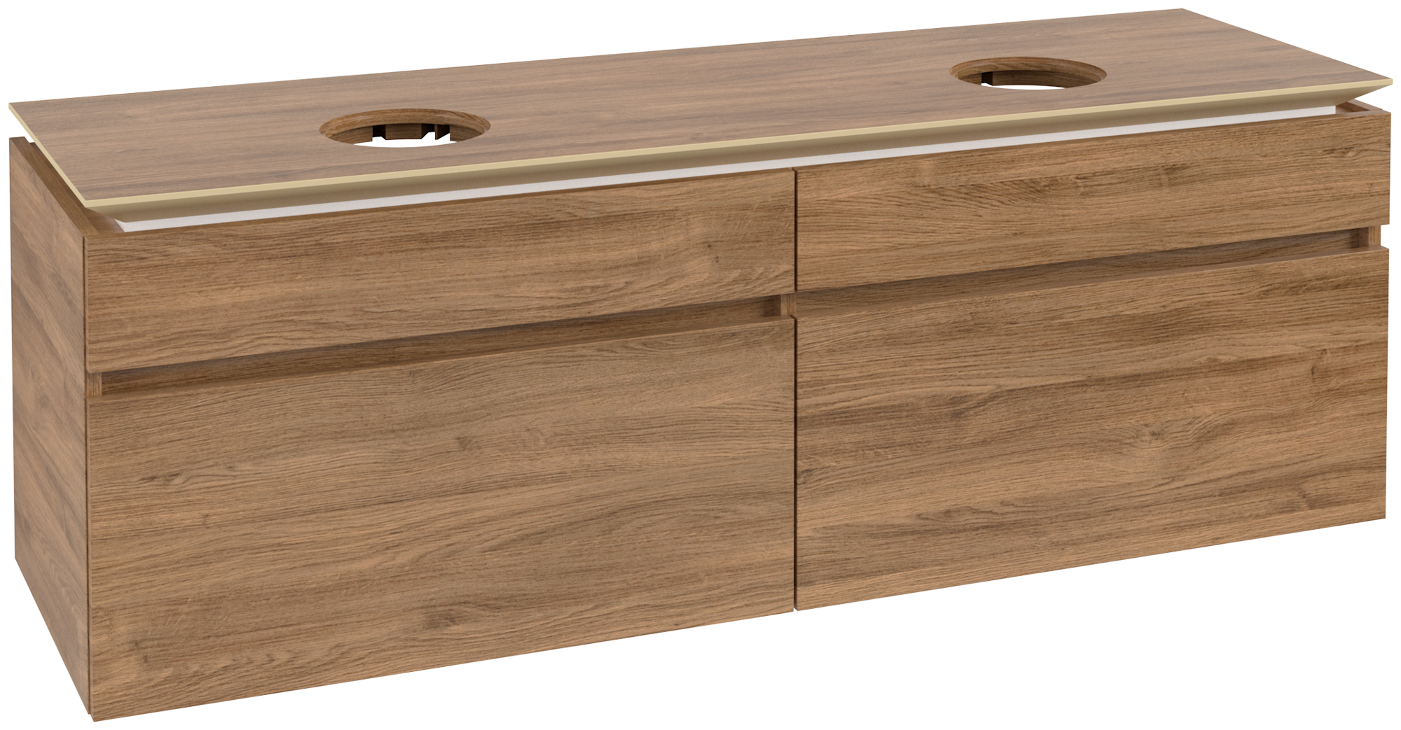 Legato Waschbeckenunterschrank, 4 Auszüge, 1600x550x500mm, Korpus: Kansas Oak, Front: Kansas Oak