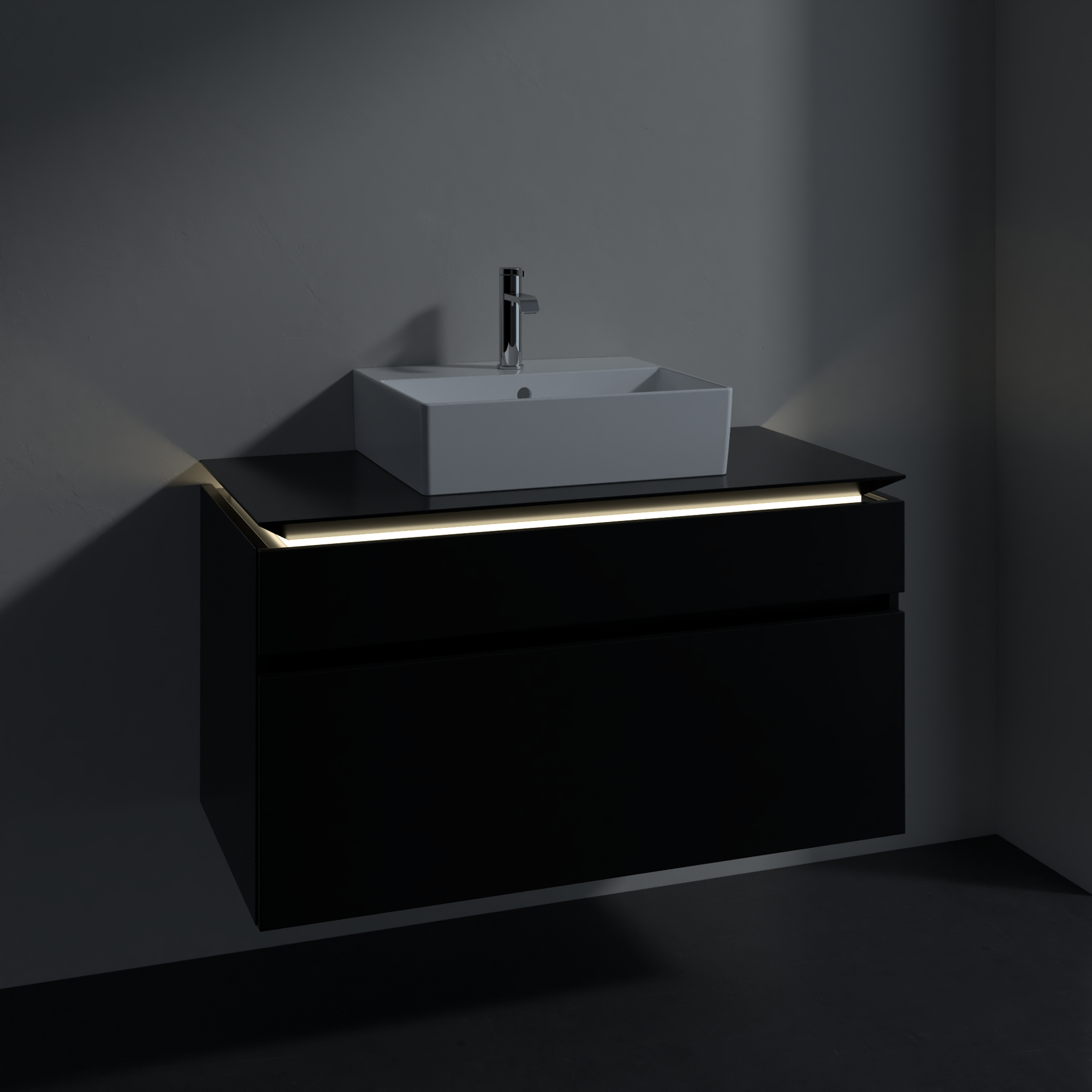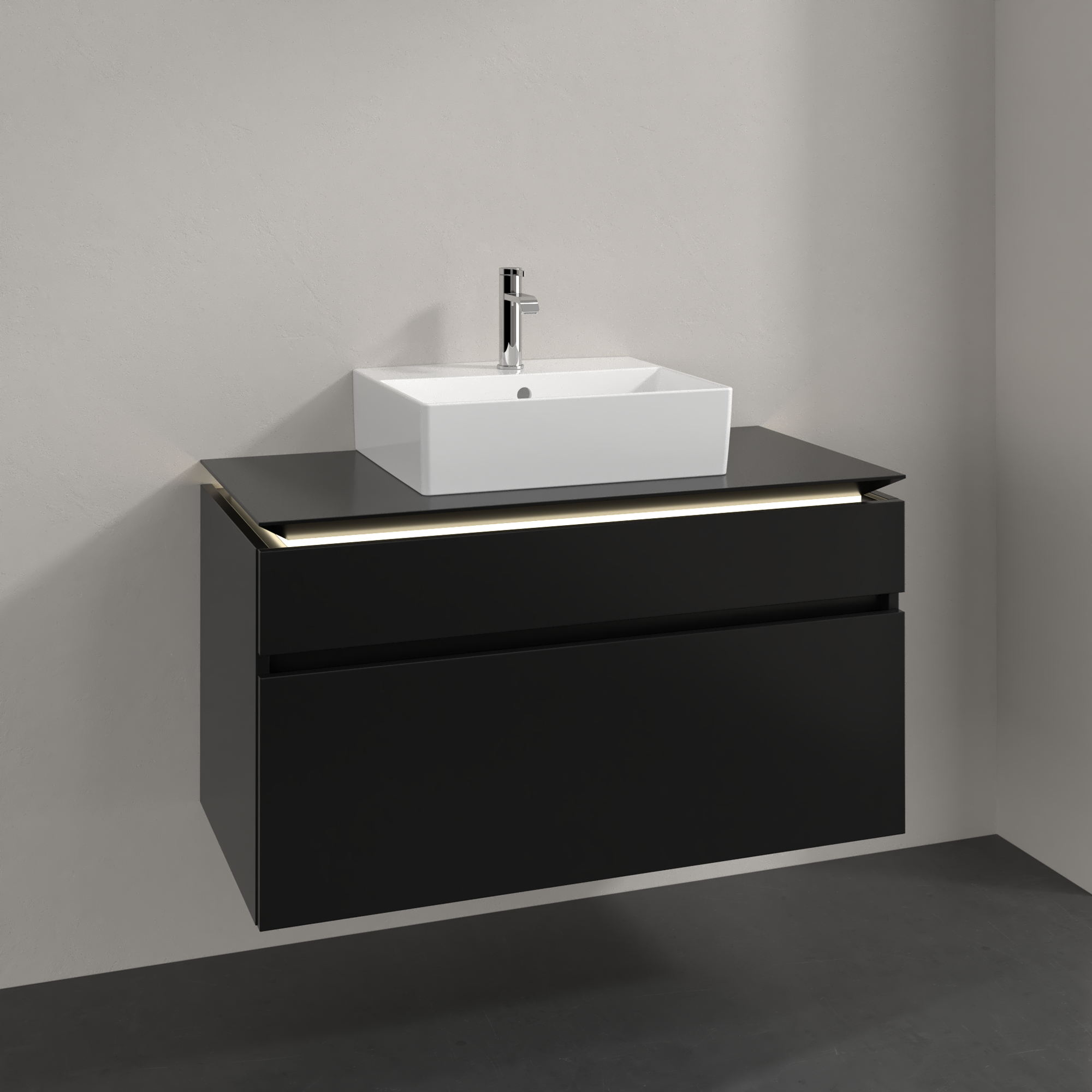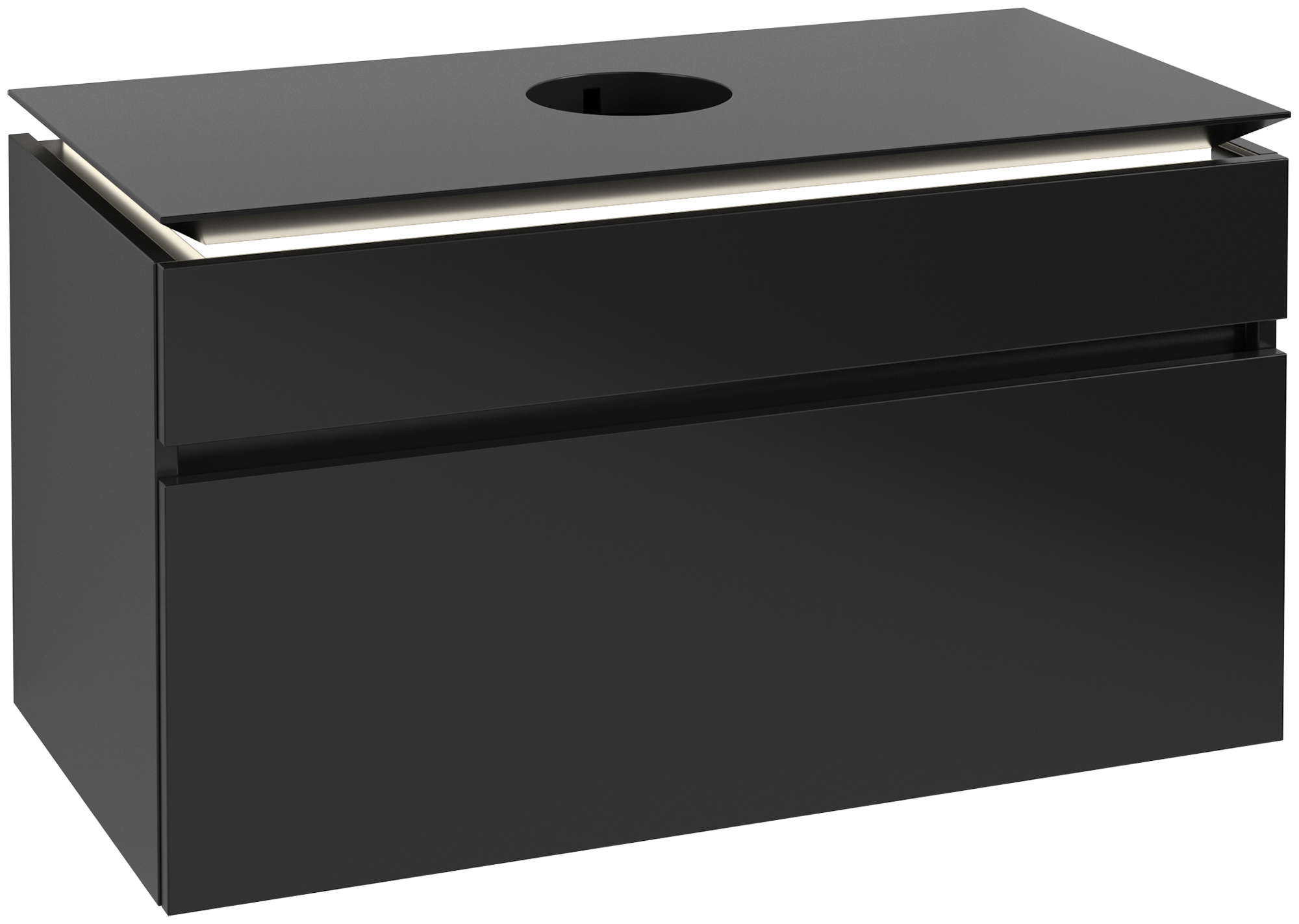 Legato Waschbeckenunterschrank, mit Beleuchtung, 2 Auszüge, 1000x550x500mm, Korpus: Black Matt Lacquer, Front: Black Matt Lacquer