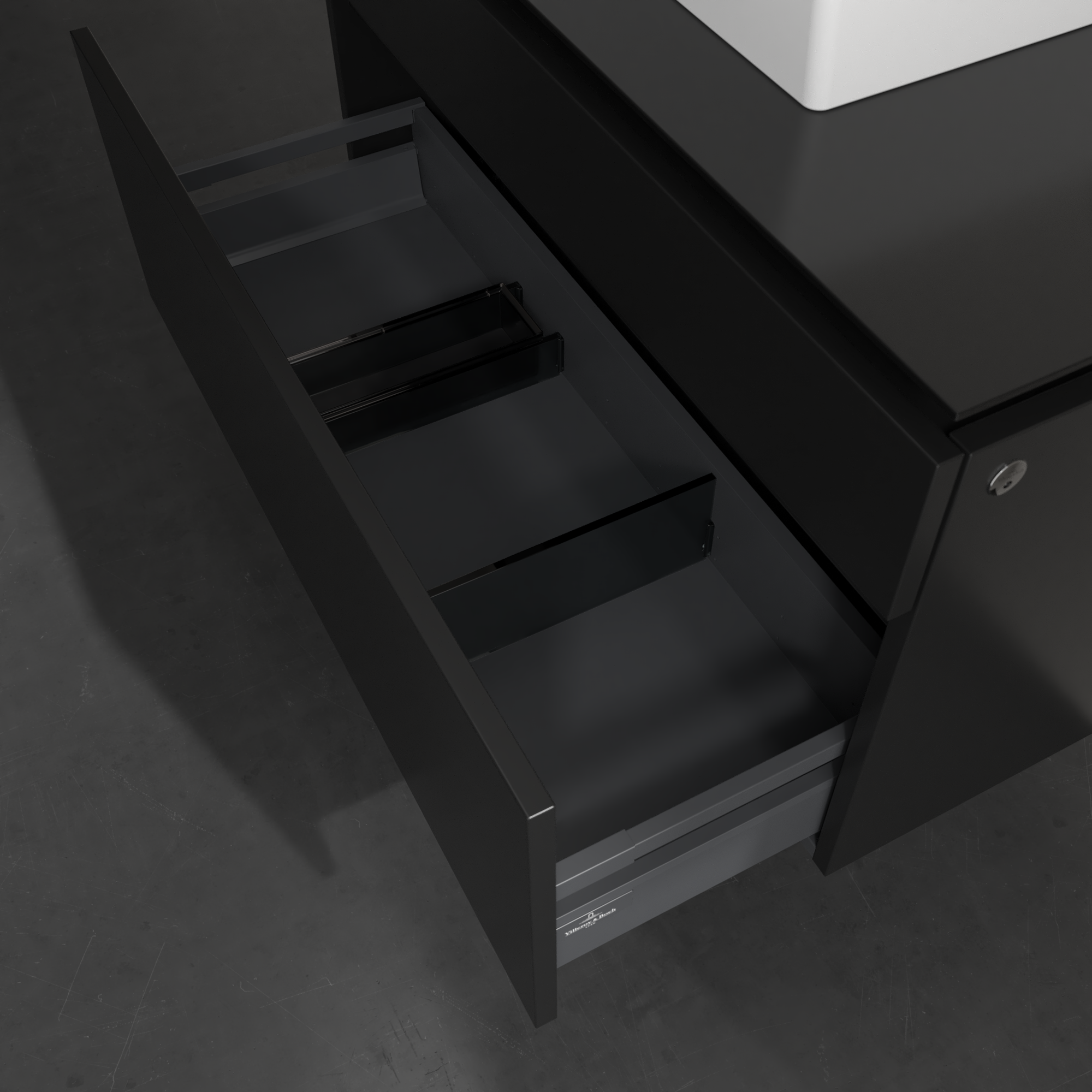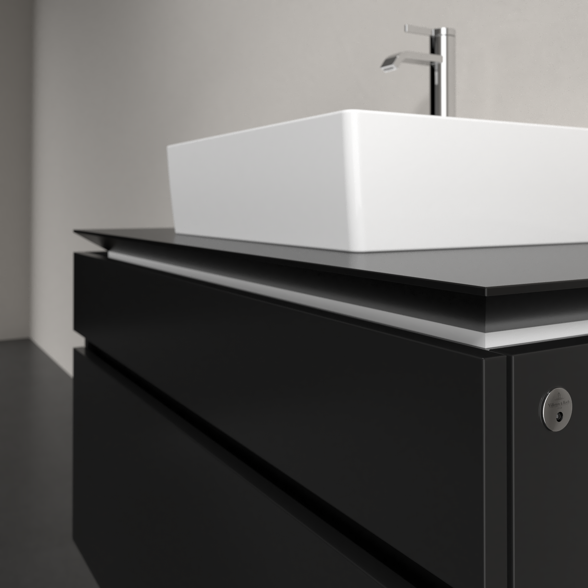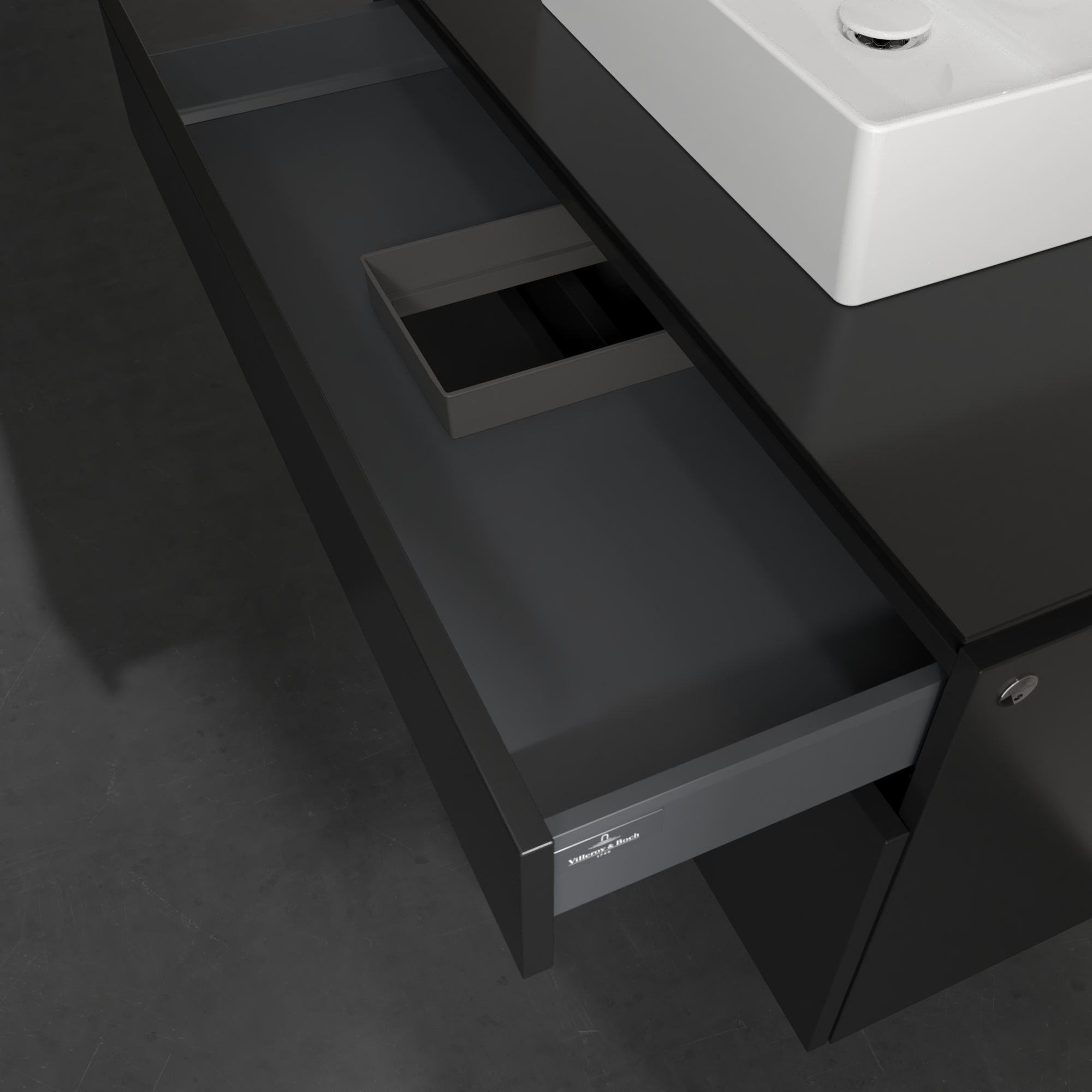 Legato Waschbeckenunterschrank, mit Beleuchtung, 2 Auszüge, 1000x550x500mm, Korpus: Black Matt Lacquer, Front: Black Matt Lacquer