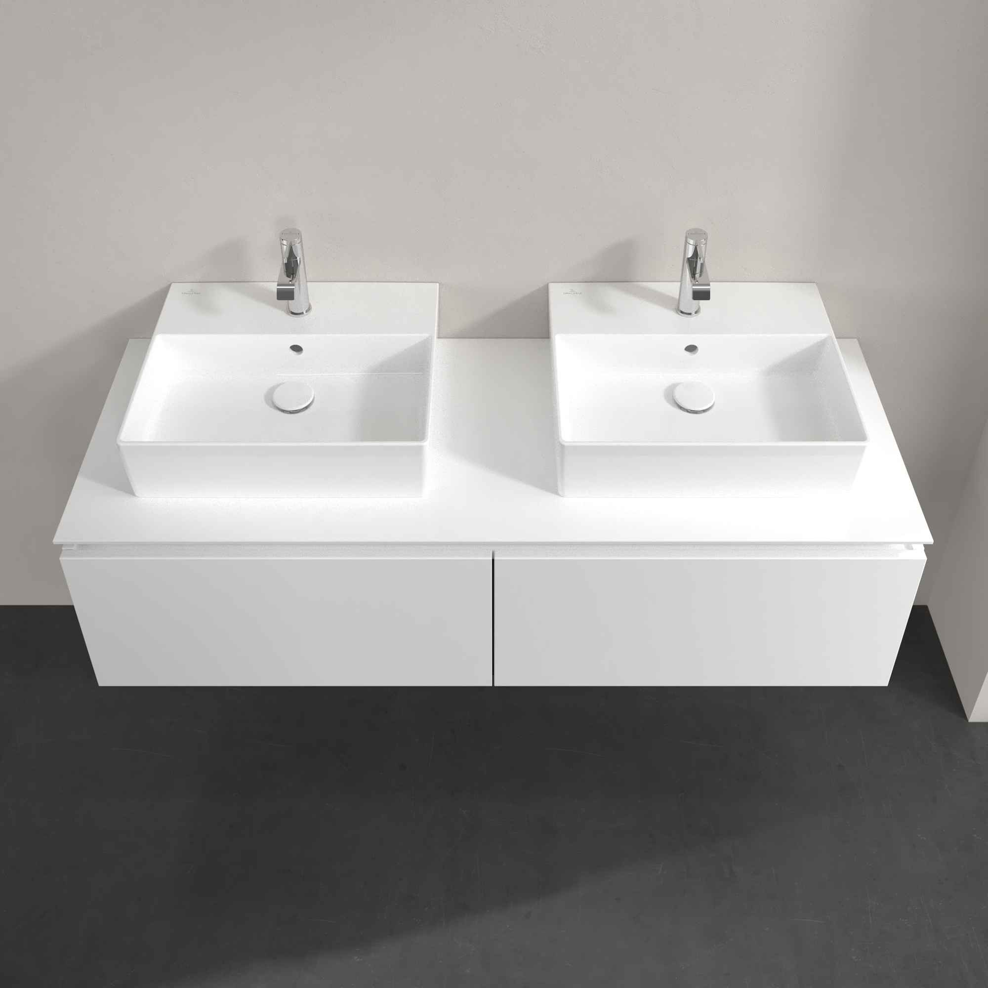 Legato Waschbeckenunterschrank, 2 Auszüge, 1400x380x500mm, Korpus: Glossy White, Front: Glossy White