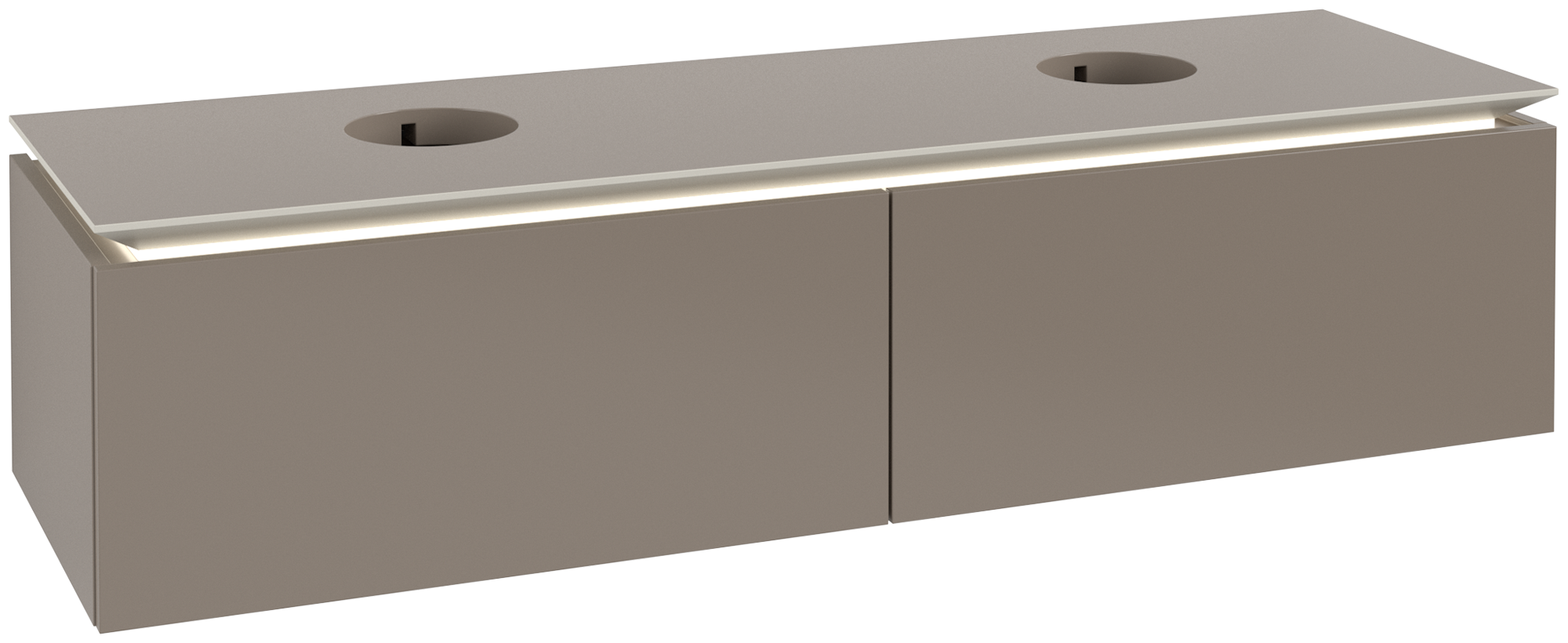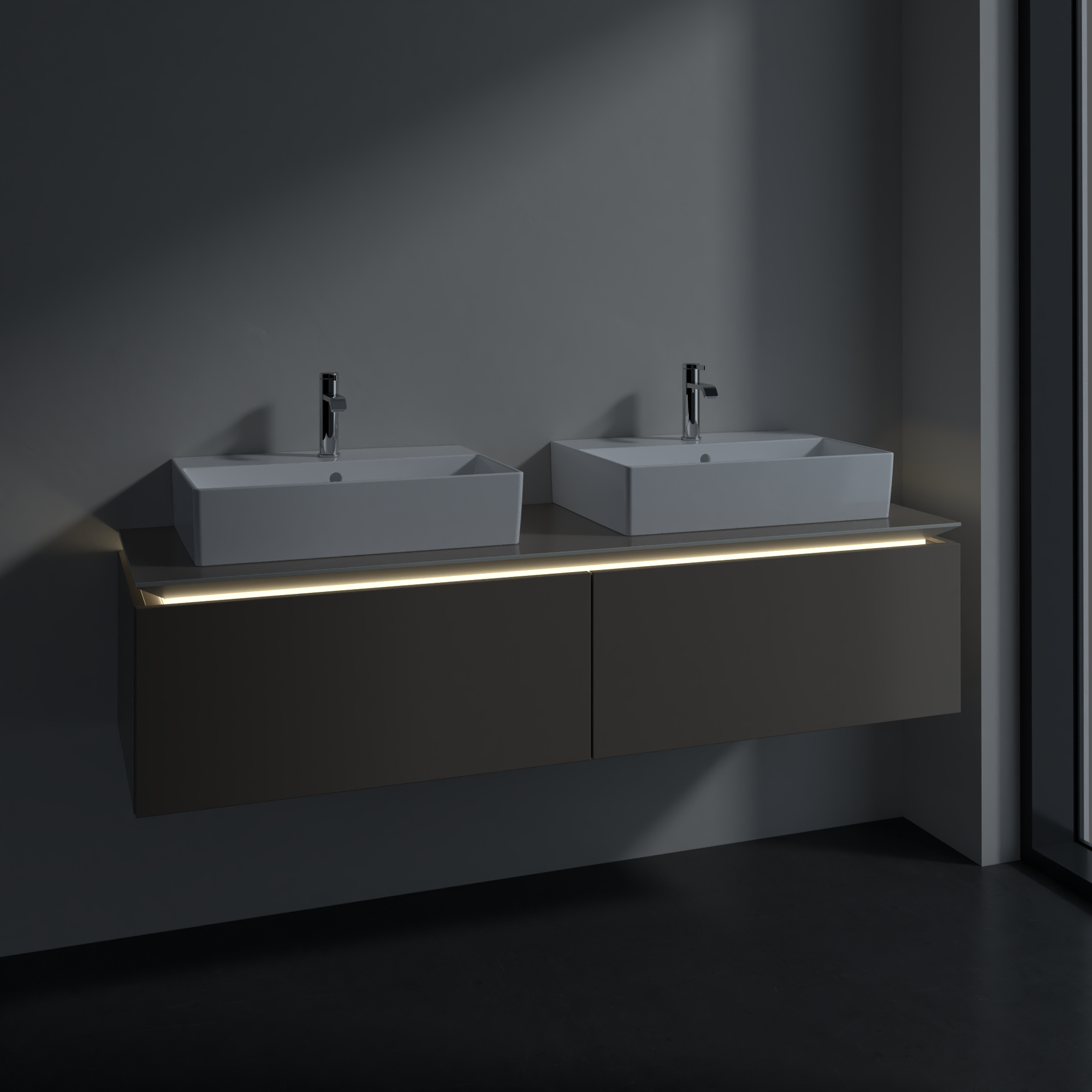 Legato Waschbeckenunterschrank, mit Beleuchtung, 2 Auszüge, 1600x380x500mm, Korpus: Truffle Grey, Front: Truffle Grey