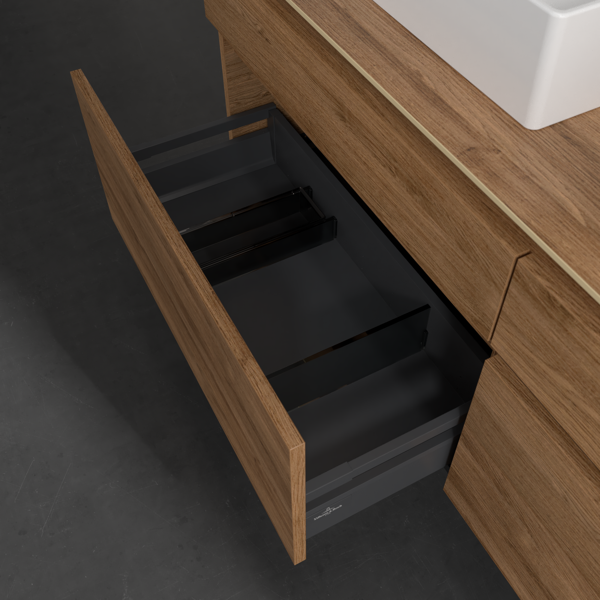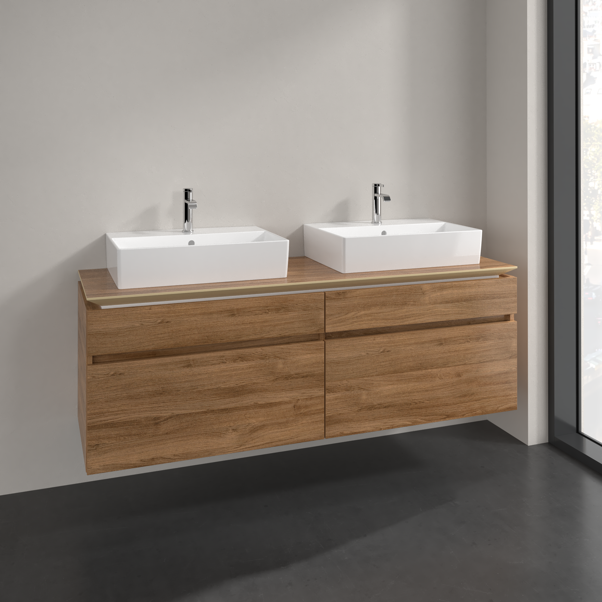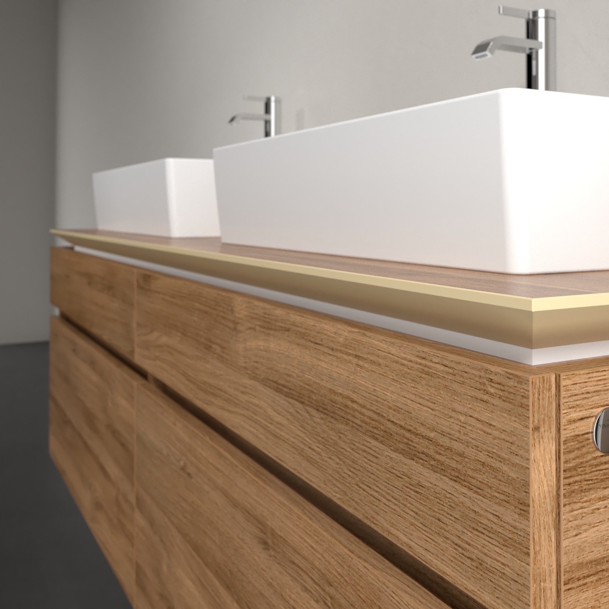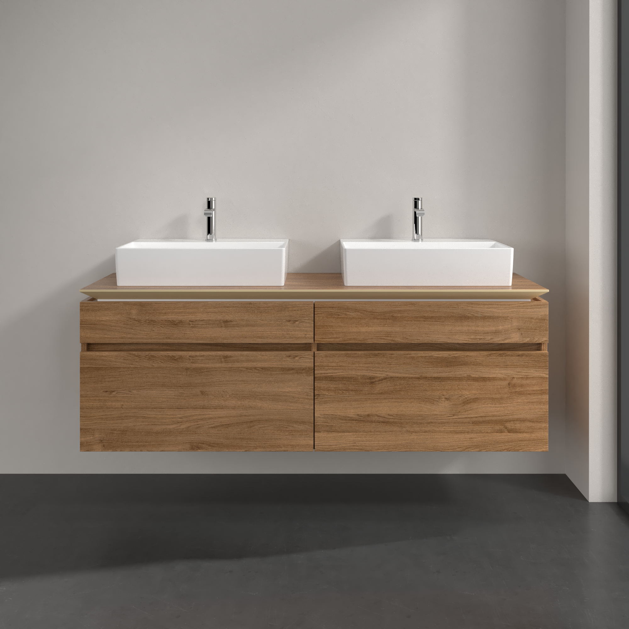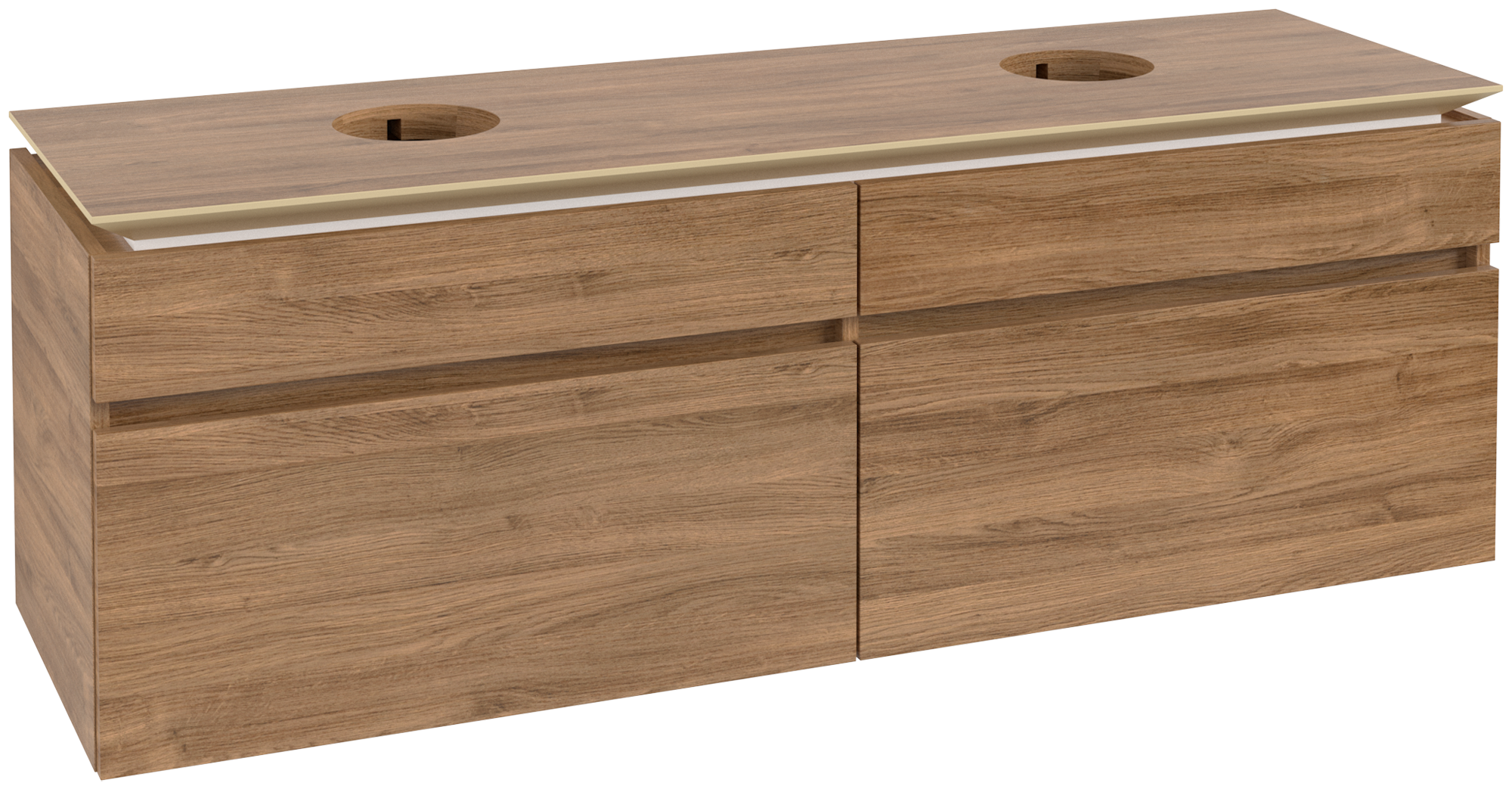 Legato Waschbeckenunterschrank, 4 Auszüge, 1600x550x500mm, Korpus: Kansas Oak, Front: Kansas Oak