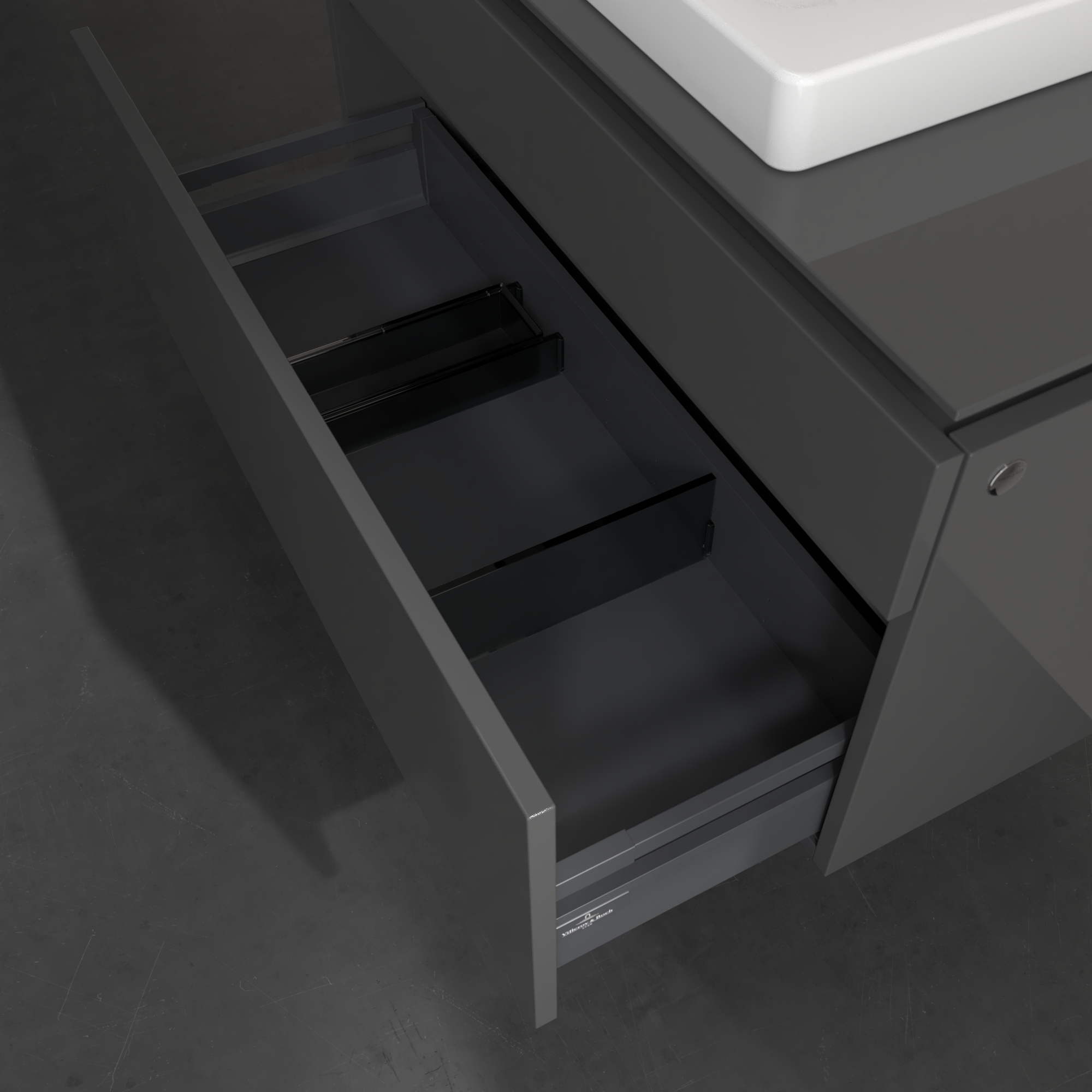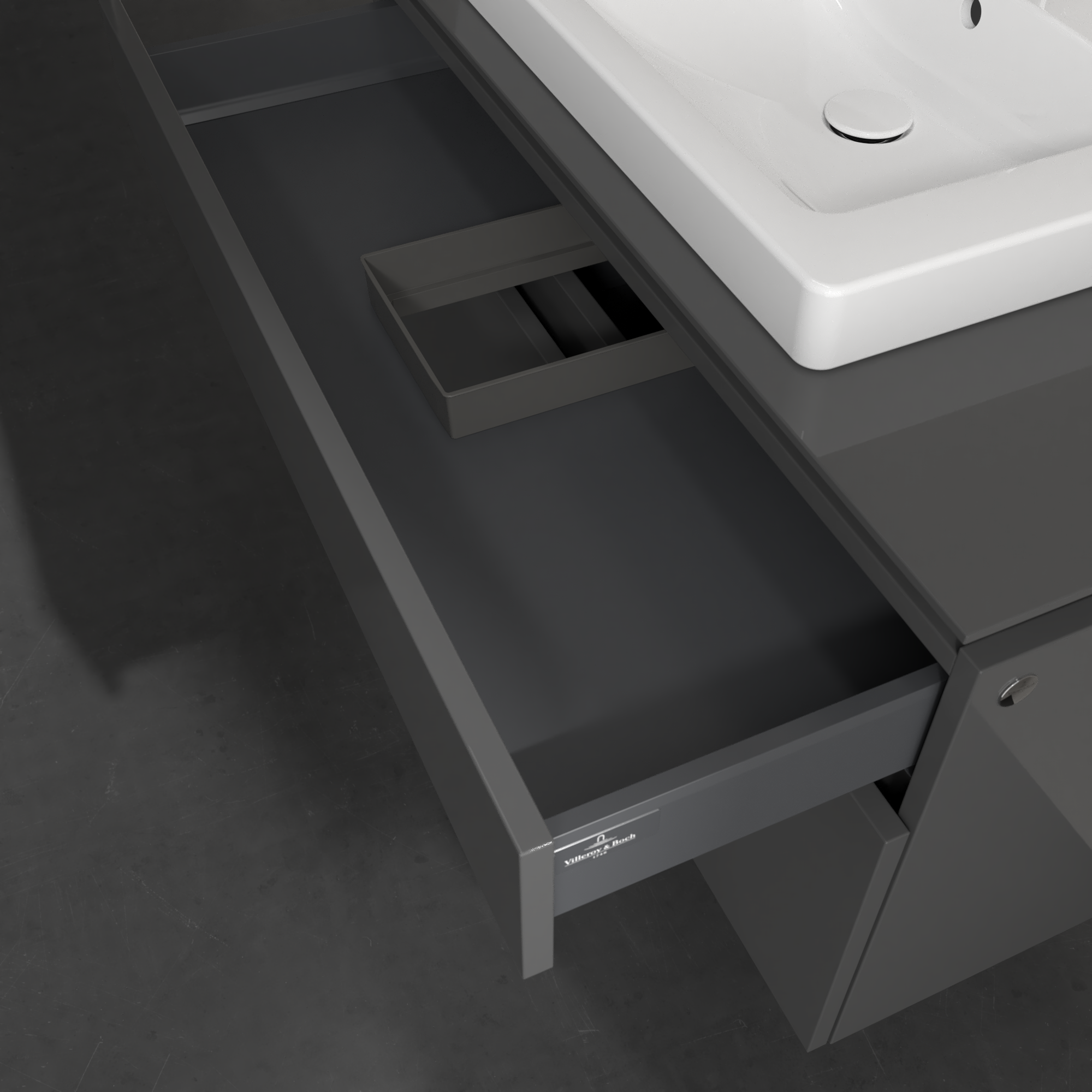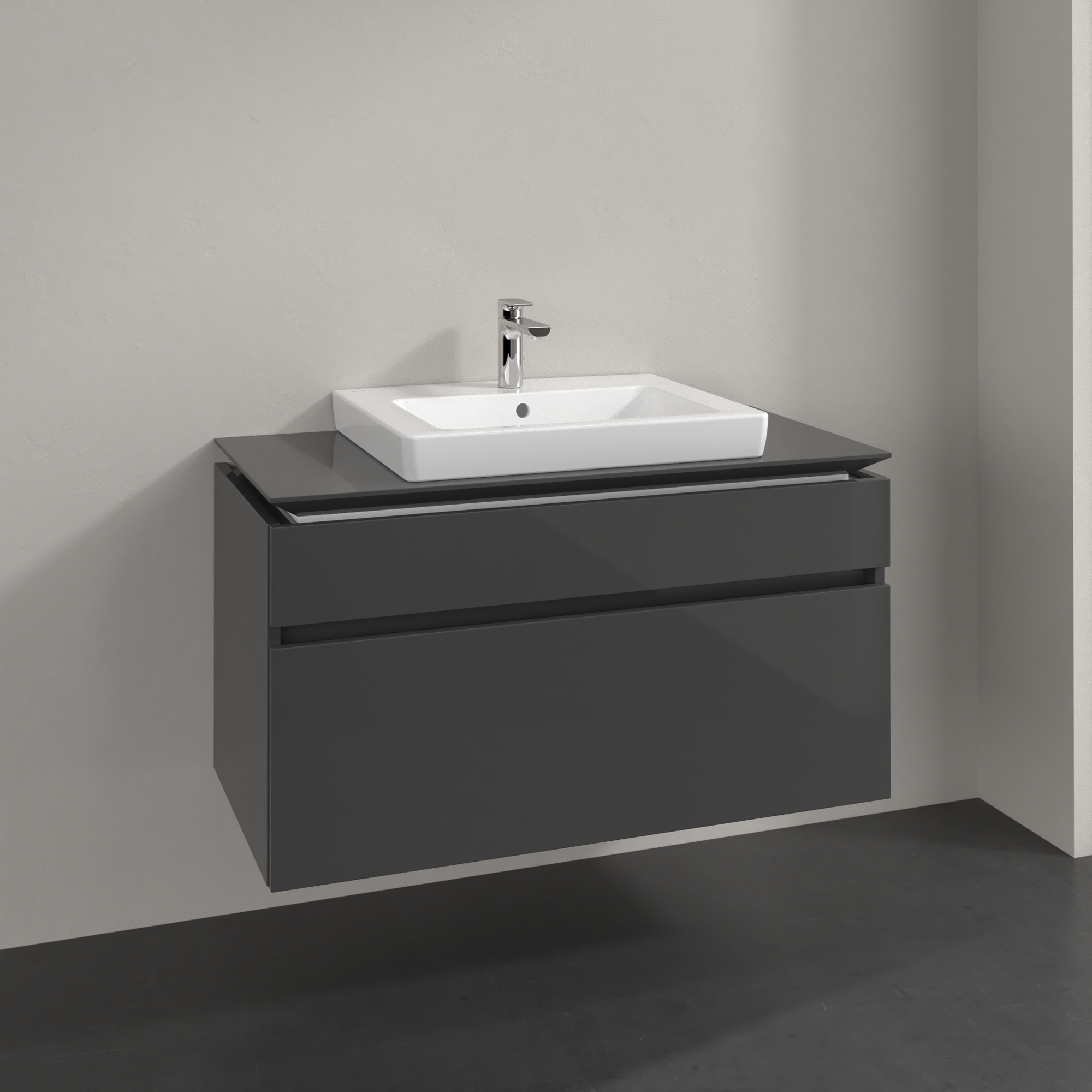Legato Waschbeckenunterschrank, 2 Auszüge, 1000x550x500mm, Korpus: Glossy Grey, Front: Glossy Grey