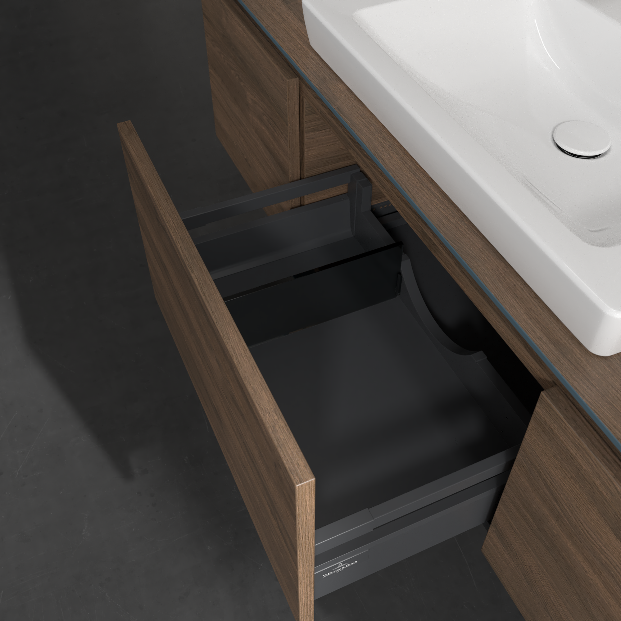 Legato Waschbeckenunterschrank, mit Beleuchtung, 3 Auszüge, 1200x380x500mm, Korpus: Arizona Oak, Front: Arizona Oak