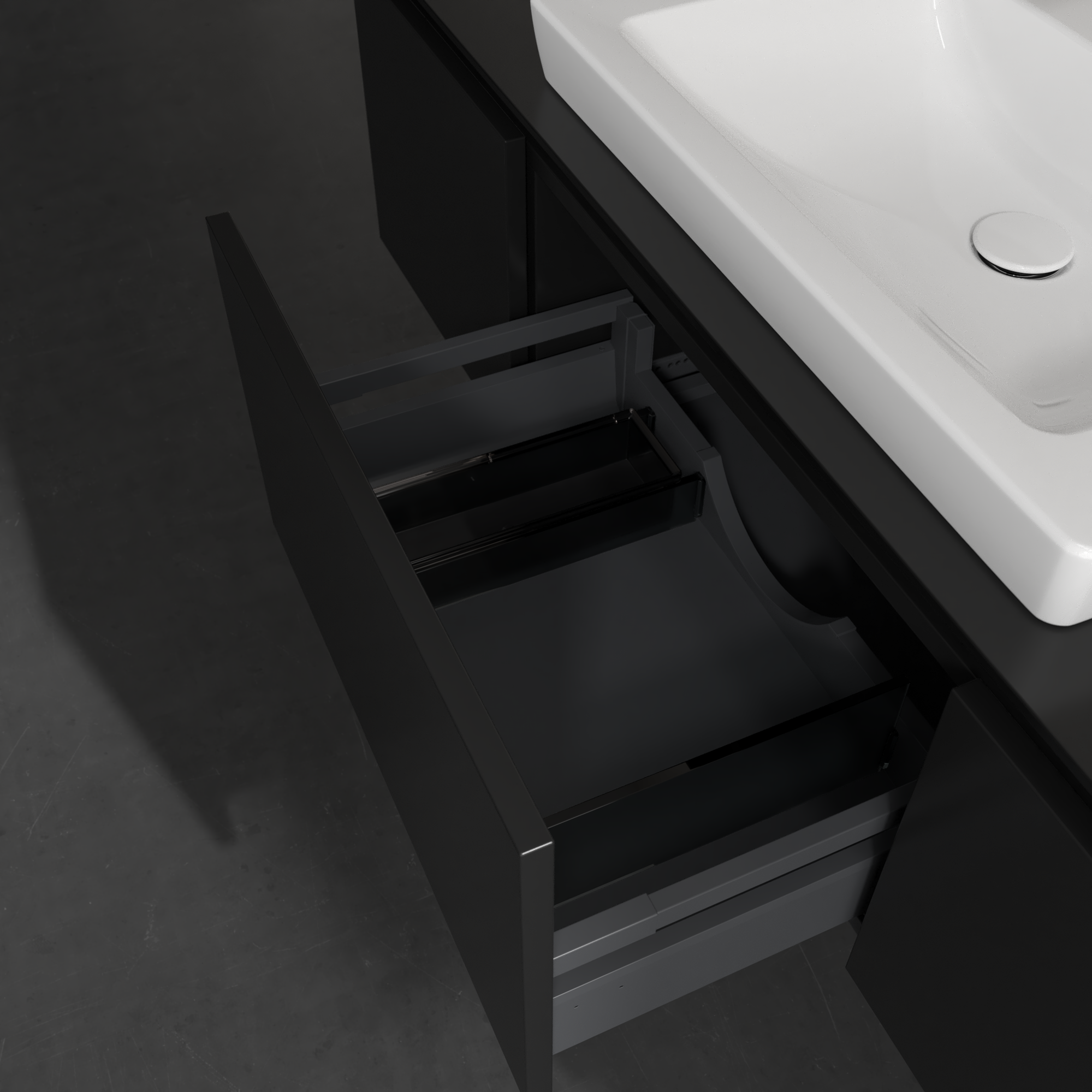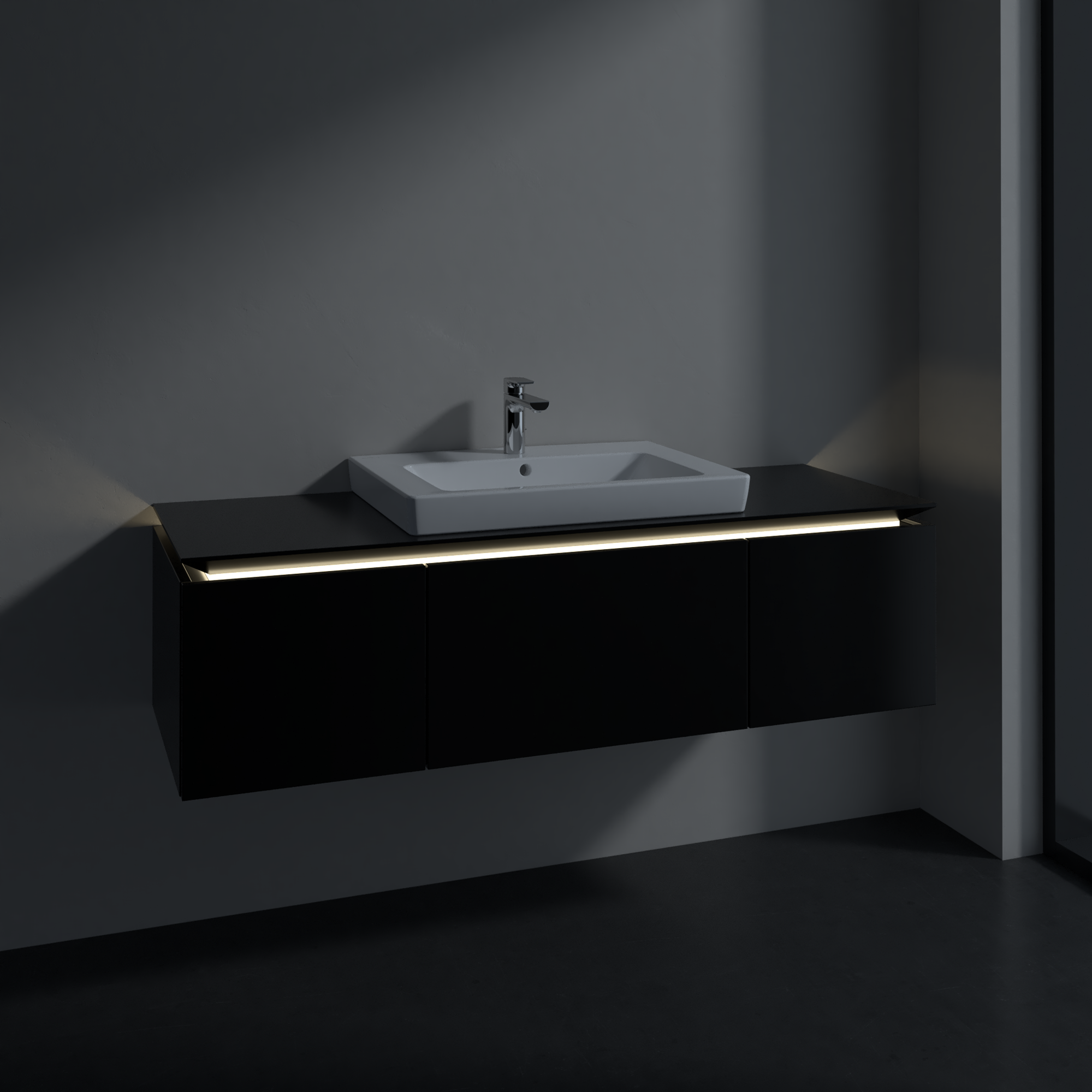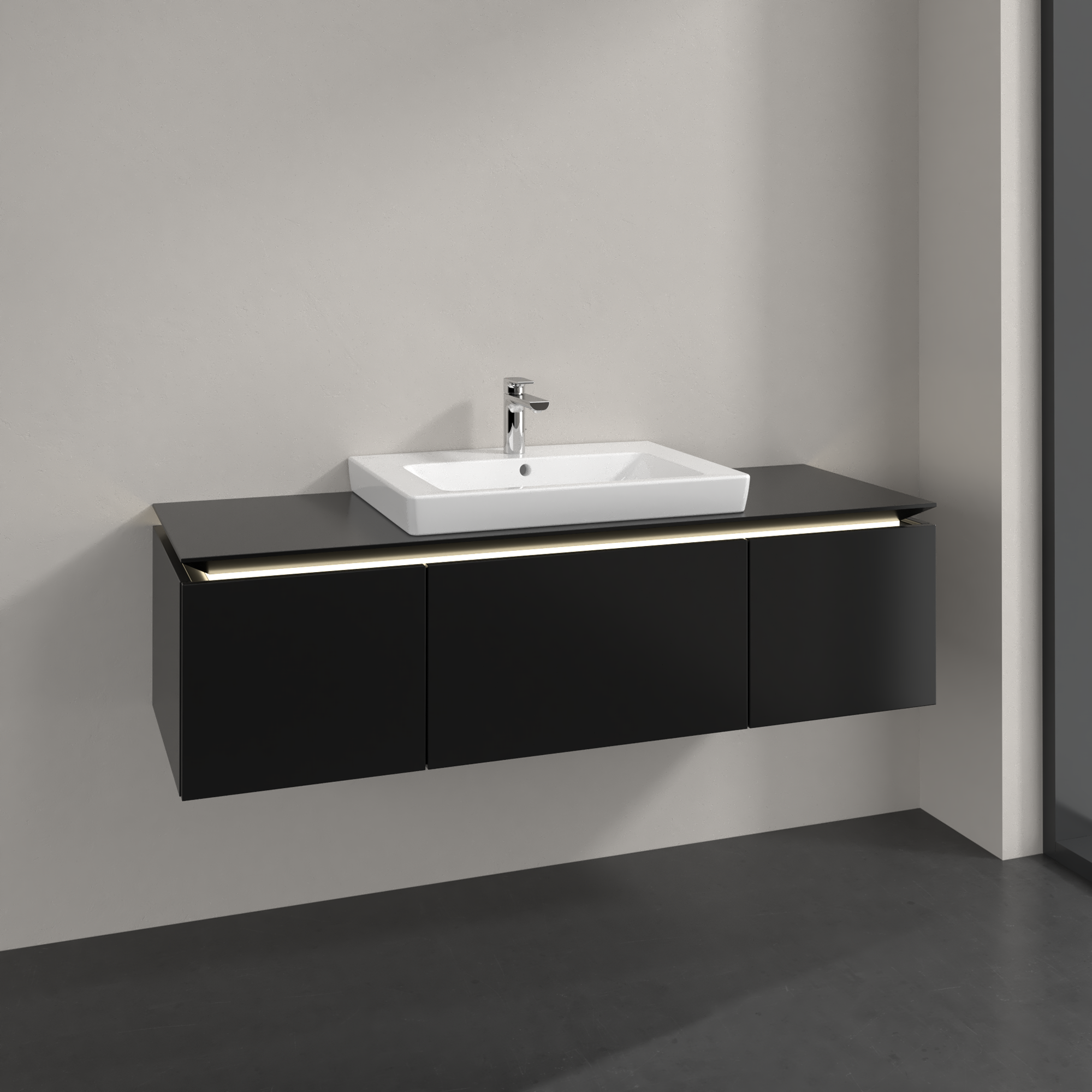 Legato Waschbeckenunterschrank, mit Beleuchtung, 3 Auszüge, 1400x380x500mm, Korpus: Black Matt Lacquer, Front: Black Matt Lacquer