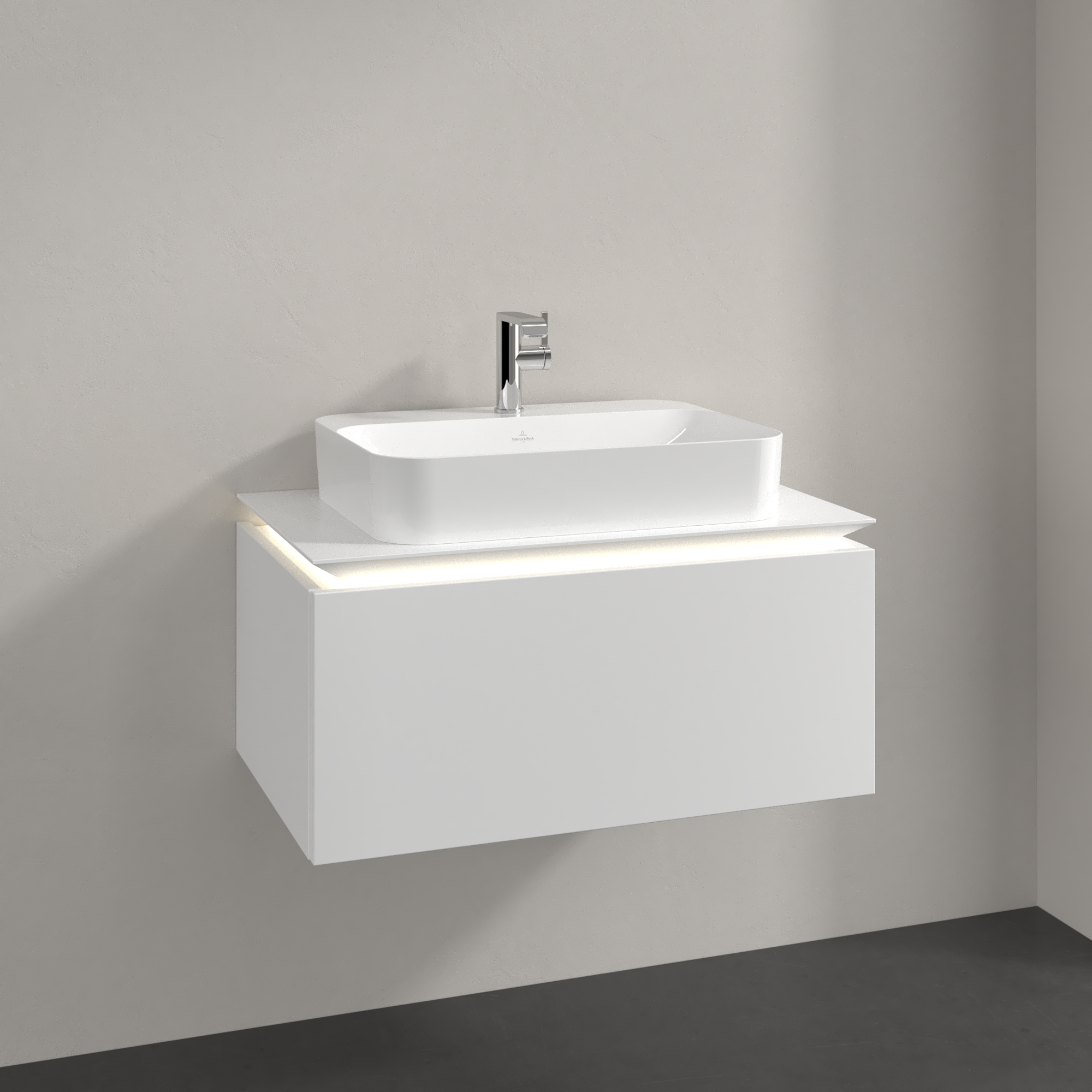 Legato Waschbeckenunterschrank, mit Beleuchtung, 1 Auszug, 800x380x500mm, Korpus: White Matt, Front: White Matt