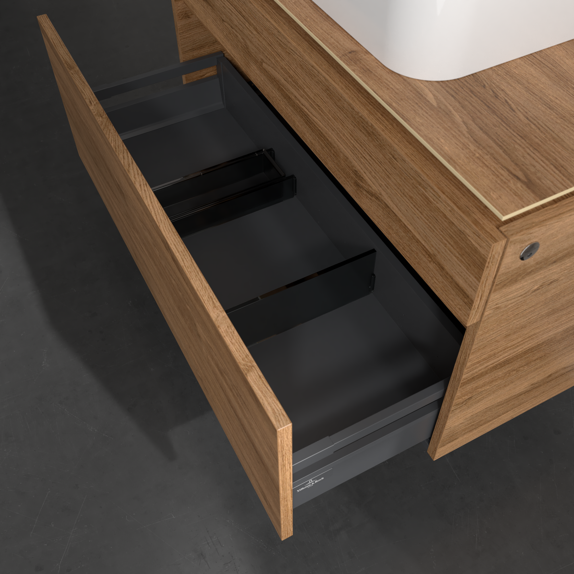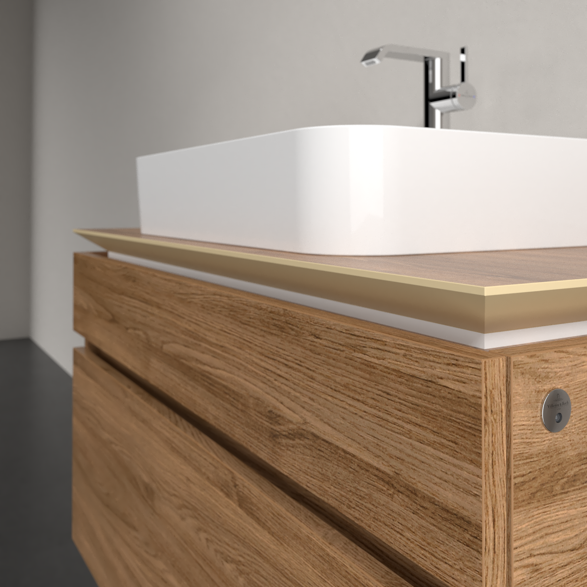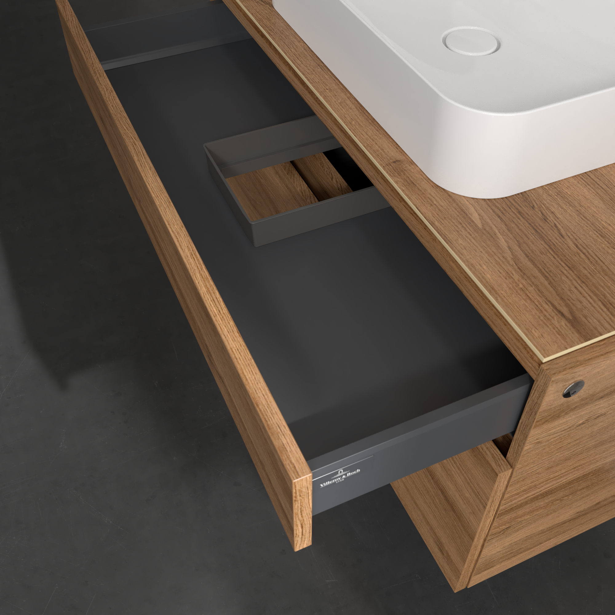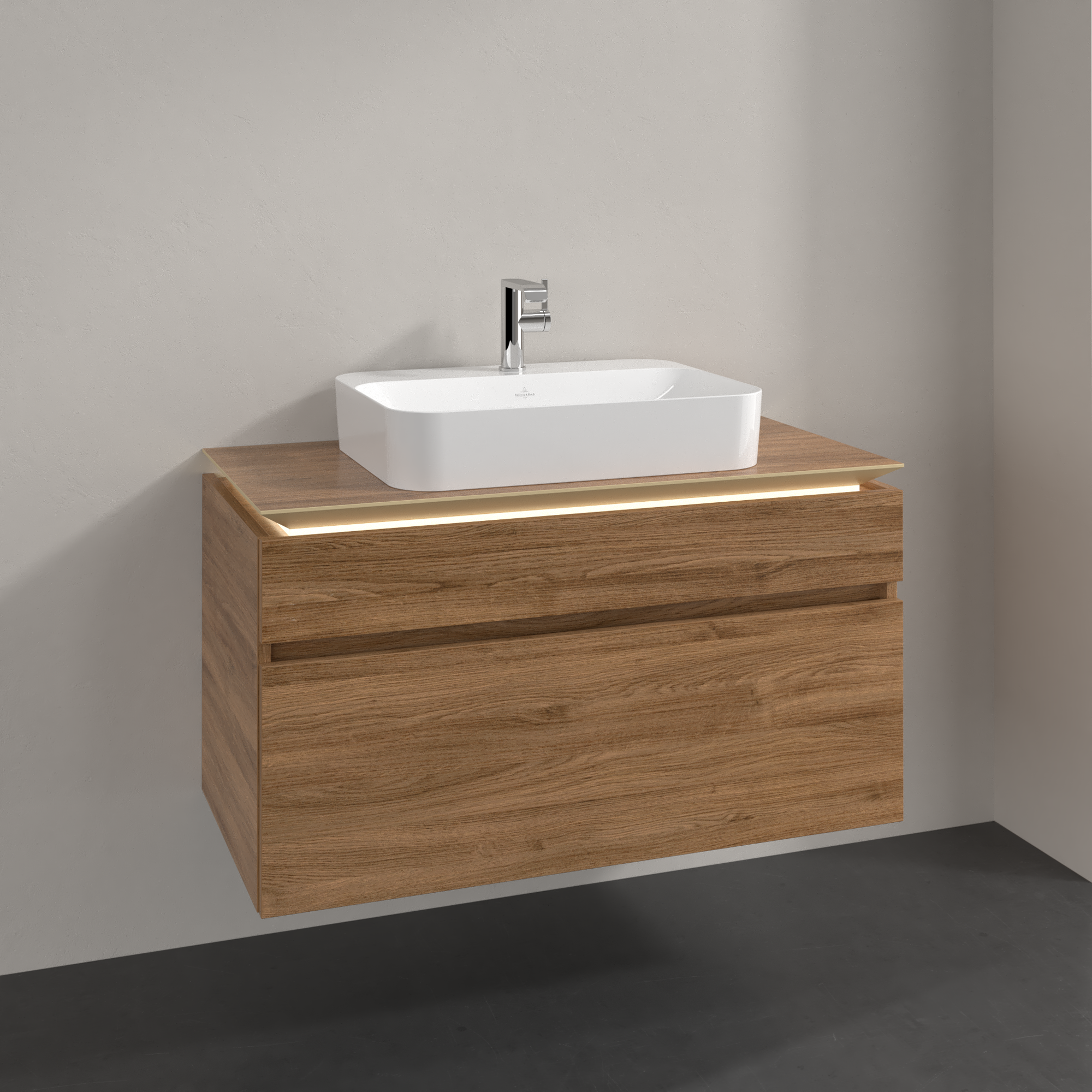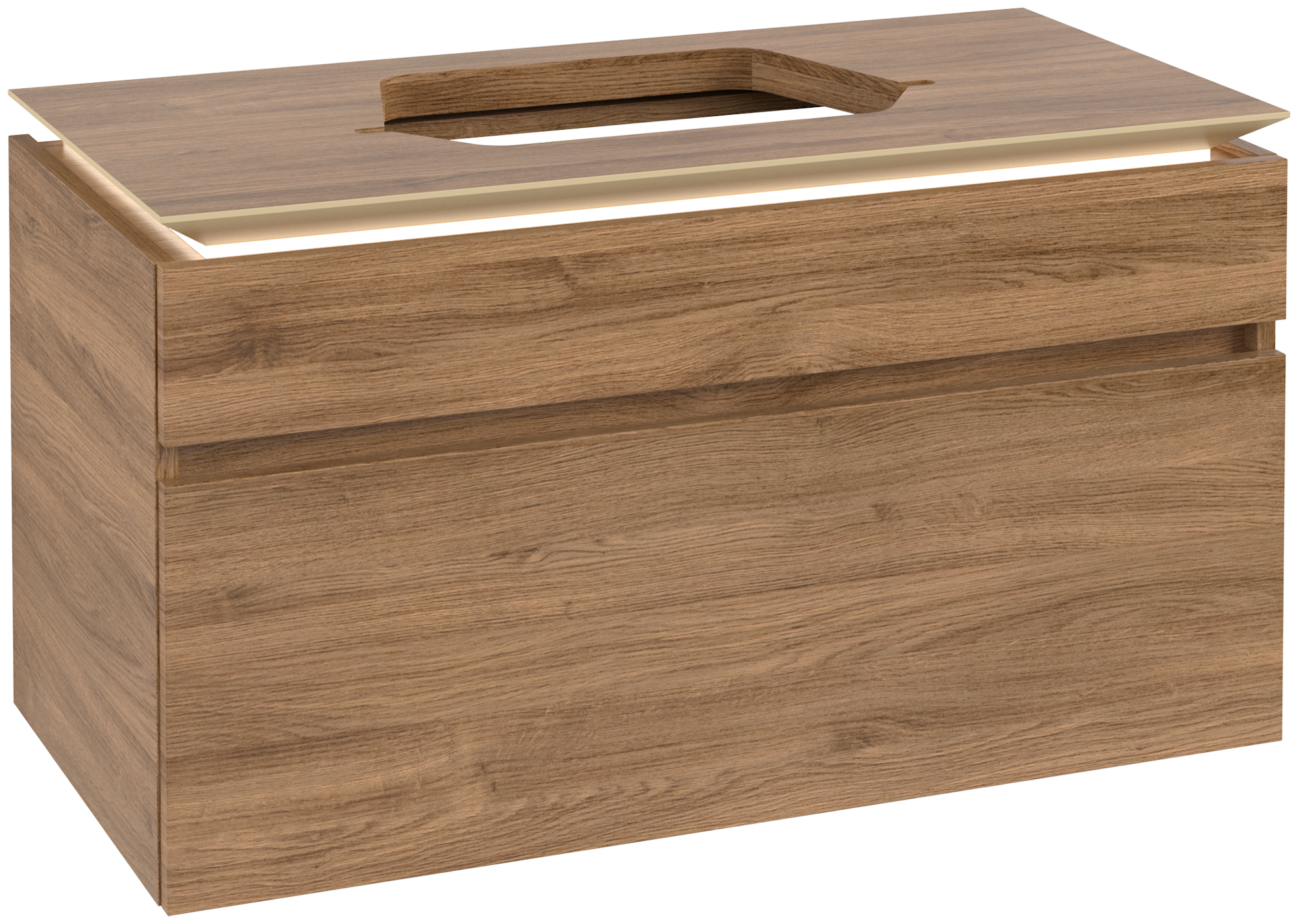 Legato Waschbeckenunterschrank, mit Beleuchtung, 2 Auszüge, 1000x550x500mm, Korpus: Kansas Oak, Front: Kansas Oak