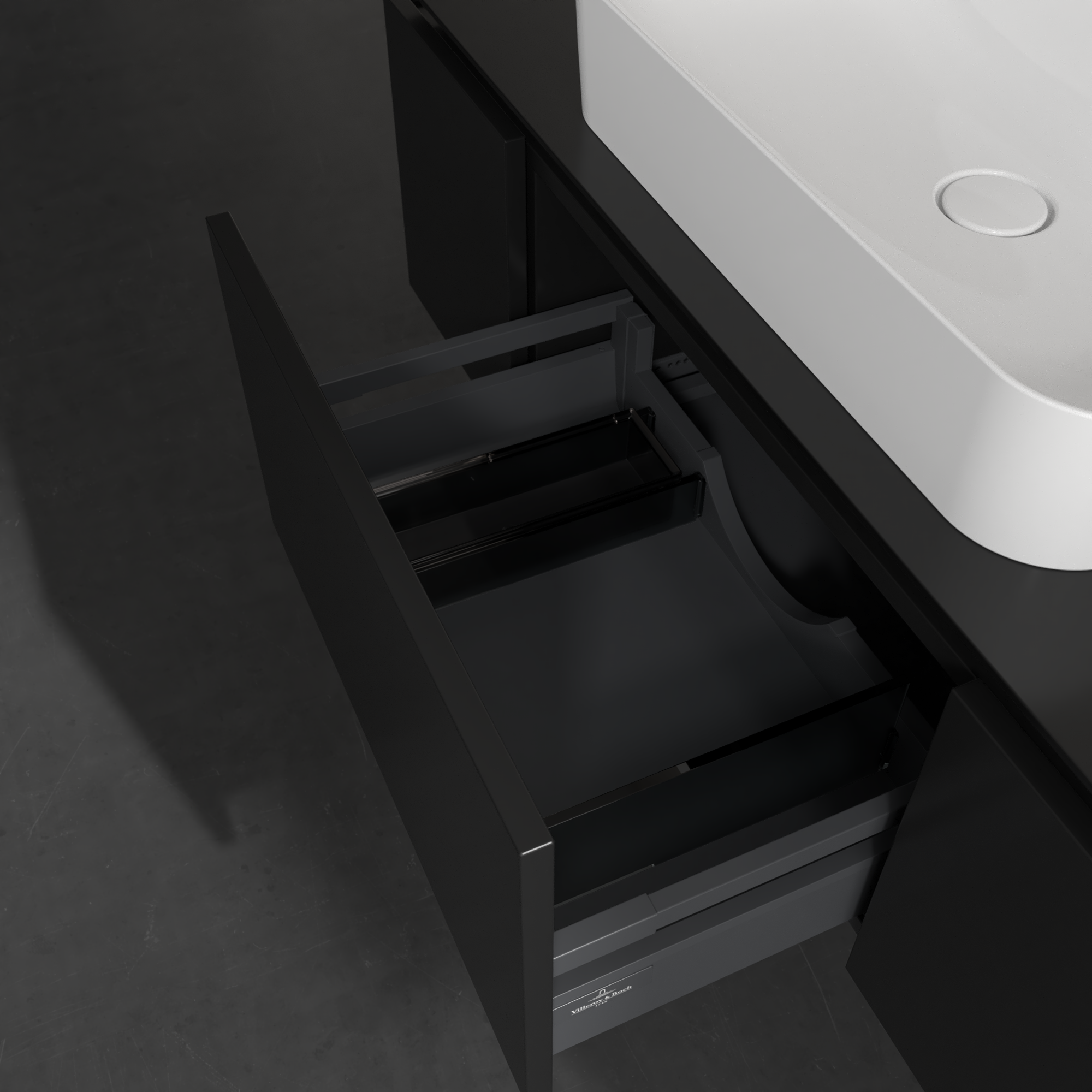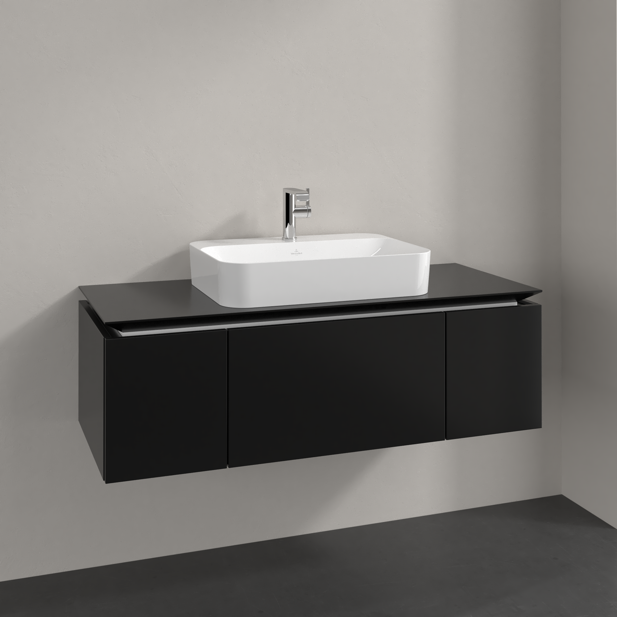 Legato Waschbeckenunterschrank, 3 Auszüge, 1200x380x500mm, Korpus: Black Matt Lacquer, Front: Black Matt Lacquer