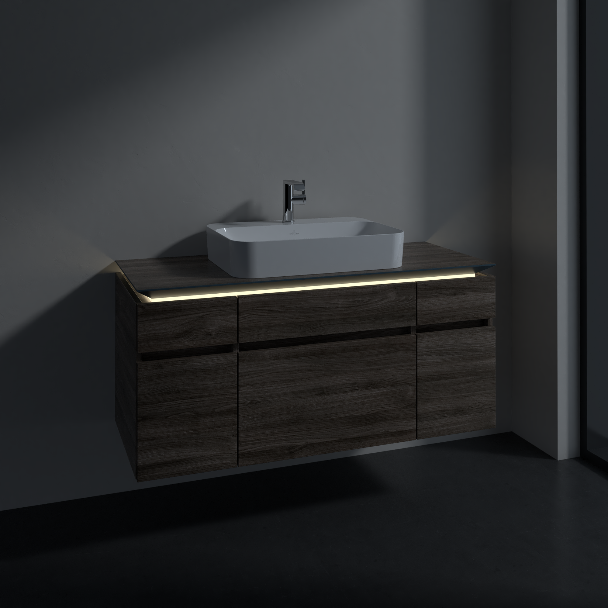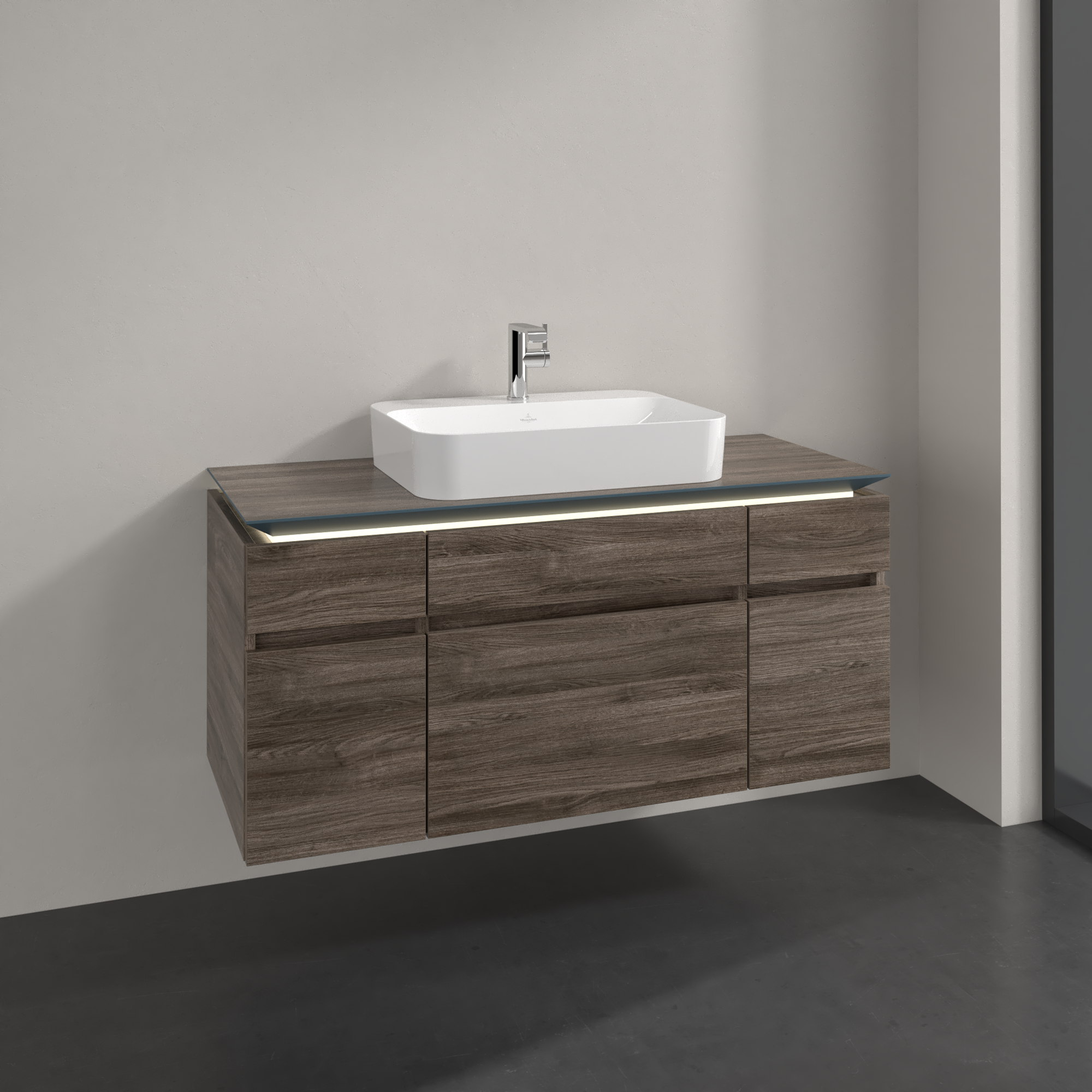 Legato Waschbeckenunterschrank, mit Beleuchtung, 5 Auszüge, 1200x550x500mm, Korpus: Stone Oak, Front: Stone Oak