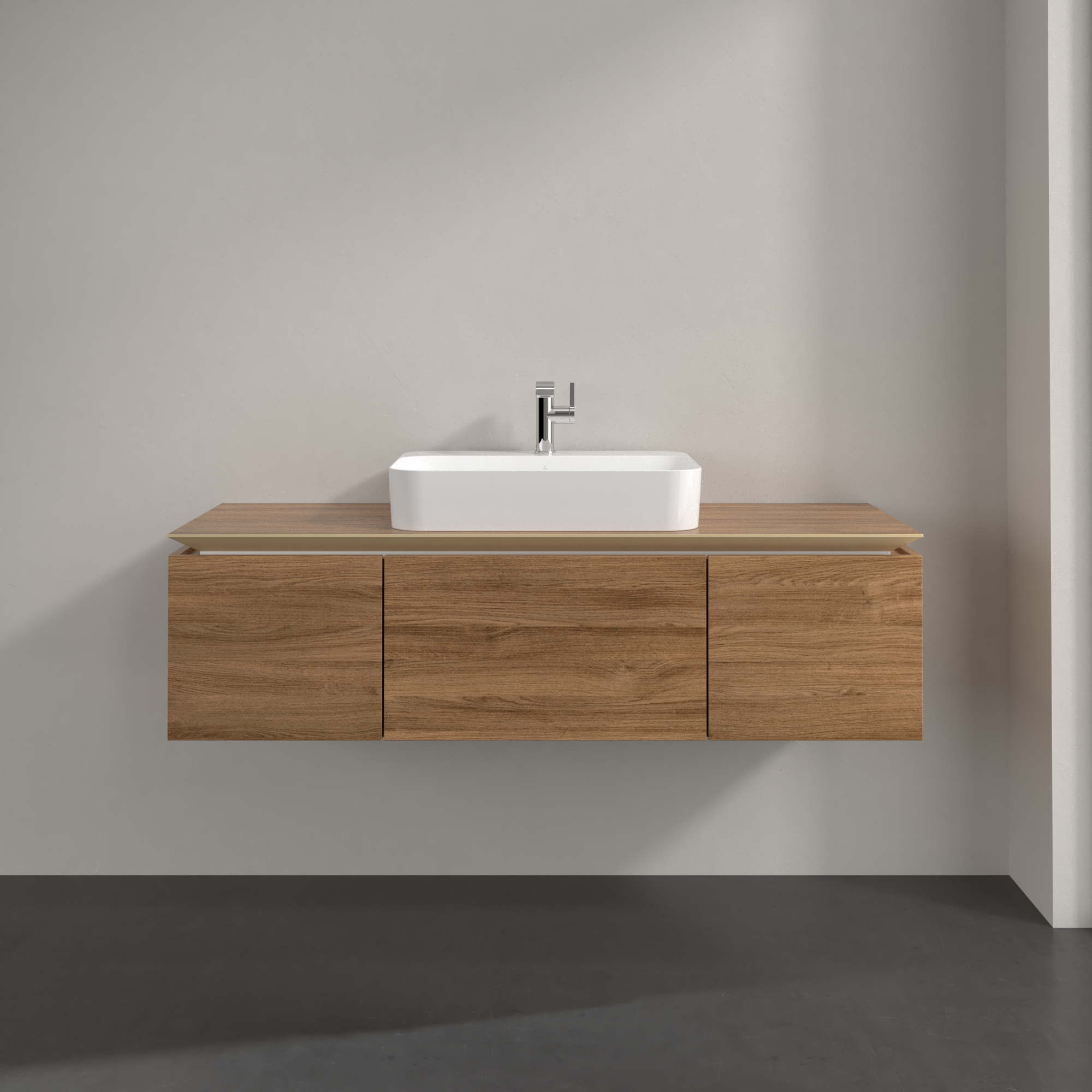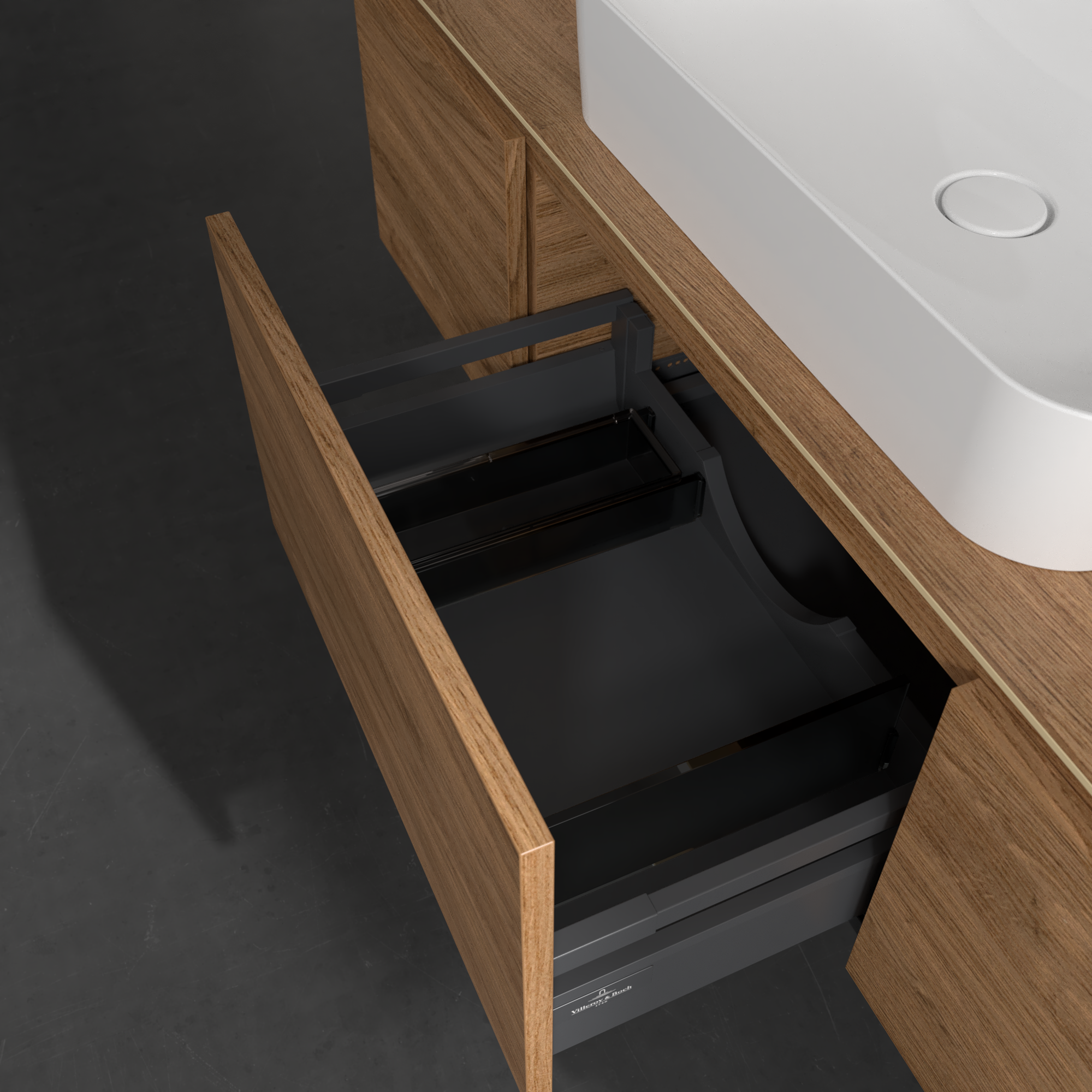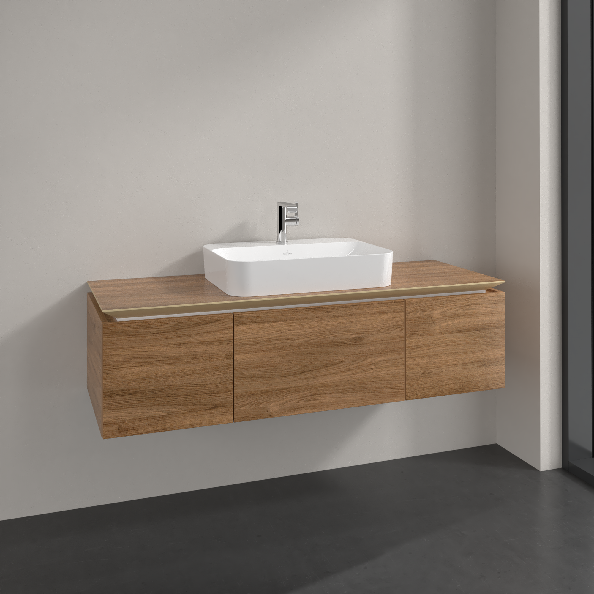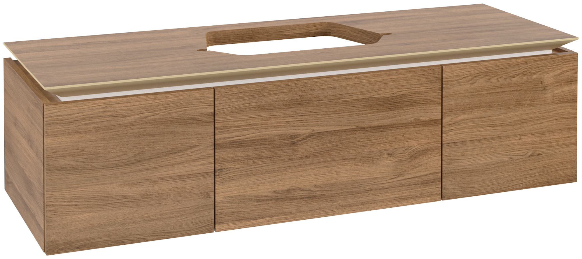 Legato Waschbeckenunterschrank, 3 Auszüge, 1400x380x500mm, Korpus: Kansas Oak, Front: Kansas Oak