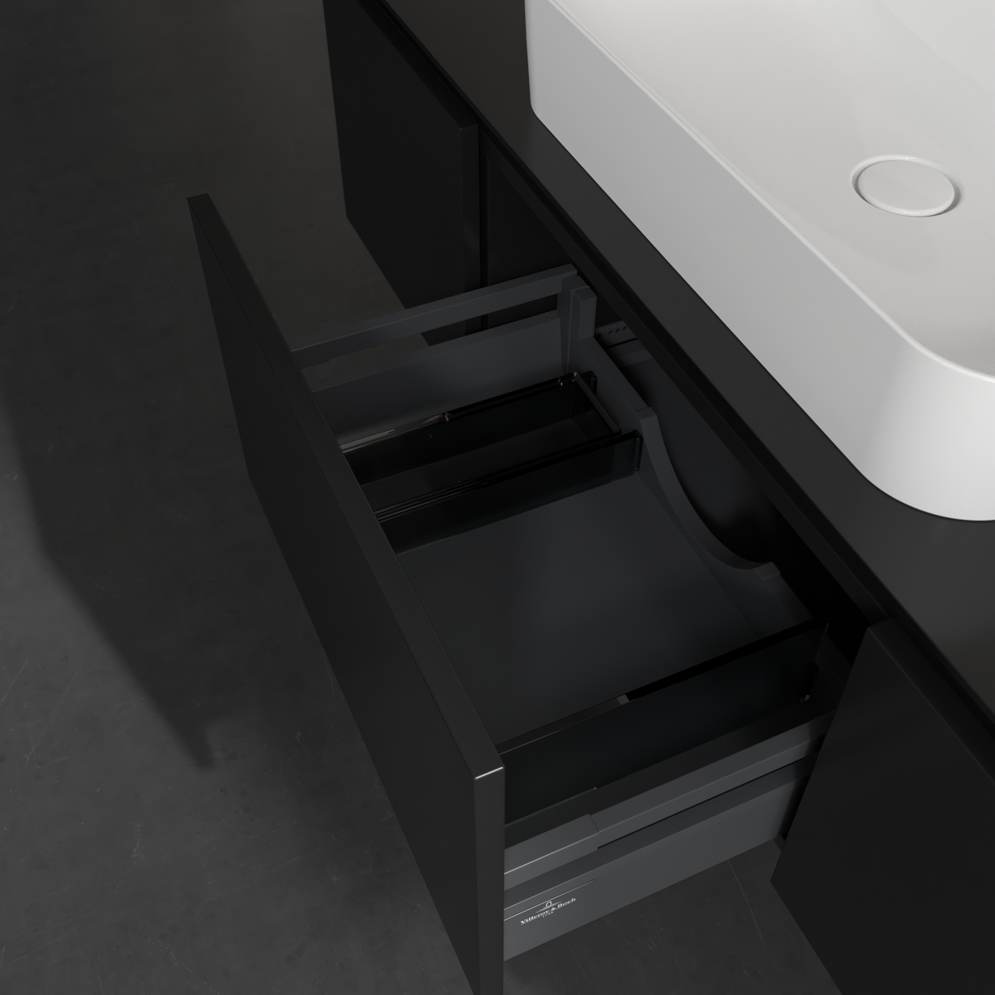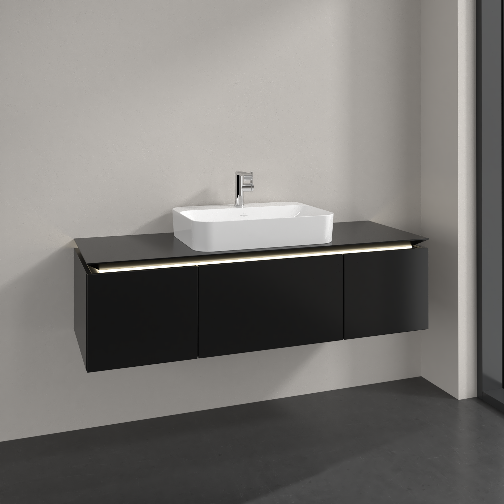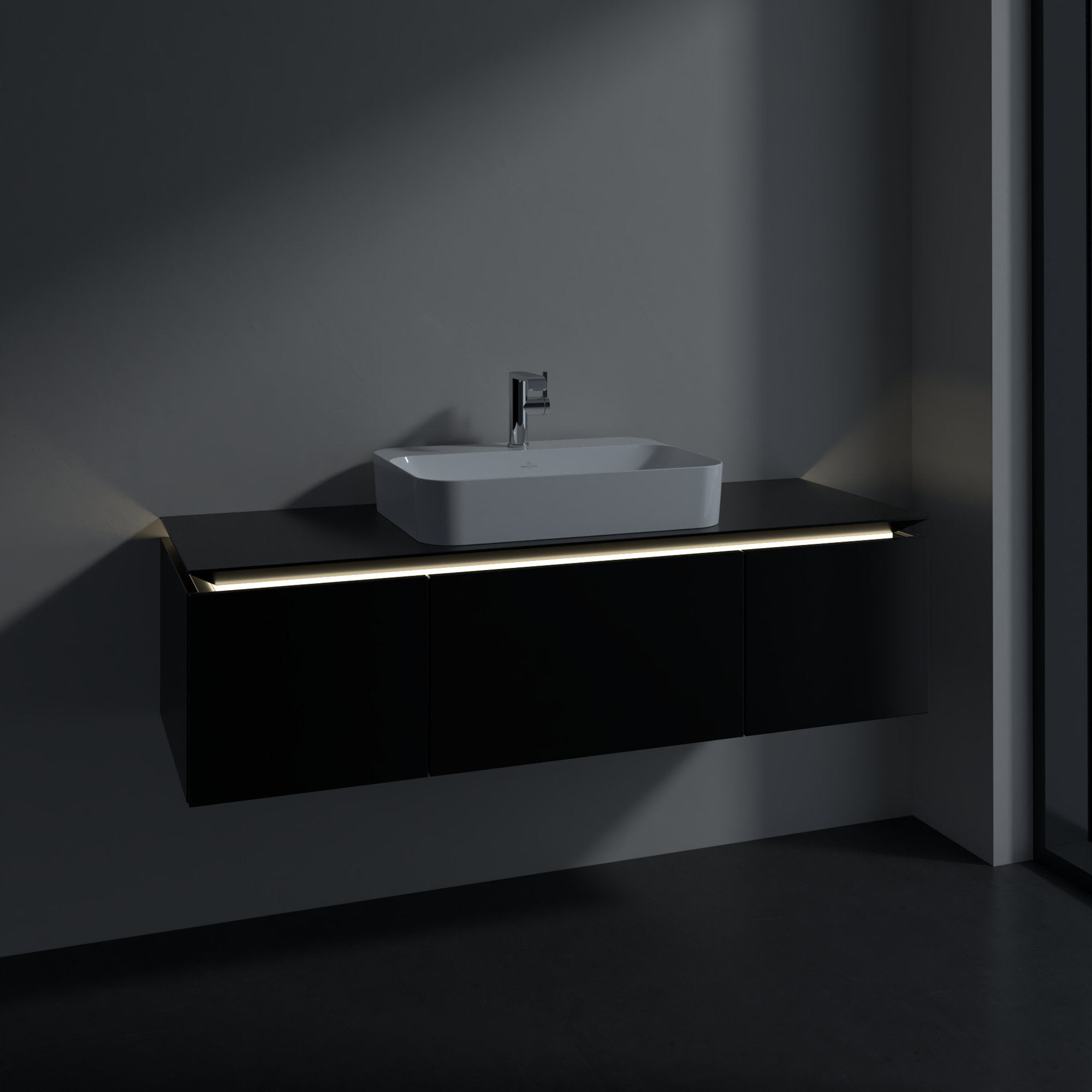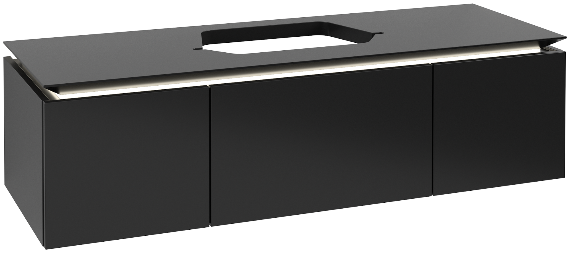 Legato Waschbeckenunterschrank, mit Beleuchtung, 3 Auszüge, 1400x380x500mm, Korpus: Black Matt Lacquer, Front: Black Matt Lacquer