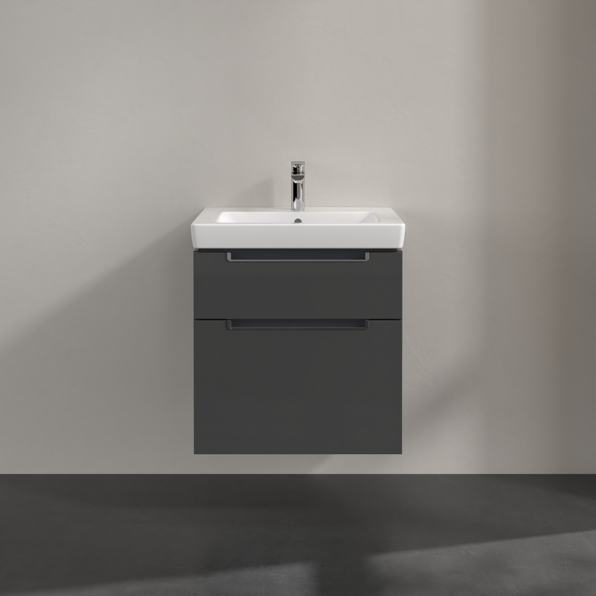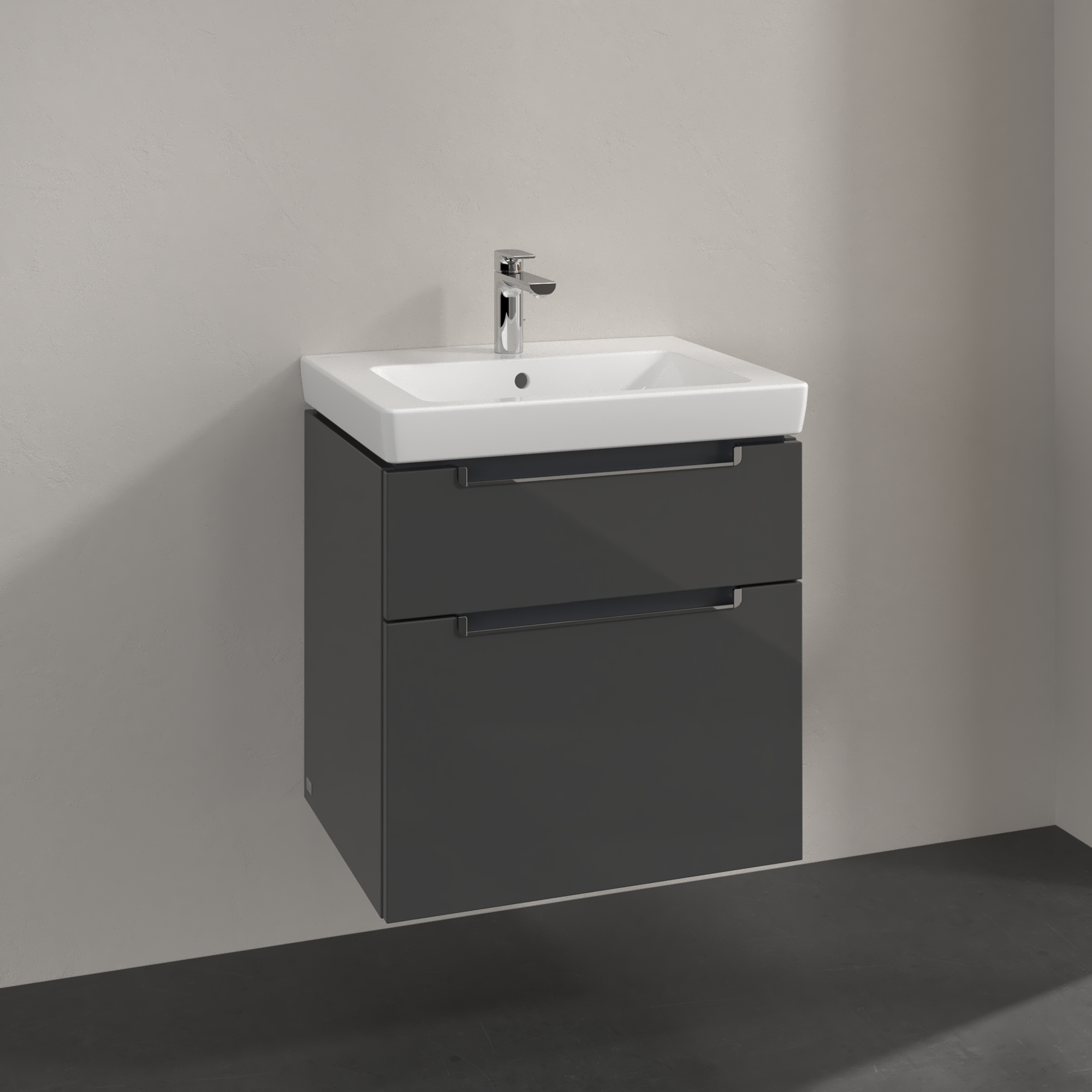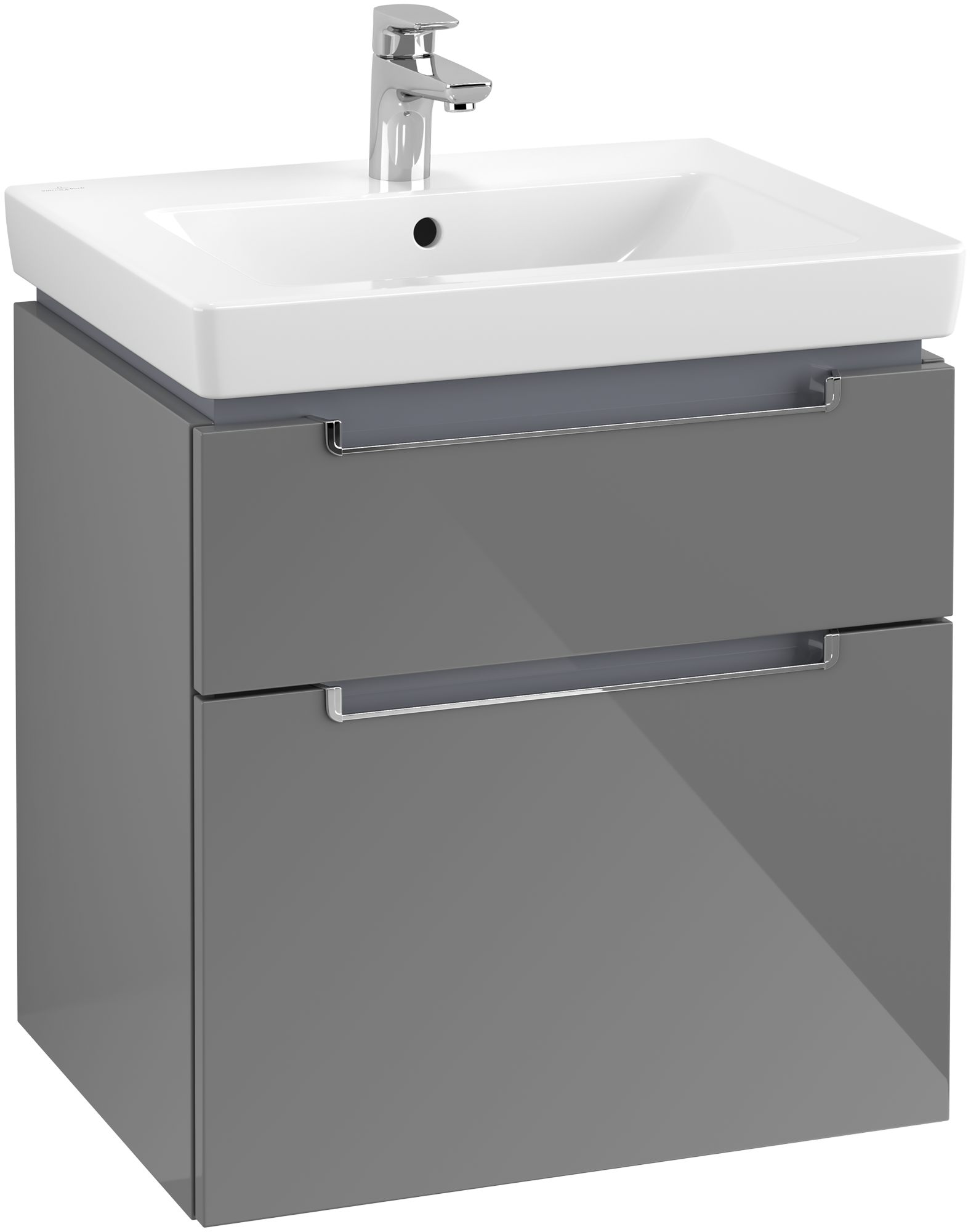 Subway 2.0 Waschbeckenunterschrank, 2 Auszüge, 587x590x454mm, Korpus: Glossy Grey, Front: Glossy Grey