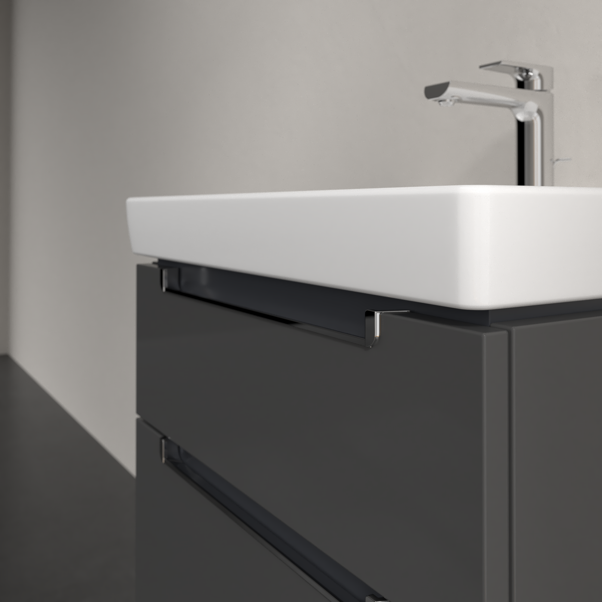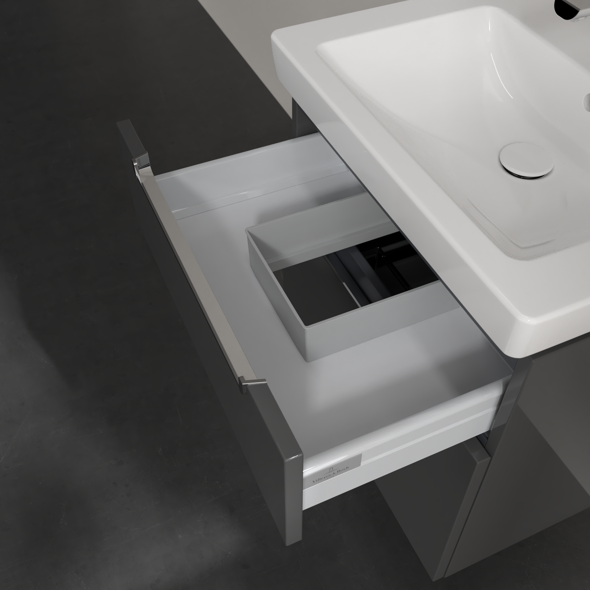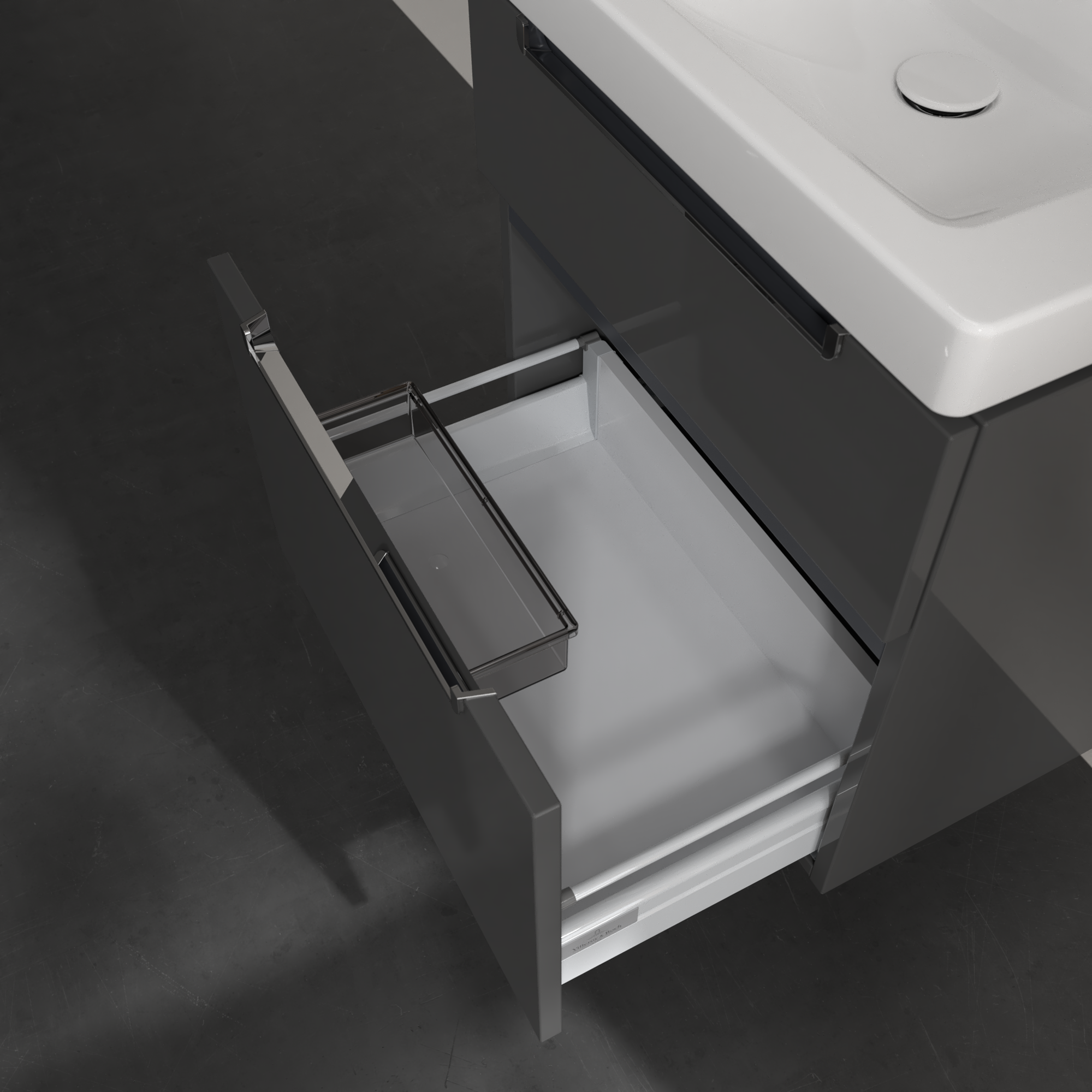 Subway 2.0 Waschbeckenunterschrank, 2 Auszüge, 587x590x454mm, Korpus: Glossy Grey, Front: Glossy Grey
