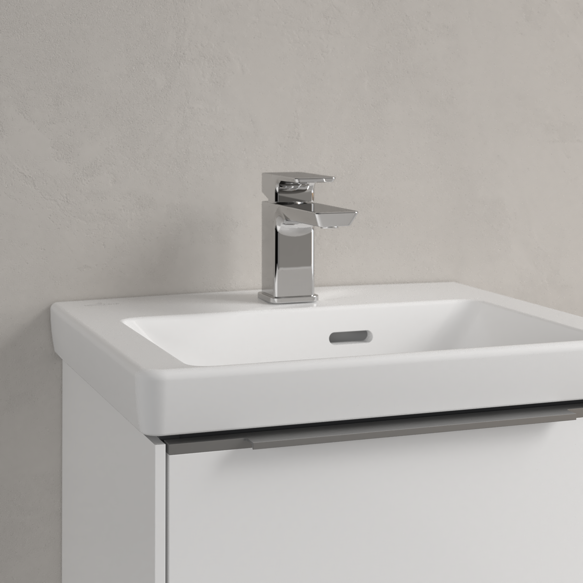 Subway 3.0 Handwaschbecken, 450x370x145mm, mit Überlauf, Stone White CeramicPlus