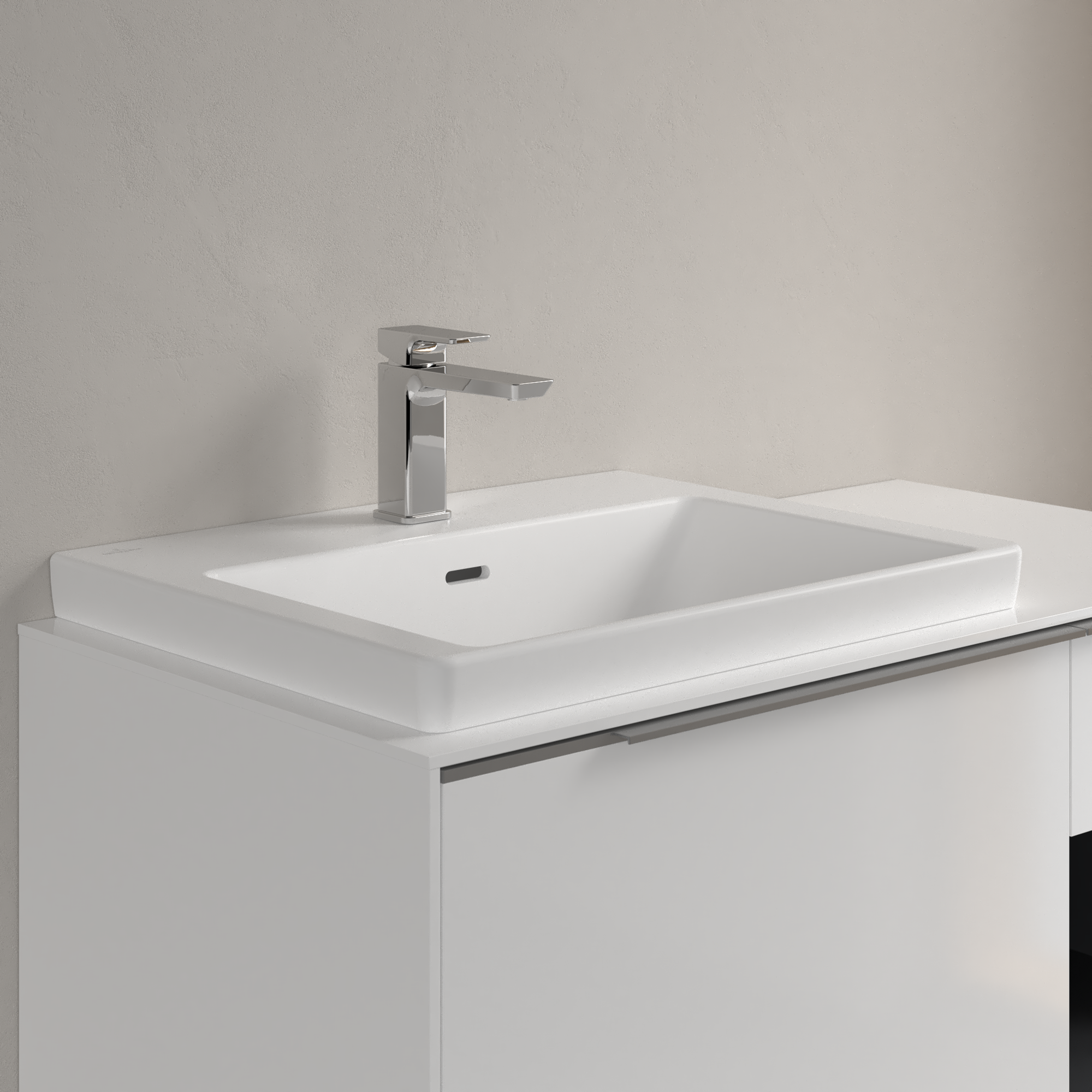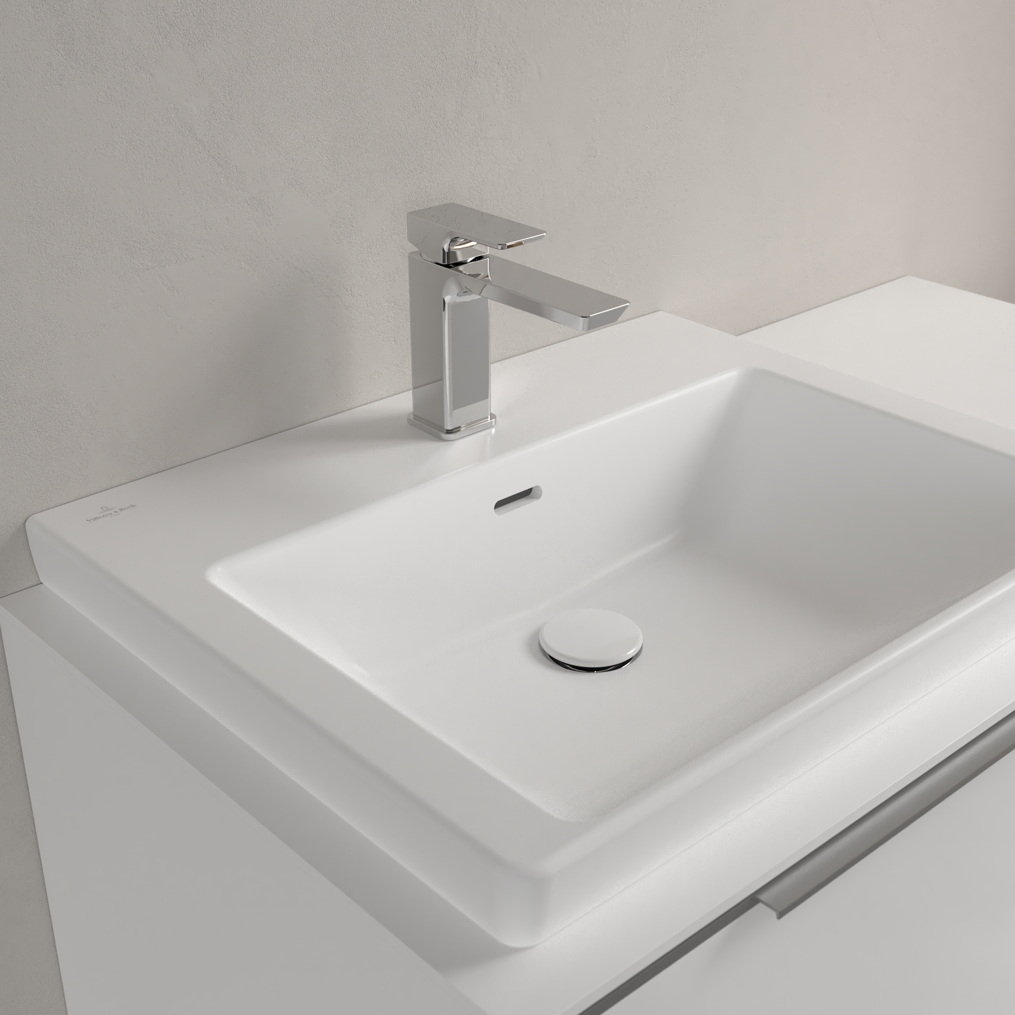 Subway 3.0 Waschbecken, 600x470x165mm, mit Überlauf, Stone White CeramicPlus