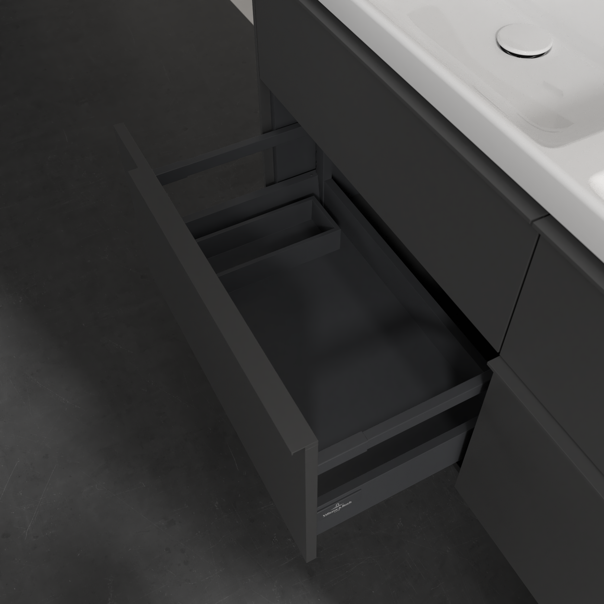Subway 3.0 Waschbeckenunterschrank, 4 Auszüge, 1272x576x462mm, Korpus: Graphite, Front: Graphite